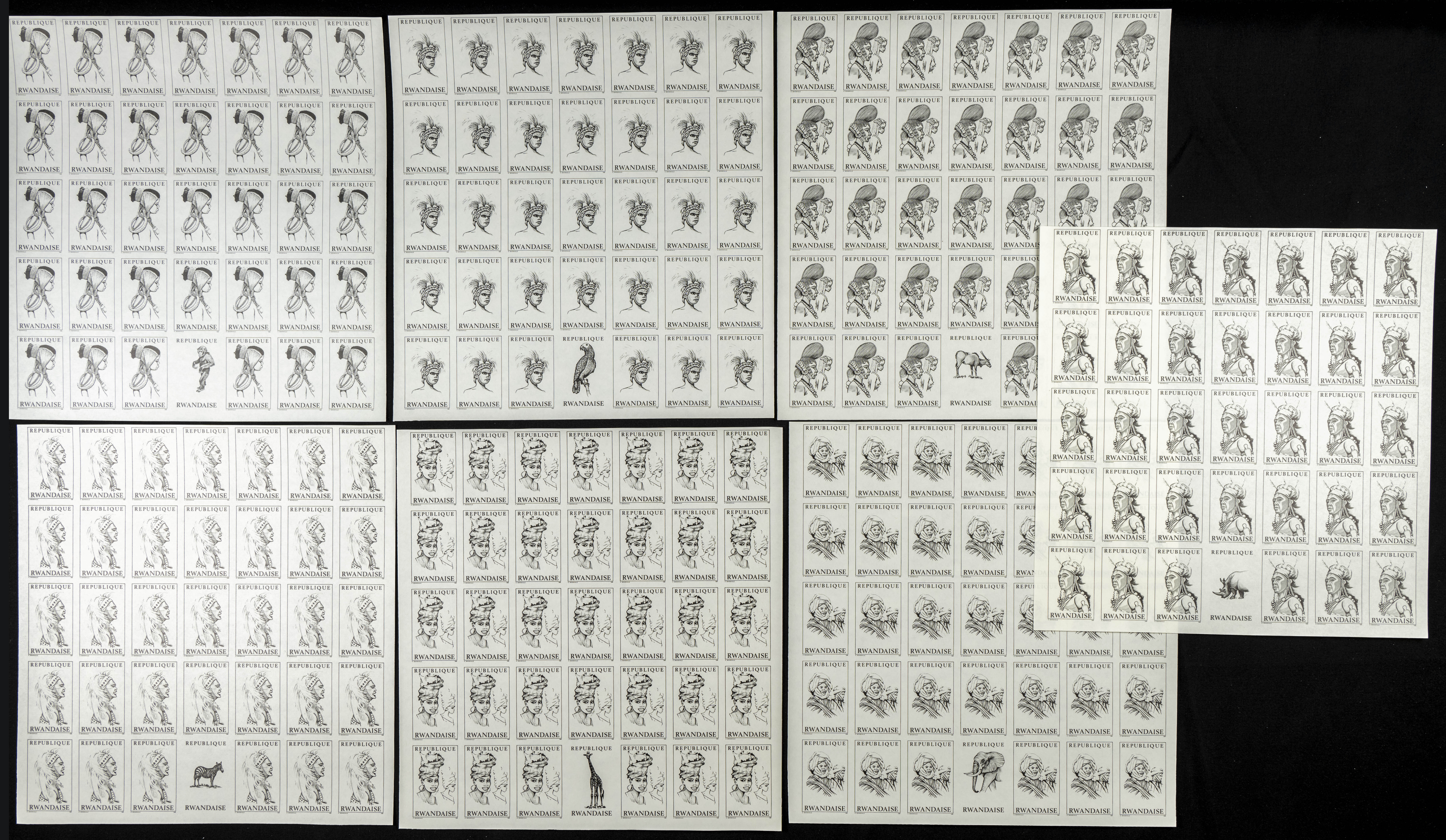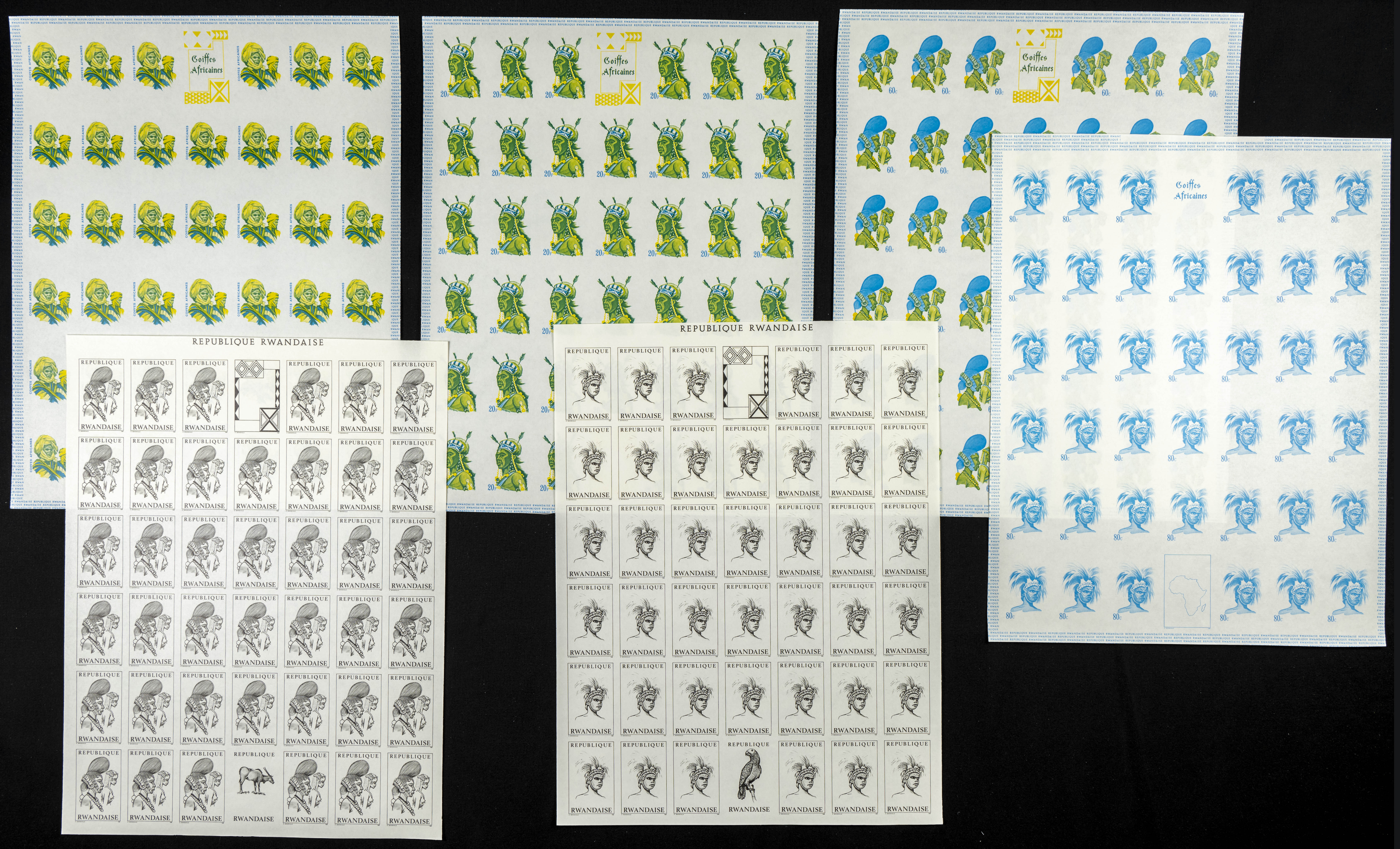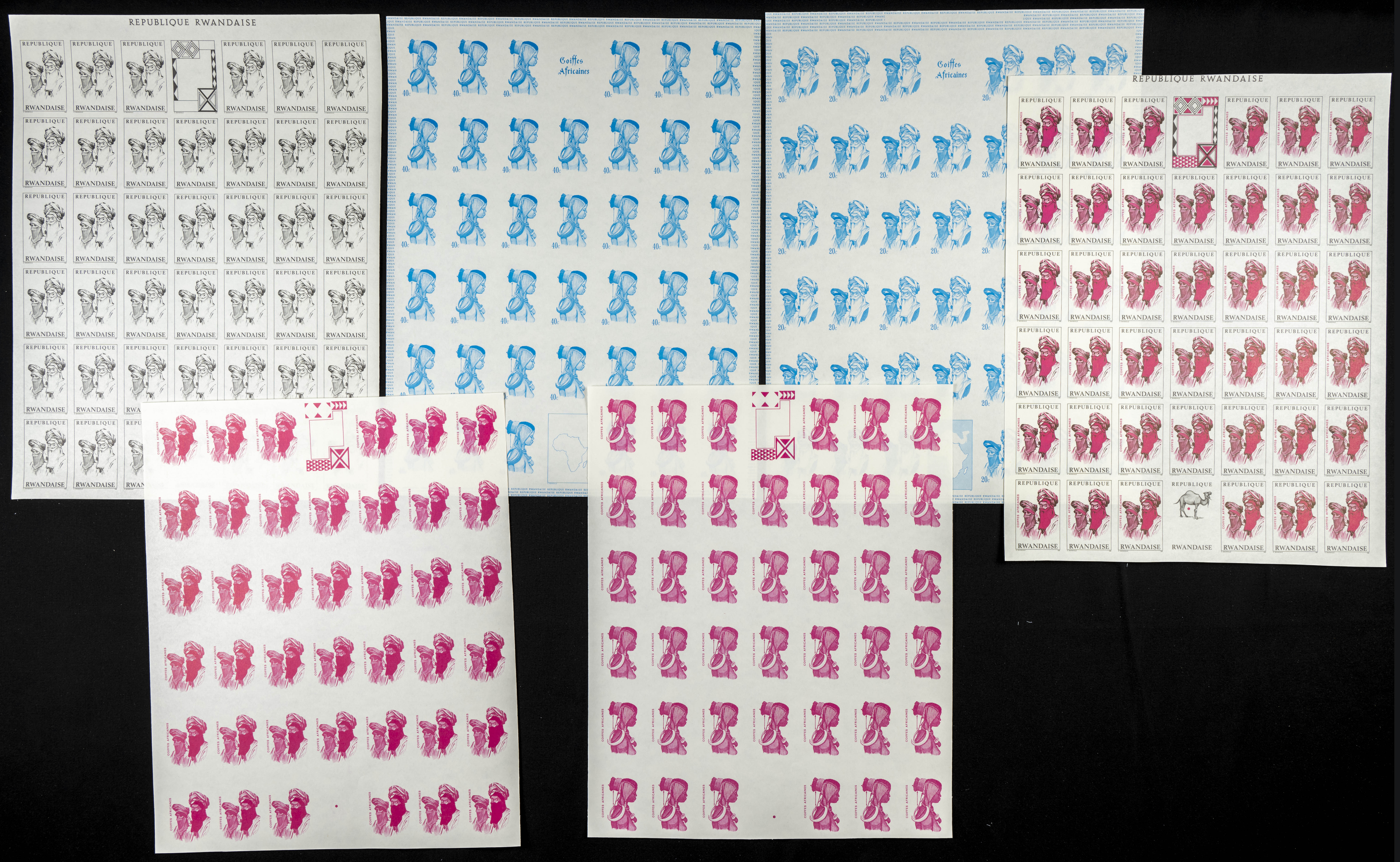 ★★Yvert 301/08. 1969. Hair dressings. Group of progressive plate proofs of the set. TO EXAM.