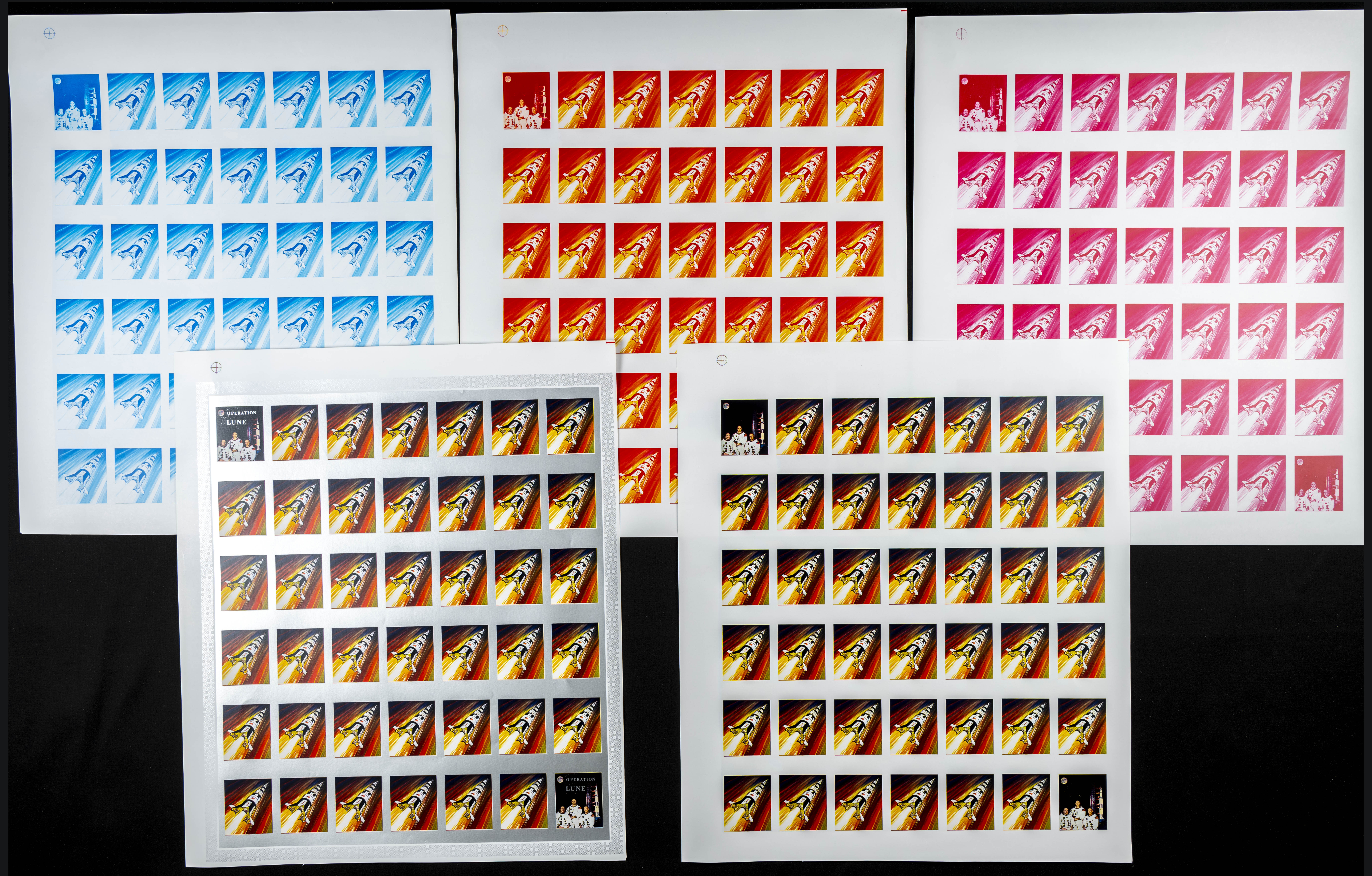 ★★Yvert 384/91. 1970. Apollo 13. Group of progressive plate proofs of the set. TO EXAM.