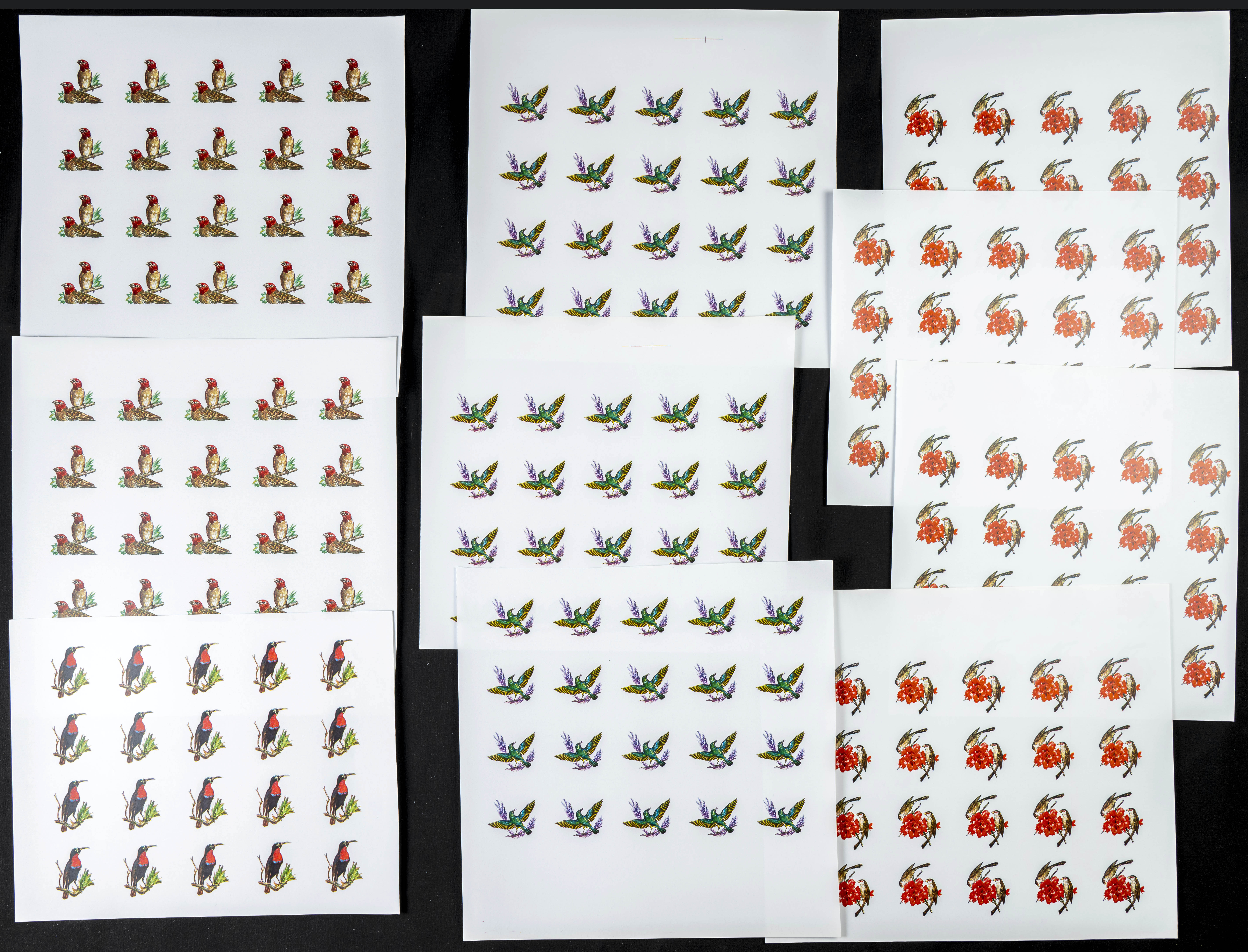 ★★Yvert 464/73. 1972. Birds. Group of progressive plate proofs of the set. TO EXAM.