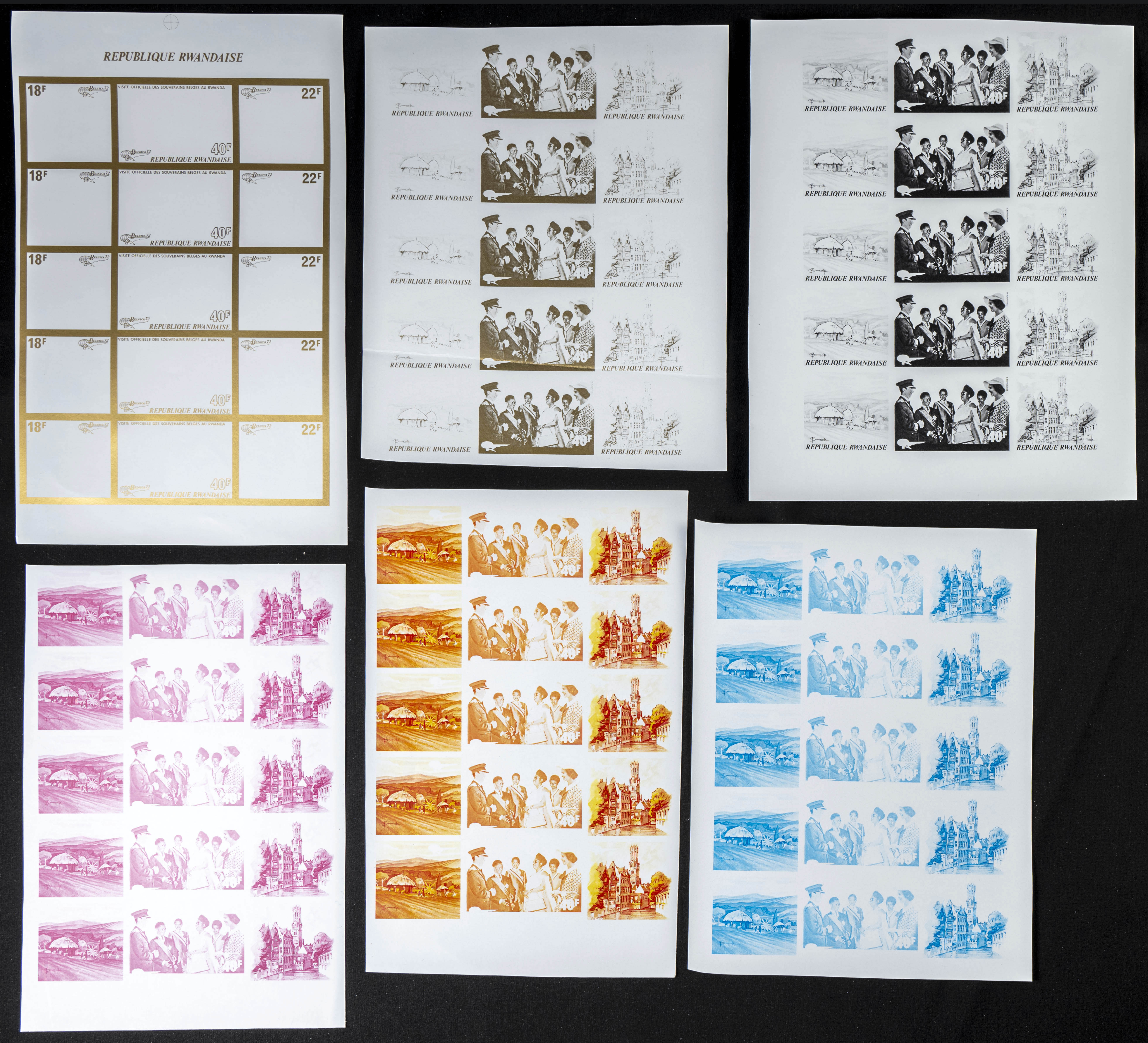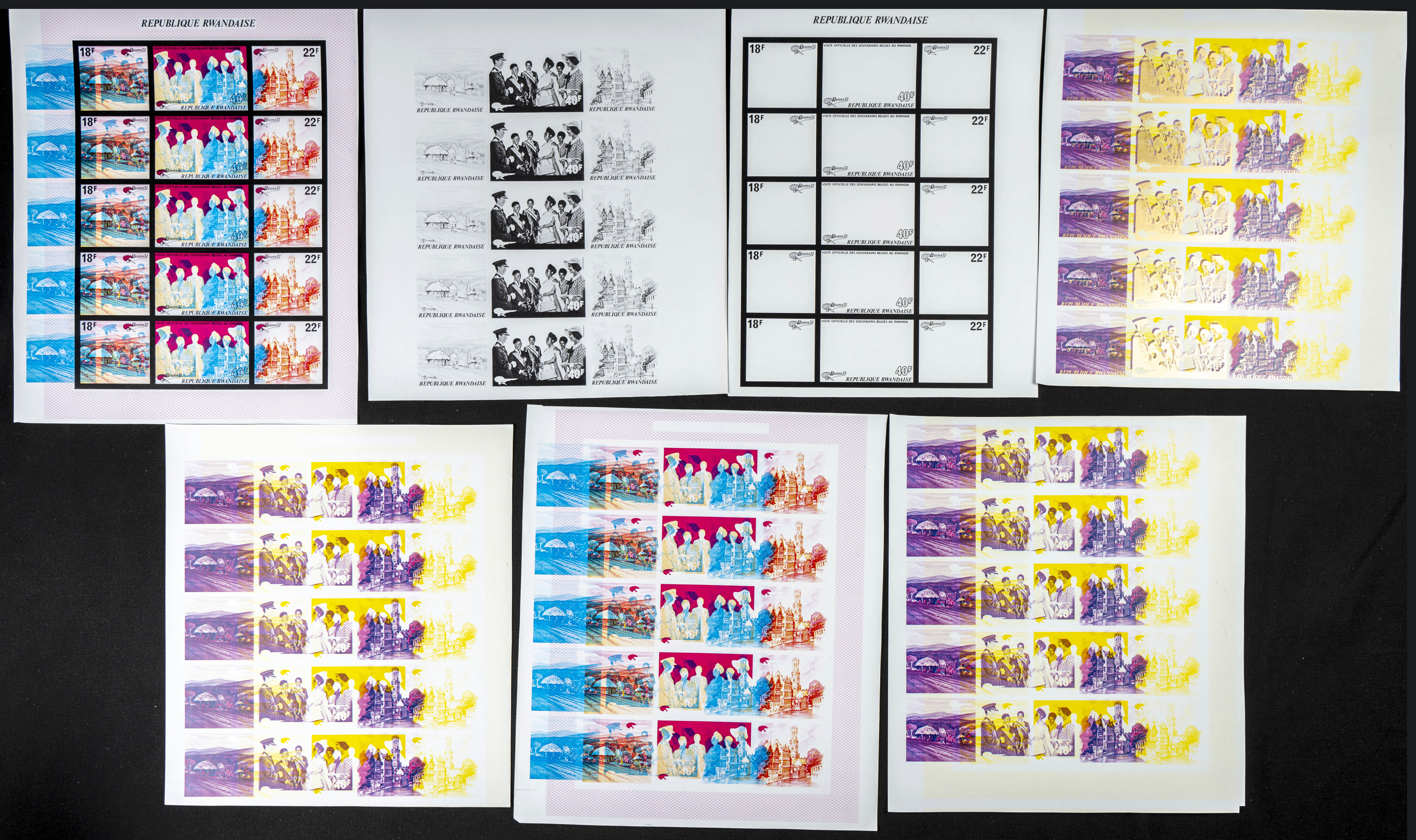 ★★Yvert 474/76. 1972. Belgica exposition. Group of progressive plate proofs of the set. TO EXAM.