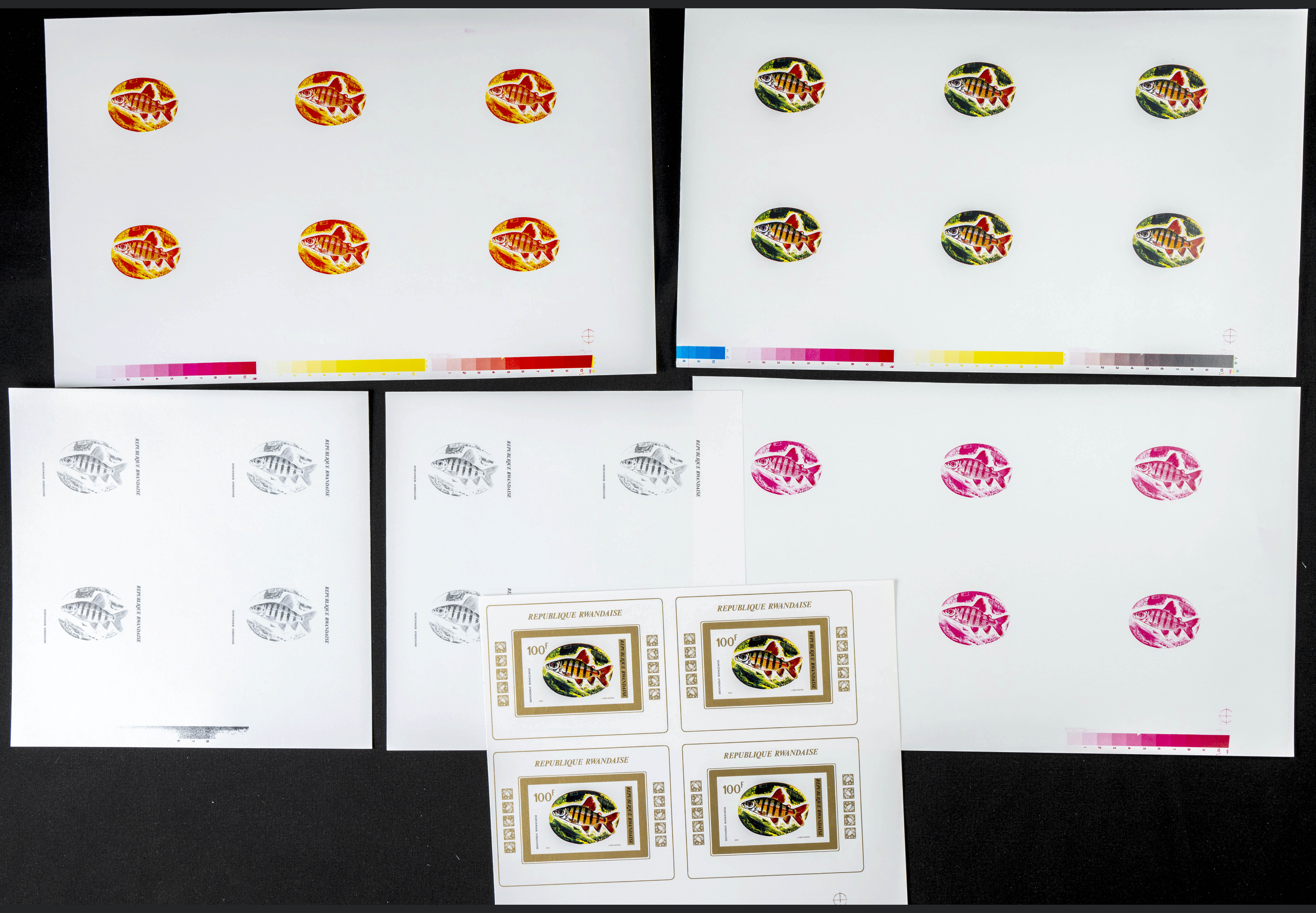 ★★Yvert B30. 1973. Fish. Group of progressive plate proofs of the set. TO EXAM.