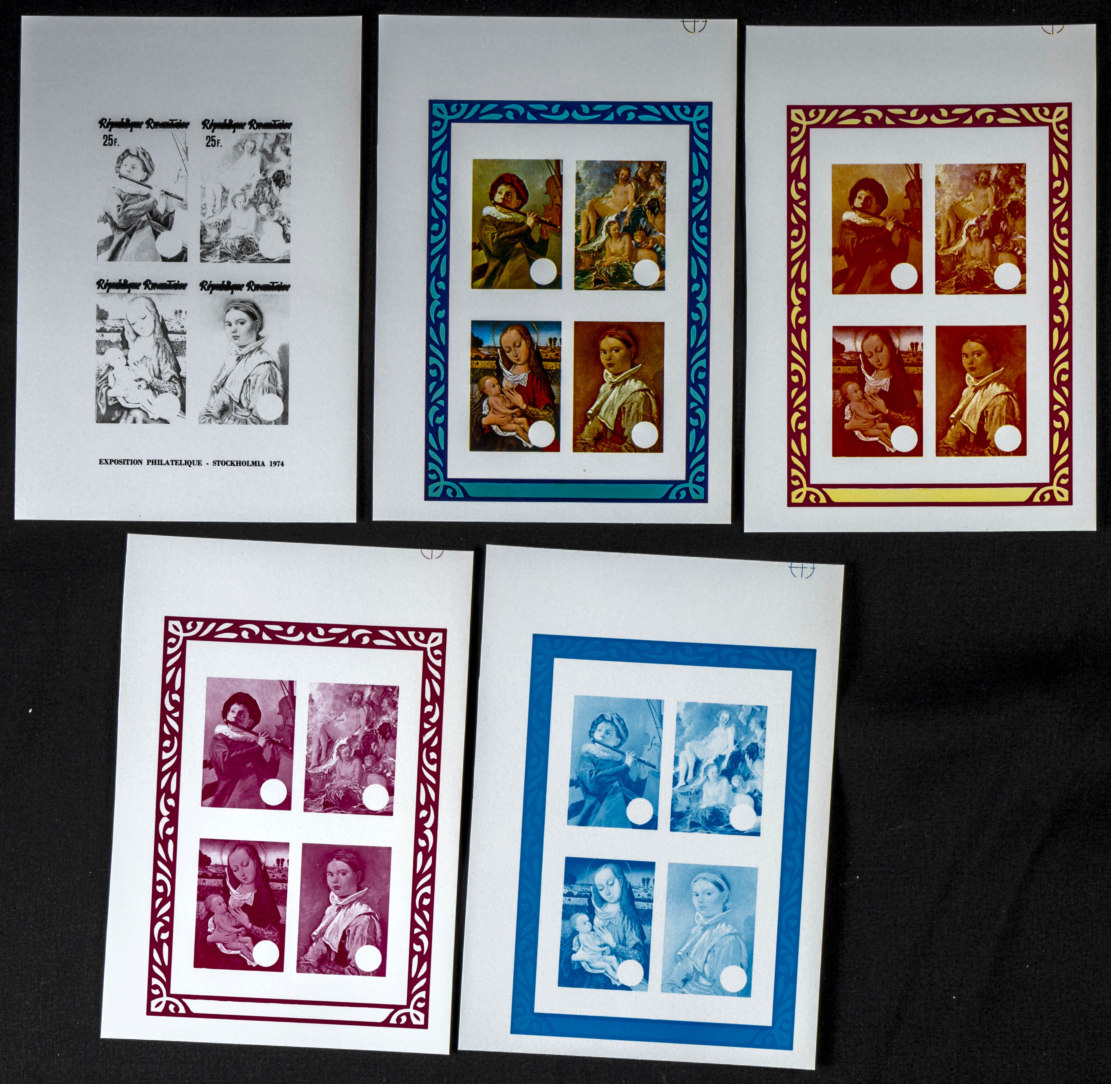 ★★Yvert B43. 1974. Philatelic expositions. Group of progressive plate proofs of the set. TO EXAM.