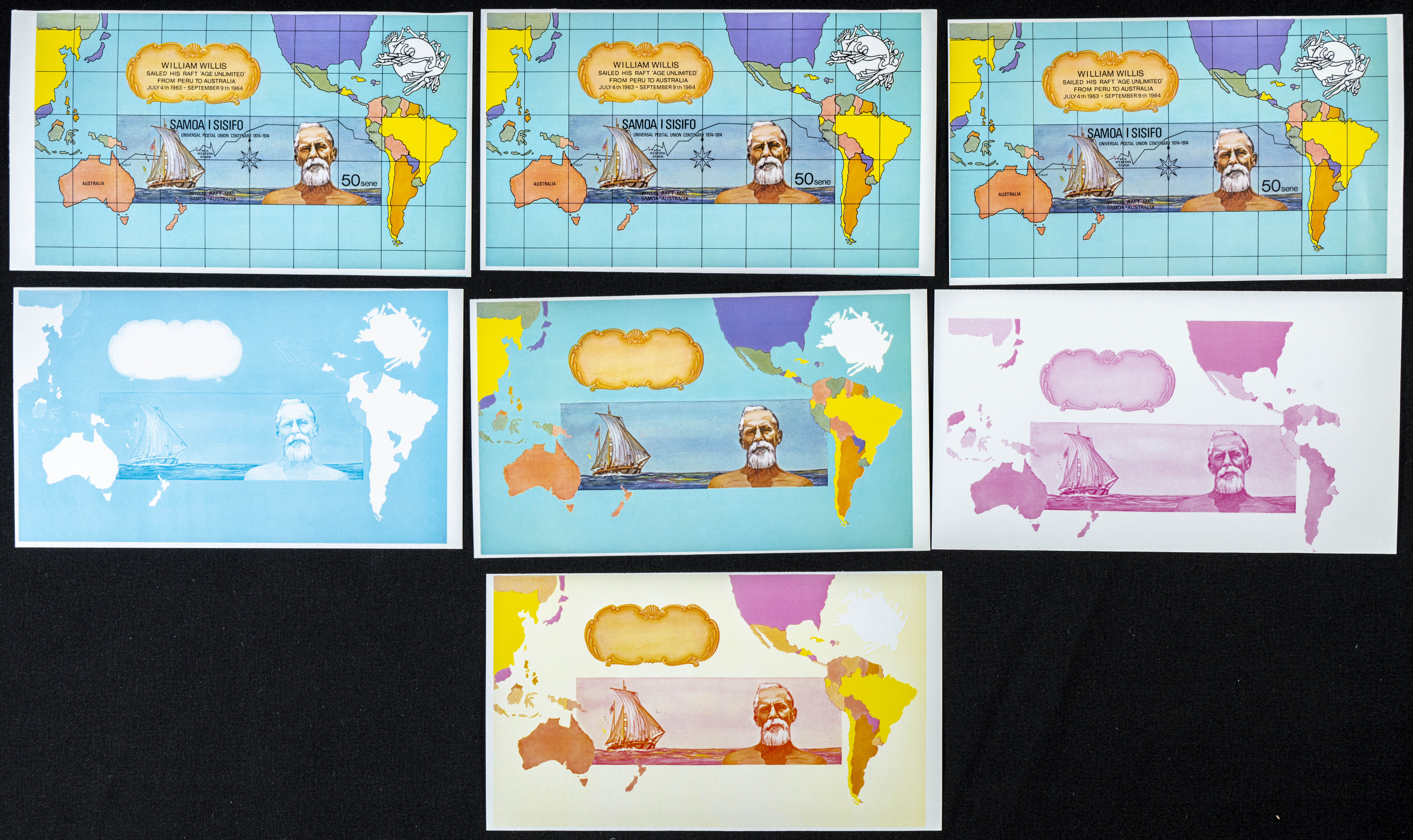 ★★Yvert B6. 1974. UPU Centenary. Group of progressive plate proofs of the set. TO EXAM.