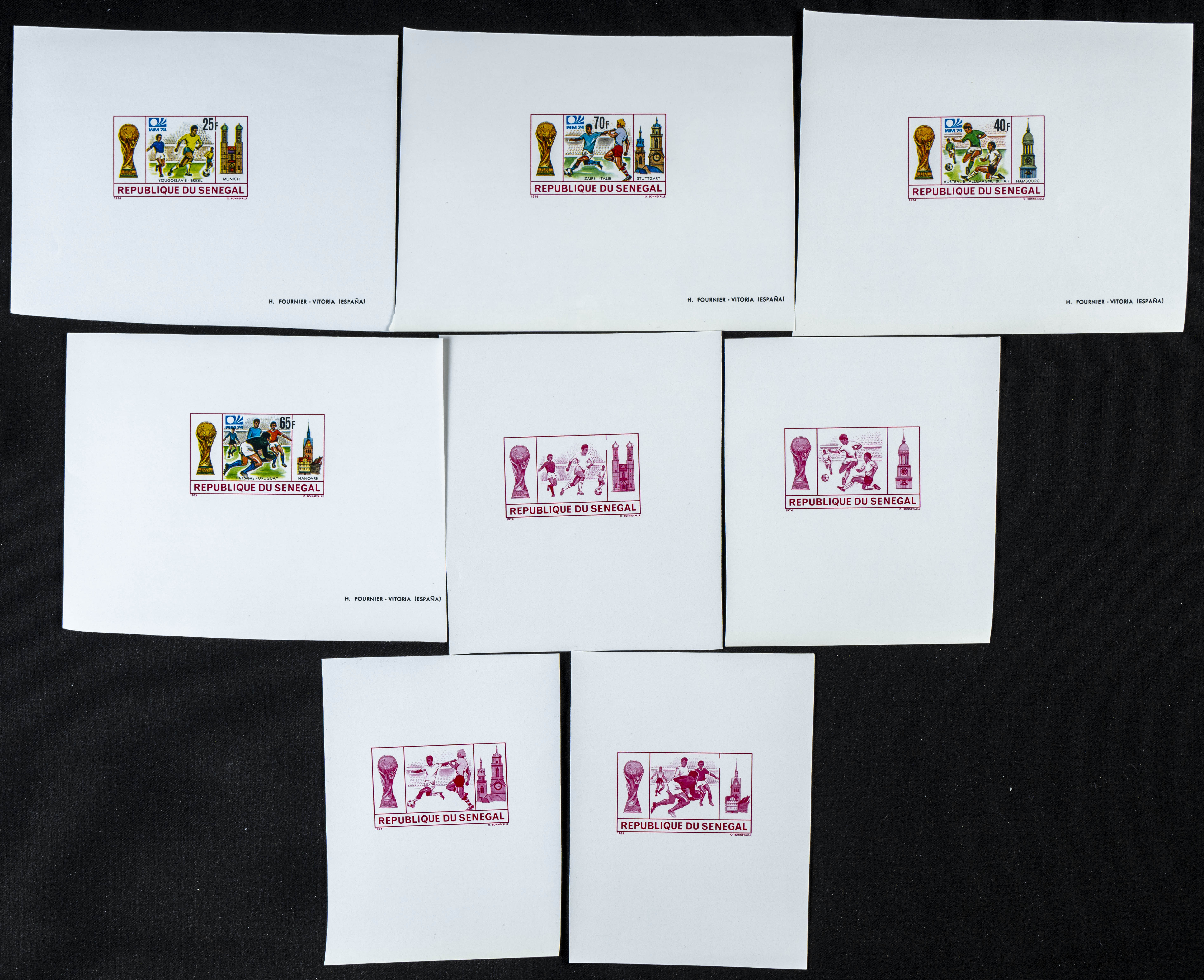 ★★Yvert 401/04. 1974. Football games Germany. Group of progressive plate proofs of the set, of mini sheets. TO EXAM.