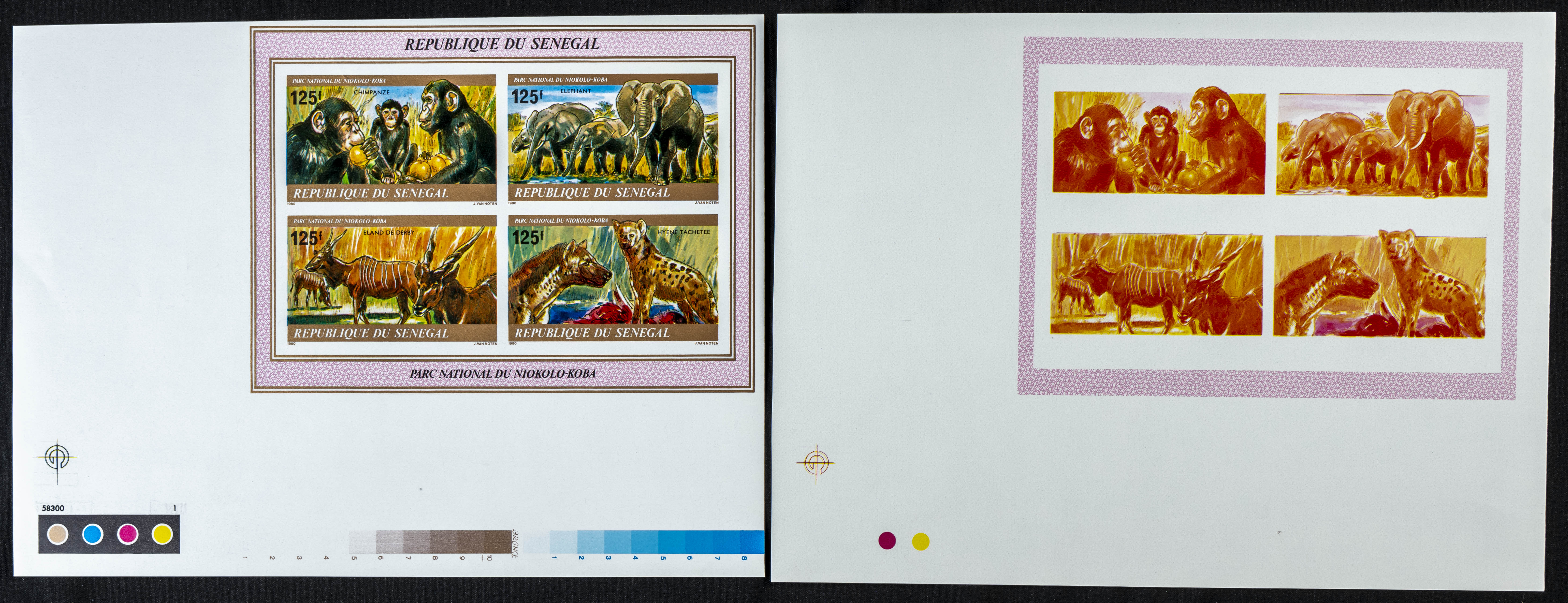 ★★Yvert B21. 1980. Niokolo-Koba park. Group of progressive plate proofs of the set. TO EXAM.
