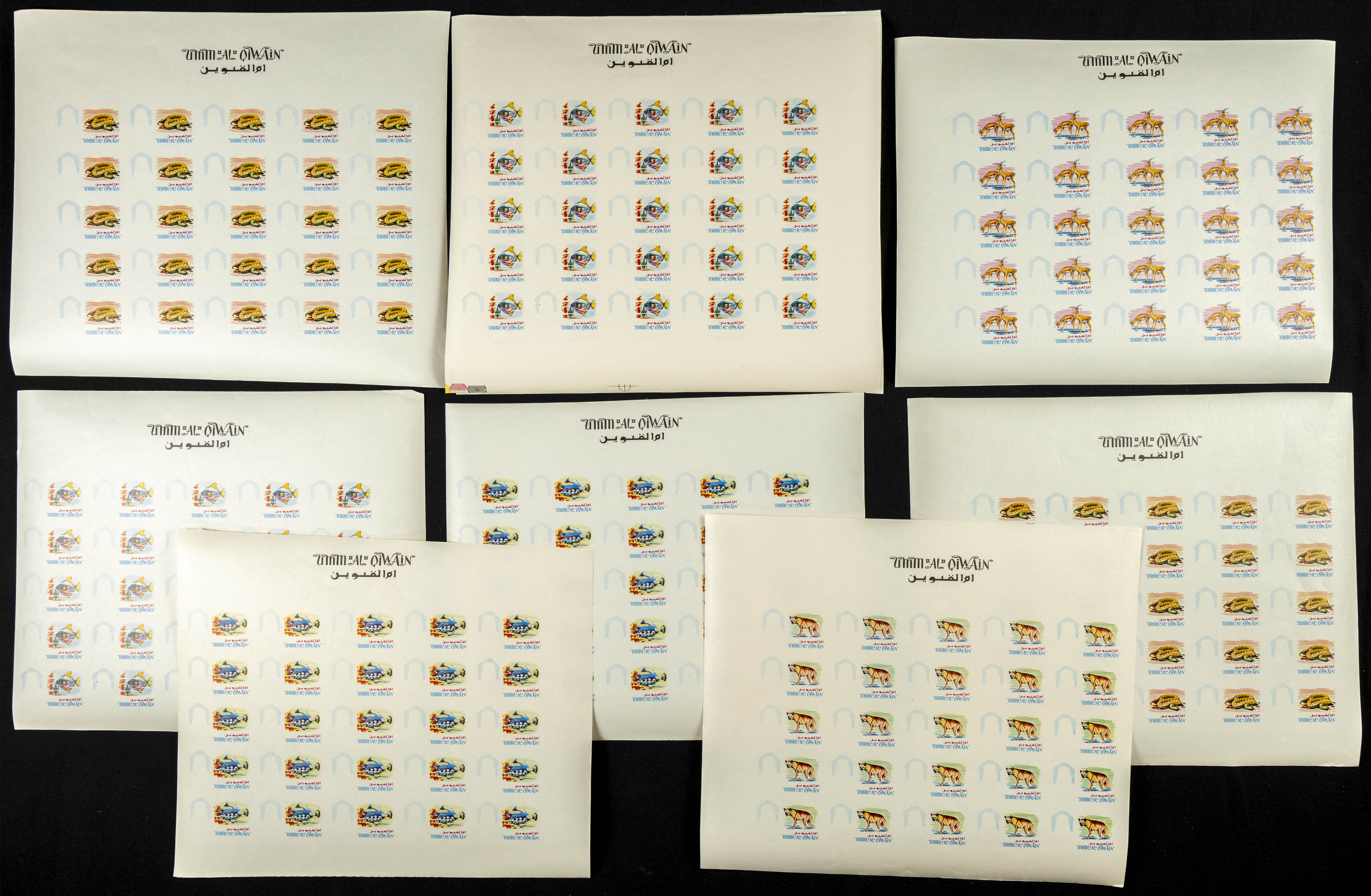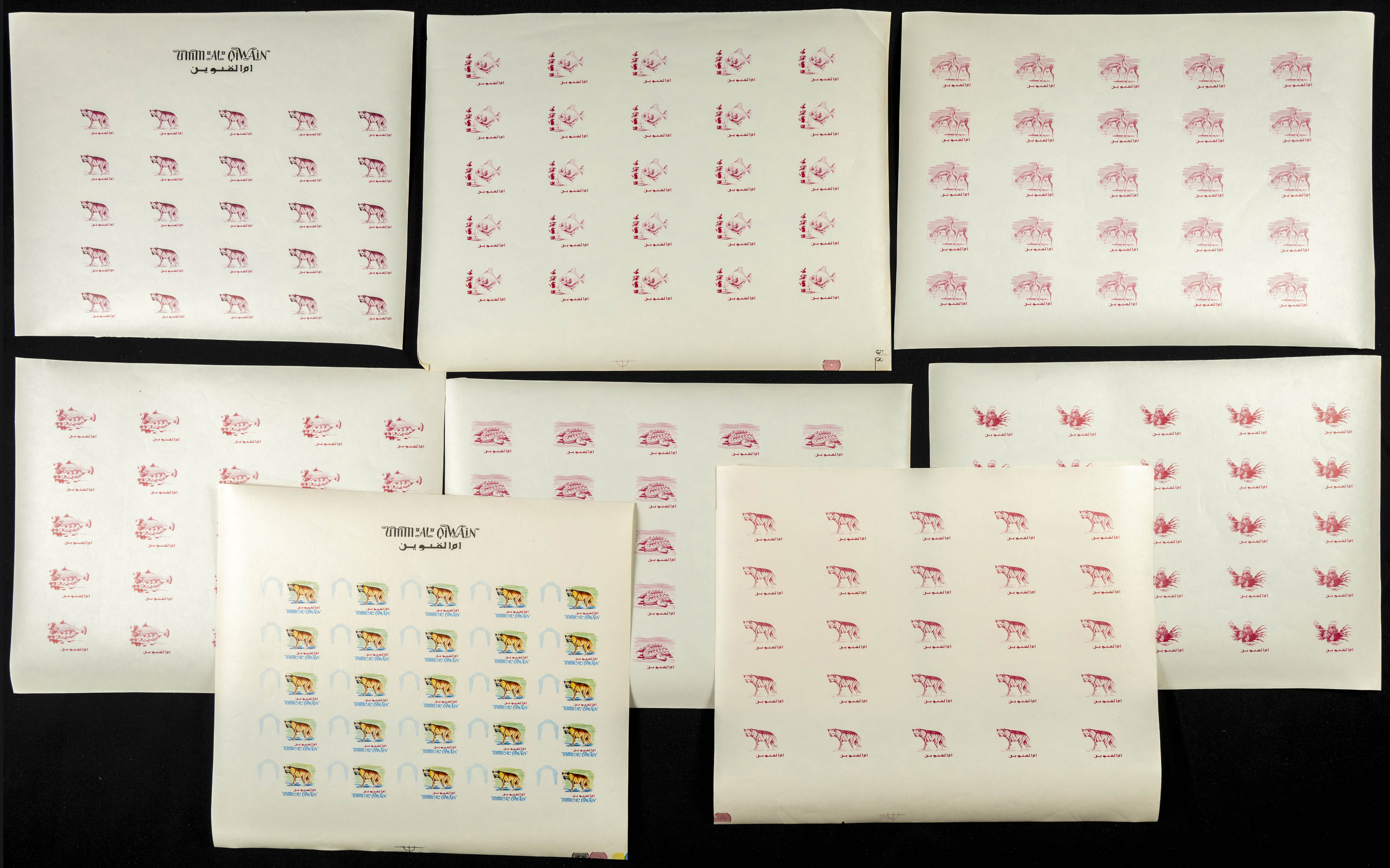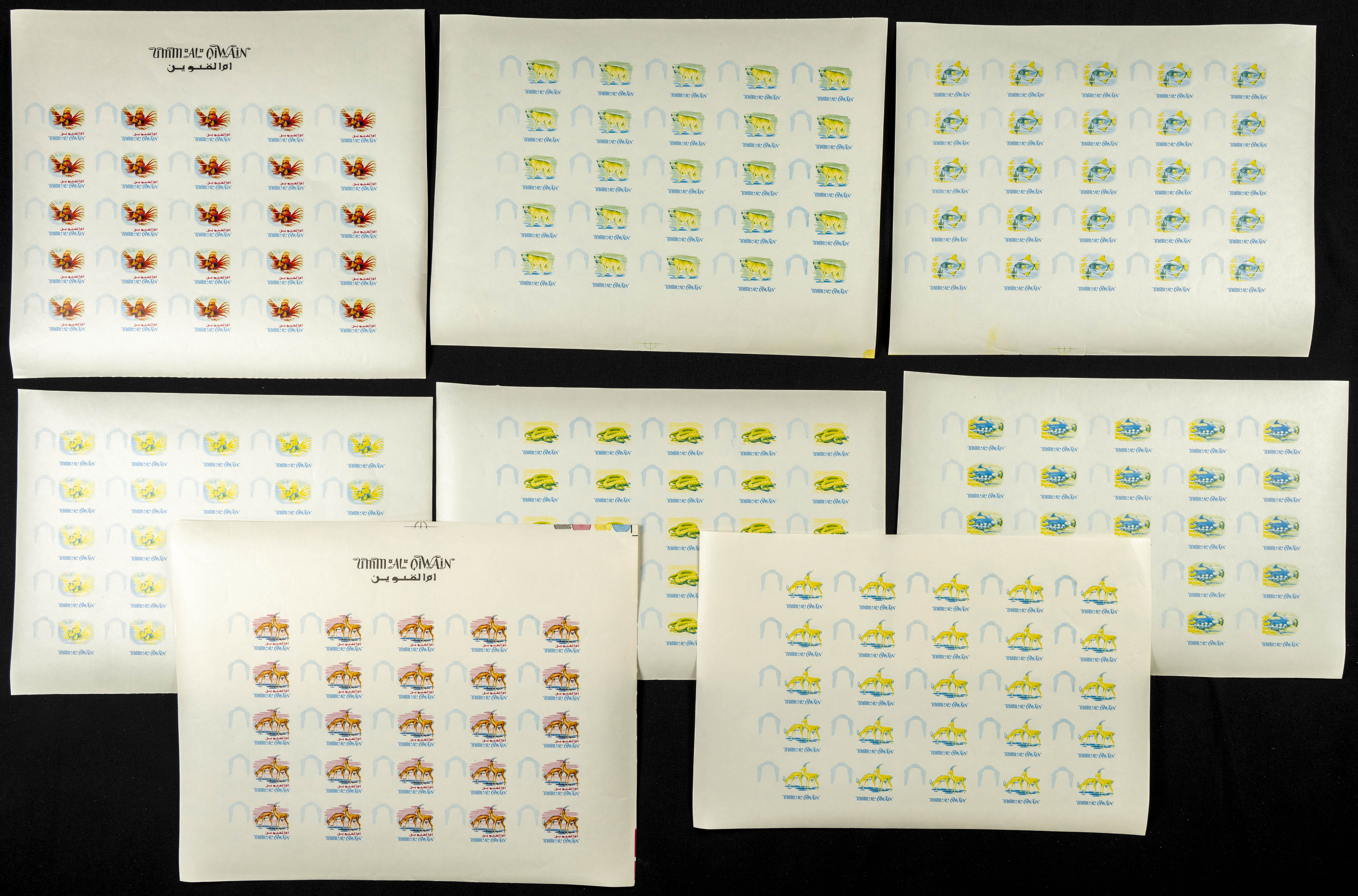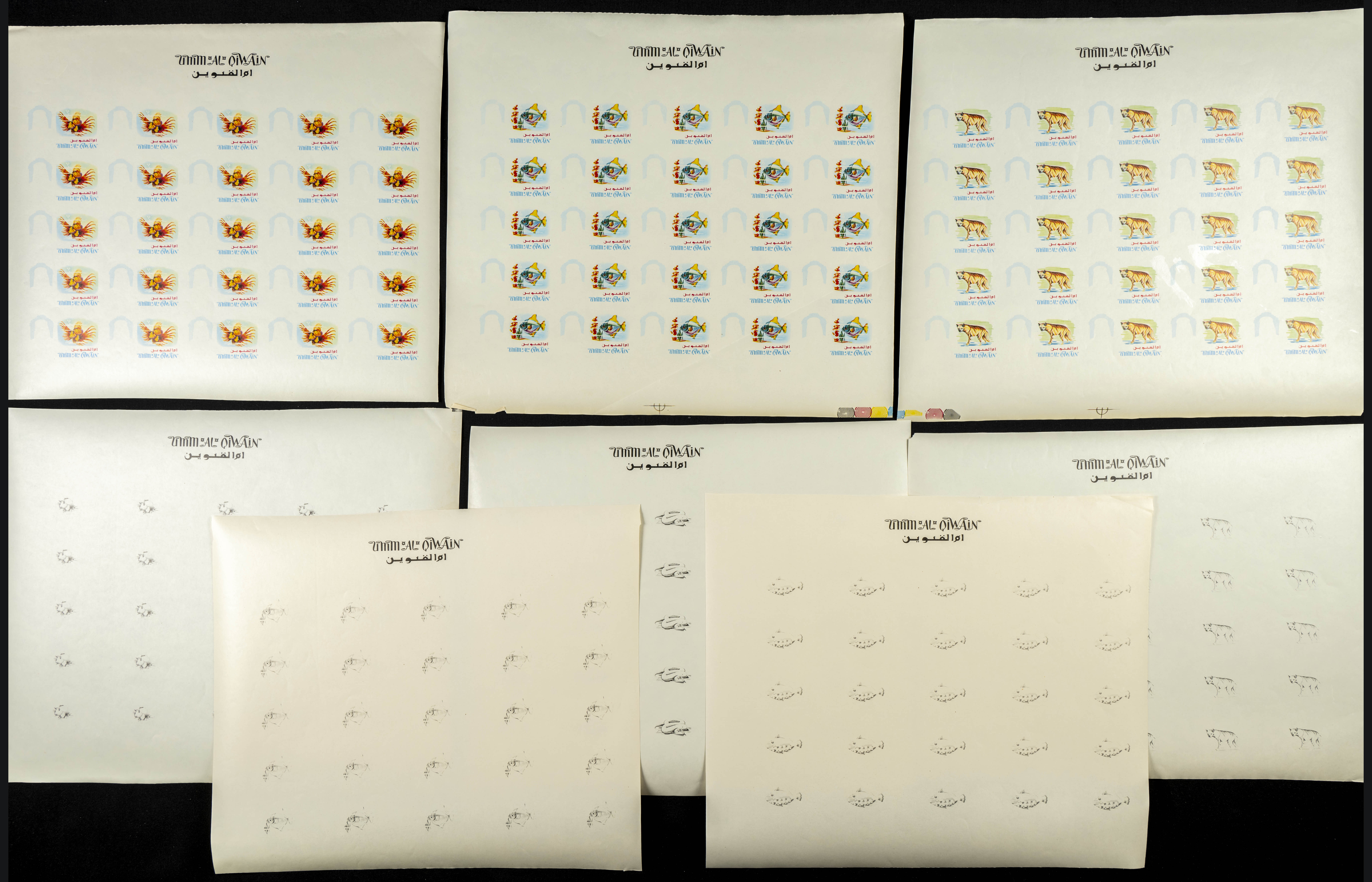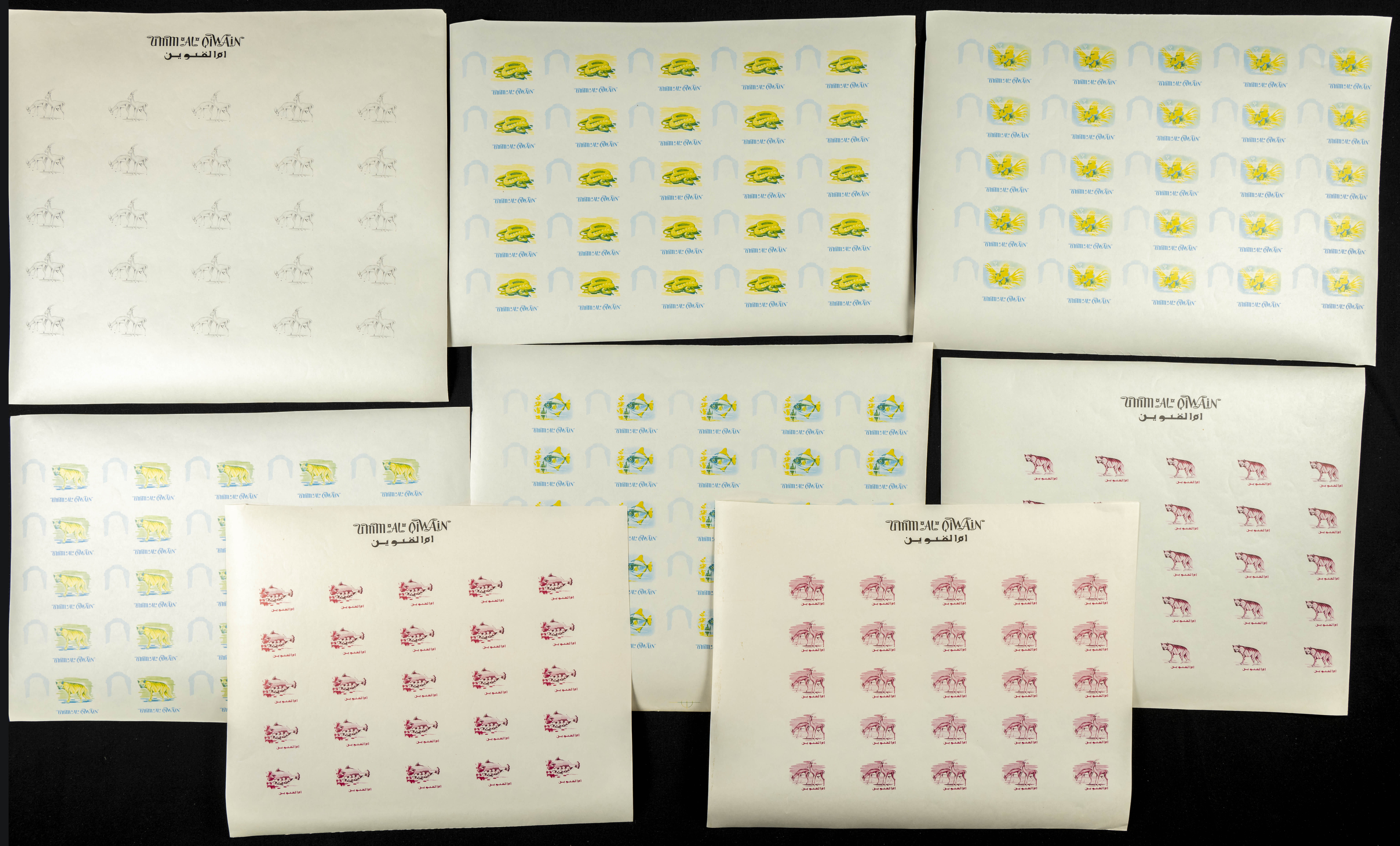 ★★1964. AHMED BIN RASHID AL MOALLA, Definitives. Group of progressive plate proofs of the set. (Michel: 1/18). TO EXAM.
