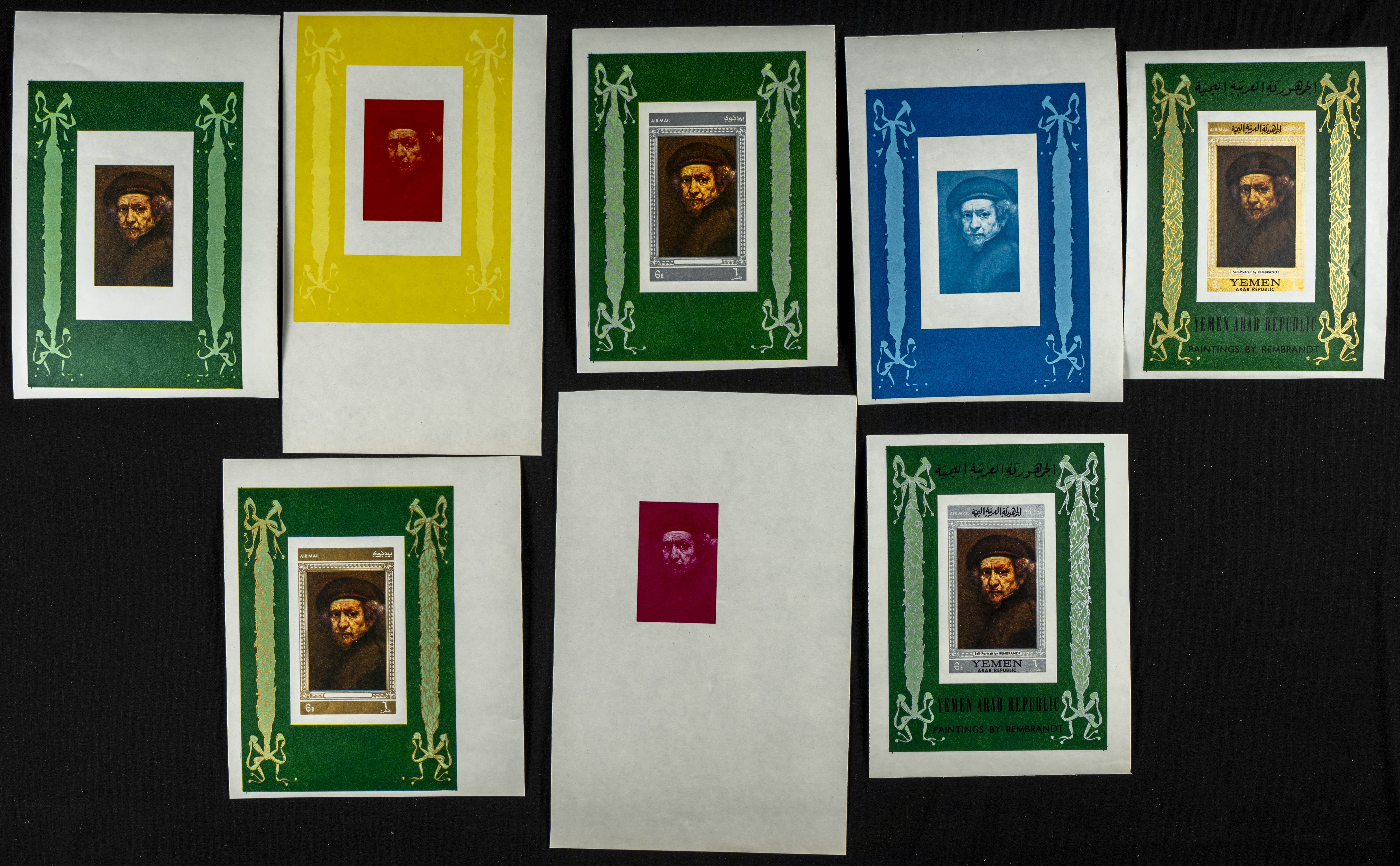★★1968. Rembrandt paintings. Group of progressive plate proofs of the set. (Michel: B74). TO EXAM.