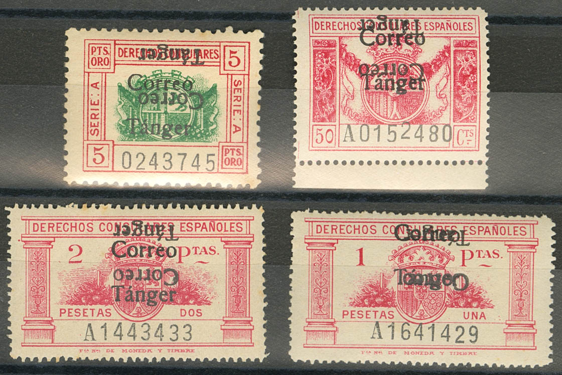 ★ 142/46hhi. 1938. Serie completa (2 pts y 5 pts manchitas del tiempo). SOBRECARGA DOBLE, UNA INVERTIDA. BONITA Y RARA. Edifil 2018: 400 Euros