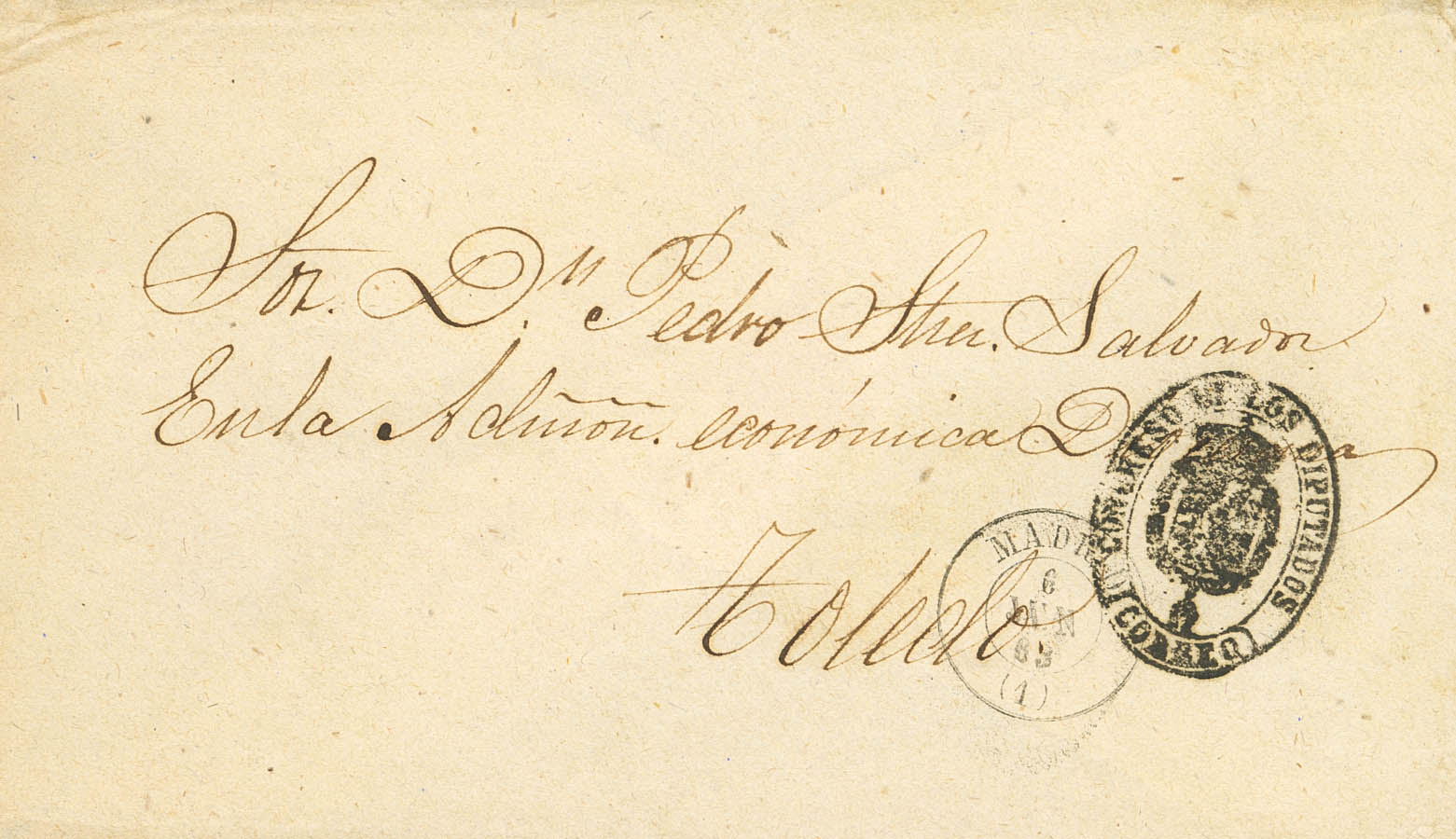 1863. MADRID a TOLEDO. Marca de franquicia CONGRESO DE LOS DIPUTADOS / CORREO. MAGNIFICA.