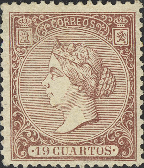 (★) 83. 1866. 19 cuartos castaño. Muy bien centrado. MAGNIFICO. Cert. EXFIMA.