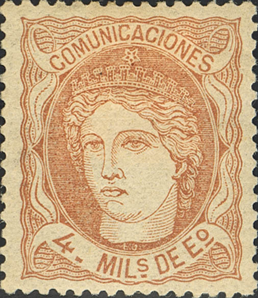 ★ 104. 1870. 4 mils sepia. Color y centraje excepcional. PIEZA DE LUJO.