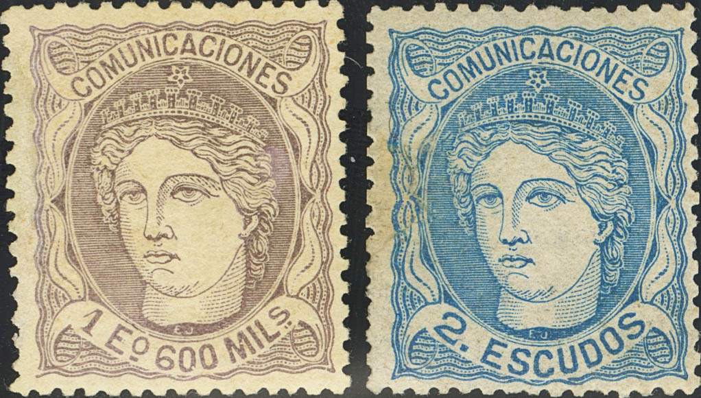 ★/(★) 111, 112. 1870. 1600 mils (margen inferior izquierdo, dientes retocados) y 2 escudos (reparado). MAGNIFICOS.