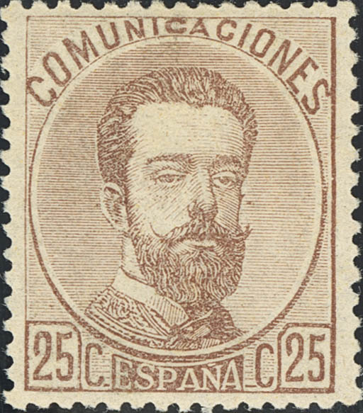 ★ 124. 1872. 25 cts castaño. Color intenso y bonito centraje. MAGNIFICO.