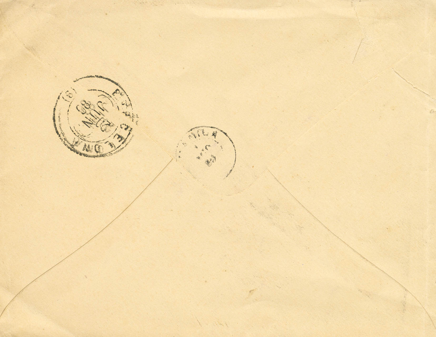 201, 202, 204(2). 1879. 5 cts verde, 10 cts rosa y 25 cts azul gris, dos sellos. ALICANTE a CEBU (FILIPINAS). Matasello trébol ALICANTE / (4). MAGNIFICA E INUSUAL COMBINACION DE FRANQUEO PARA COMPLETAR LA TARIFA DE 65 CTS.