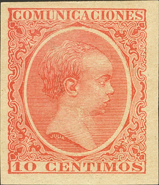 ★ 218s. 1889. 10 cts bermellón. SIN DENTAR. MAGNIFICO Y RARO. Edifil 2026: 440 Euros
