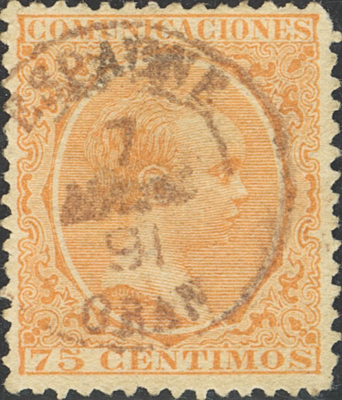225. 1889. 75 cts naranja. Matasello ESPAGNE / ORAN. MAGNIFICO Y RARISIMO.