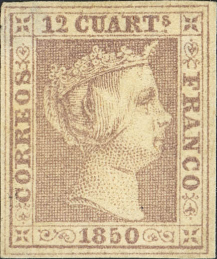 (★) 2. 1850. 12 cuartos lila (claridad en la esquina superior izquierda). MAGNIFICO. Dictamen CEM.