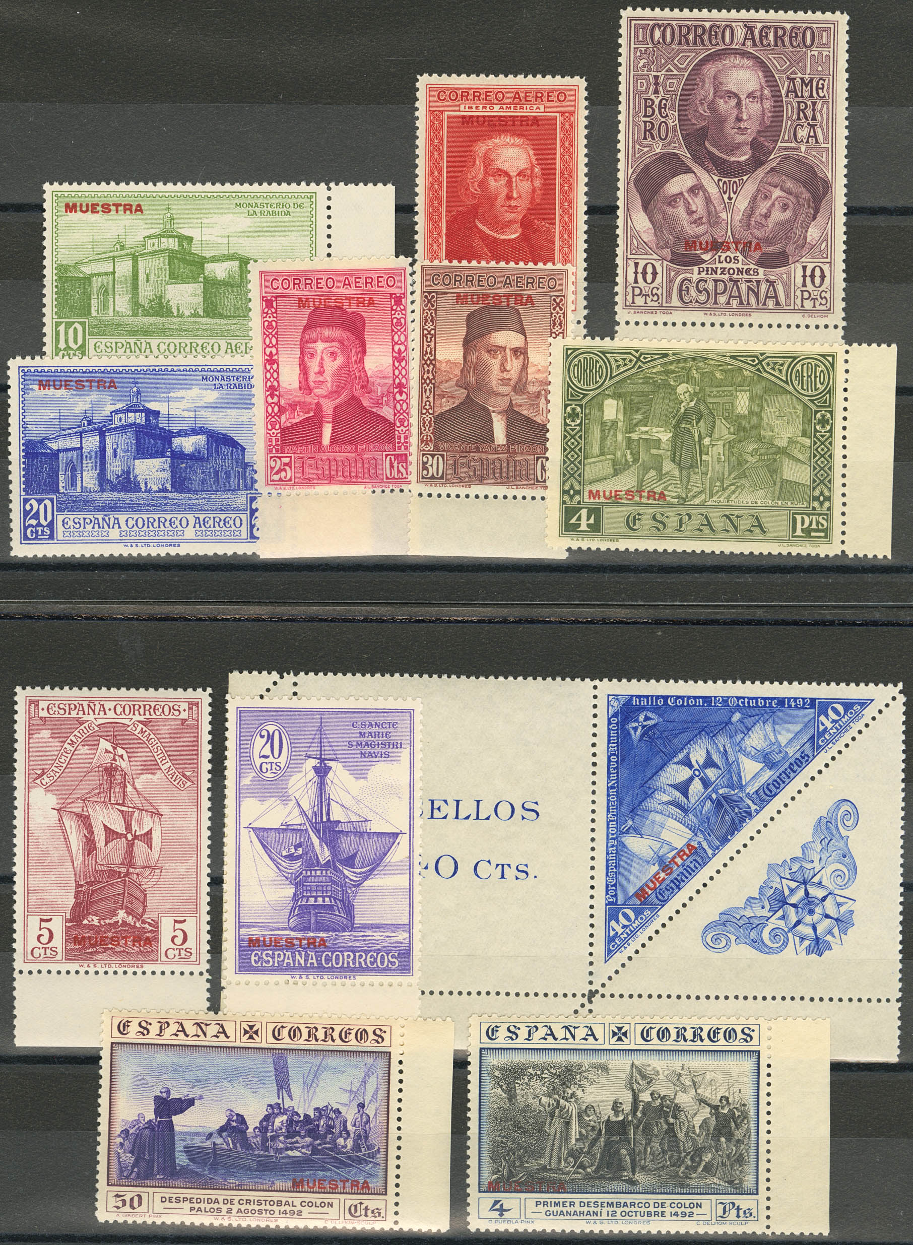 ★★ 535/43Ma, 551/57Ma, 560/65Ma. 1930. Tres series completas (doce valores). MUESTRA, en rojo. MAGNIFICAS. Edifil 2020: 71 Euros