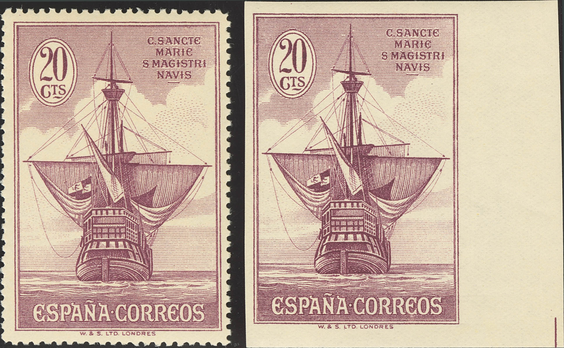 ★★ 546he, 546she. 1930. Conjunto de dos sellos del 20 cts lila, dentado y sin dentar con la variedad SIN SOBRECARGA. MAGNIFICOS Y RAROS. Edifil 2020: 260 Euros