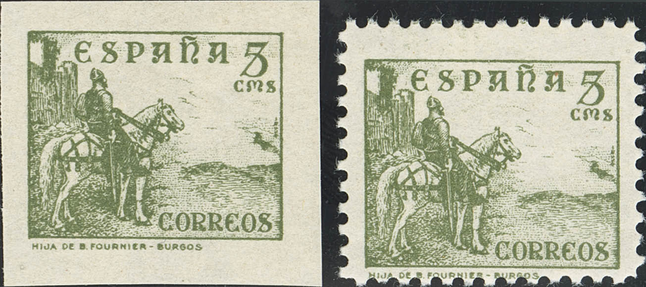 ★★ 816ec, ecs. 1937. 5 cts verde (sin dentar y dentado). COLORES CAMBIADOS. MAGNIFICOS. Edifil 2026: 136 Euros