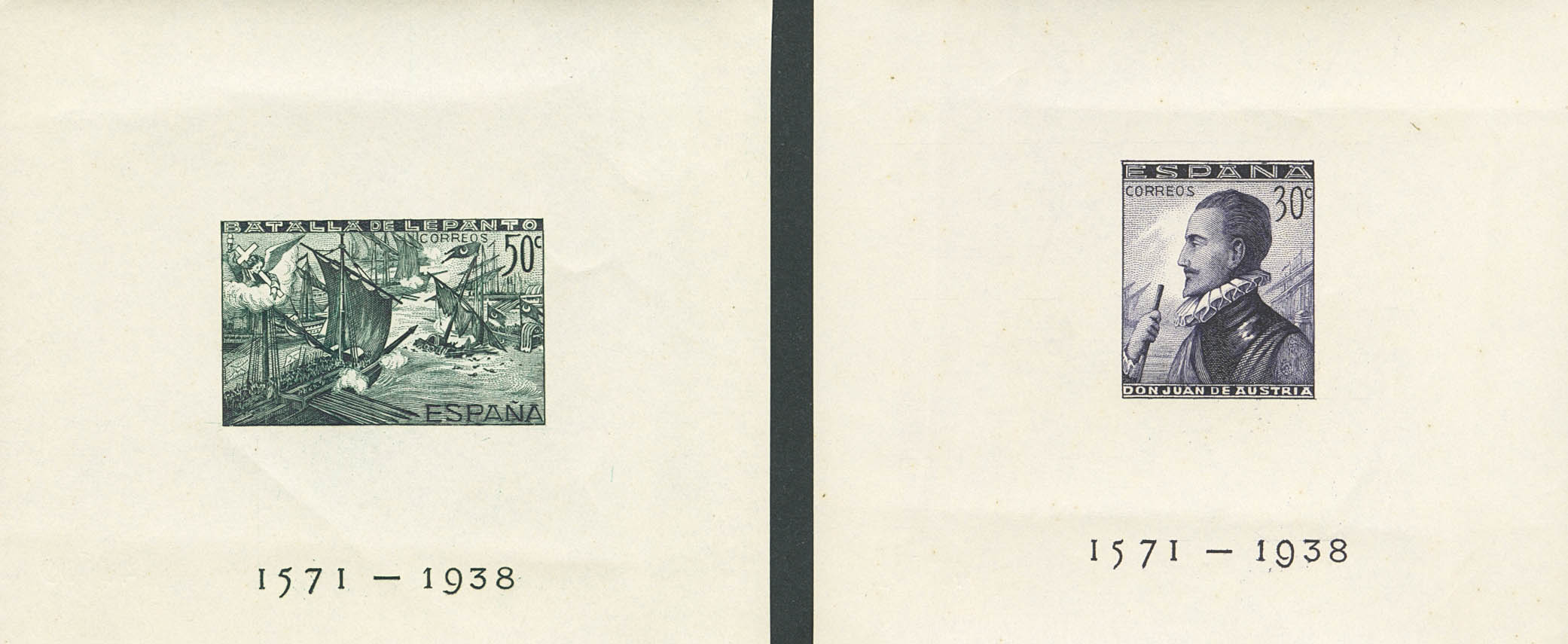 ★★ 864/65. 1938. Hoja bloque. SIN DENTAR. MAGNIFICAS. Cert. AIEP.