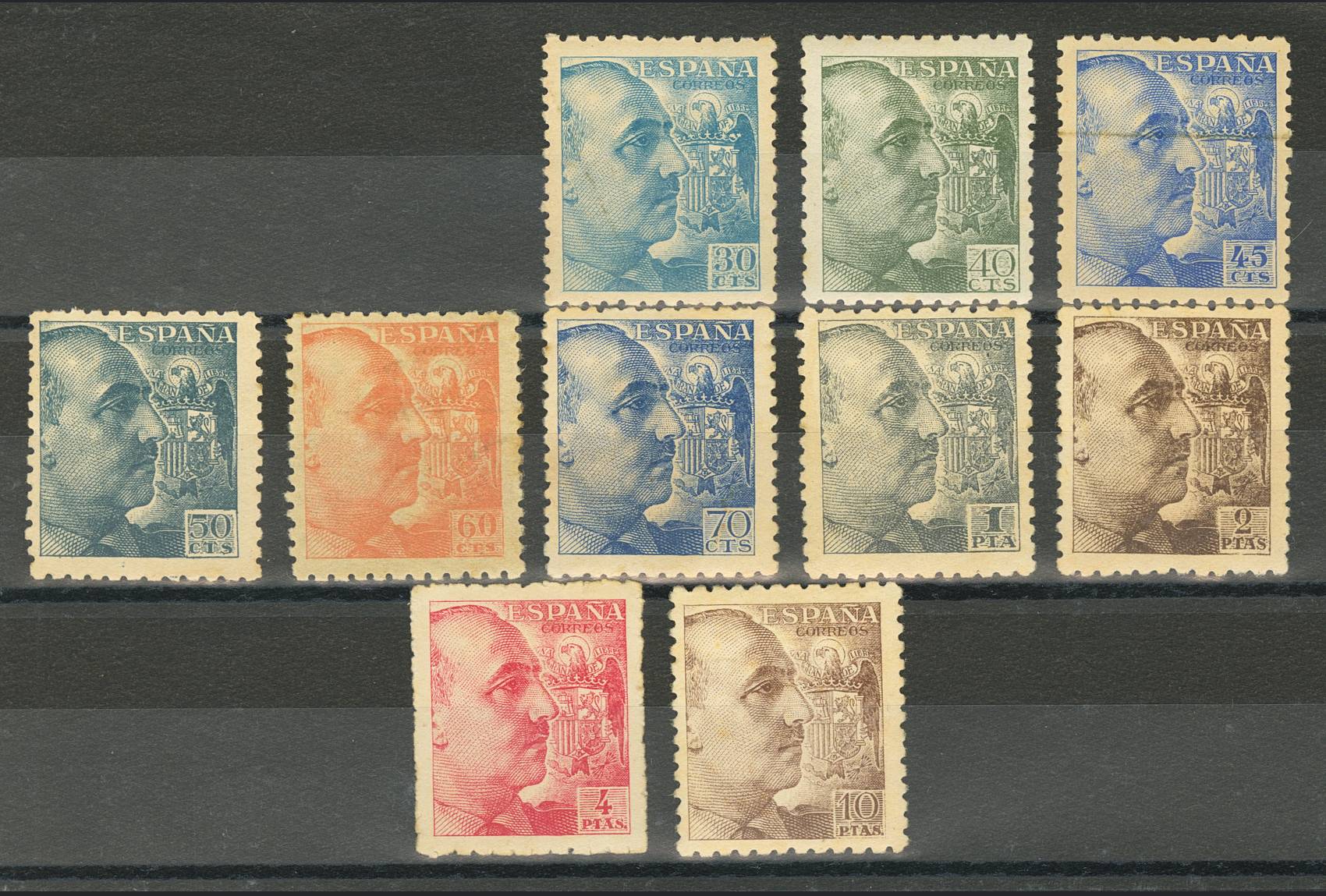 ★ 924/35N. 1940. Serie completa, a falta del 20 cts y 25 cts (conservación habitual). NºA000000. BONITA Y RARA. Edifil 2021: 710 Euros