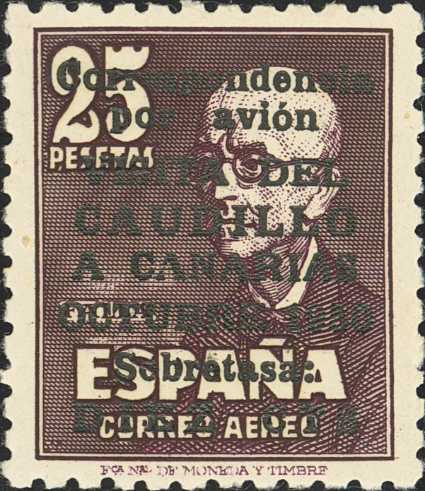 ★★ 1090. 1951. CAUDILLO A CANARIAS CON NUMERO. Centraje excepcional. PIEZA DE LUJO. Cert. CEM. Edifil 2026: +650 Euros