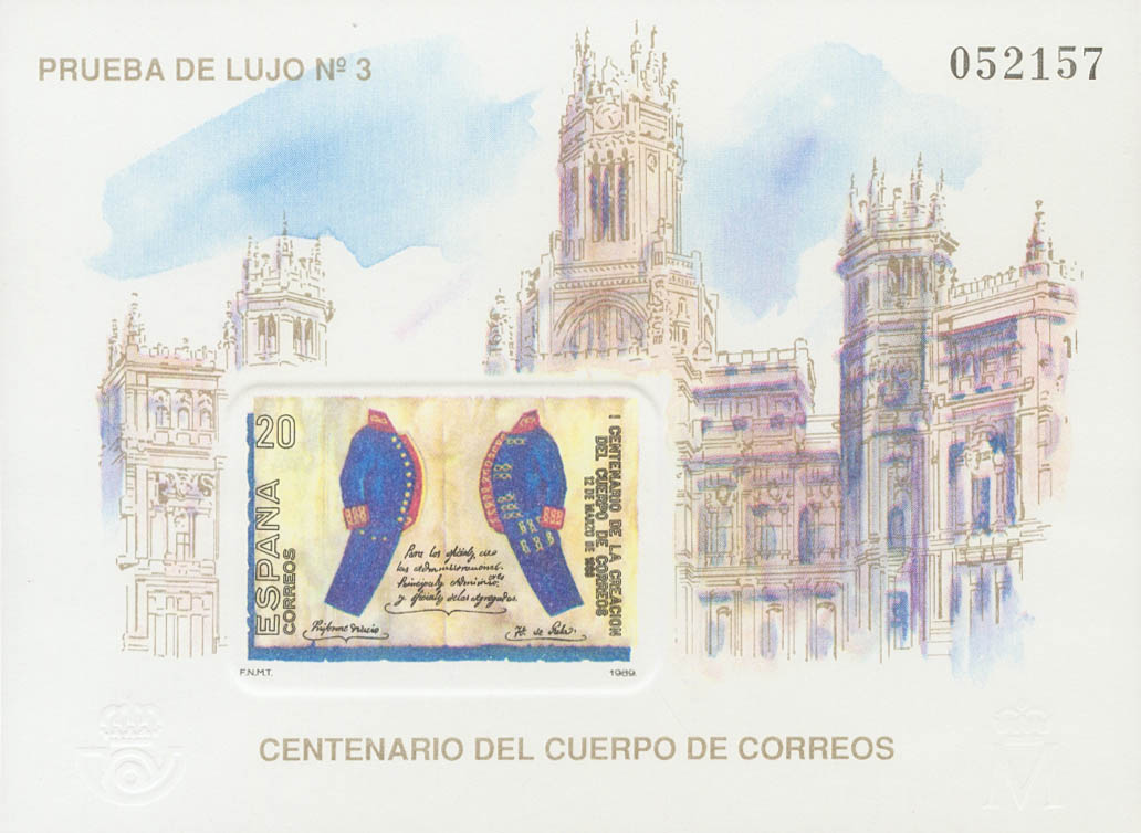 ★★ 18P. 1989. Prueba de Lujo. CENTENARIO DEL CUERPO DE CORREOS. MAGNIFICA. Edifil 2026: 48 Euros
