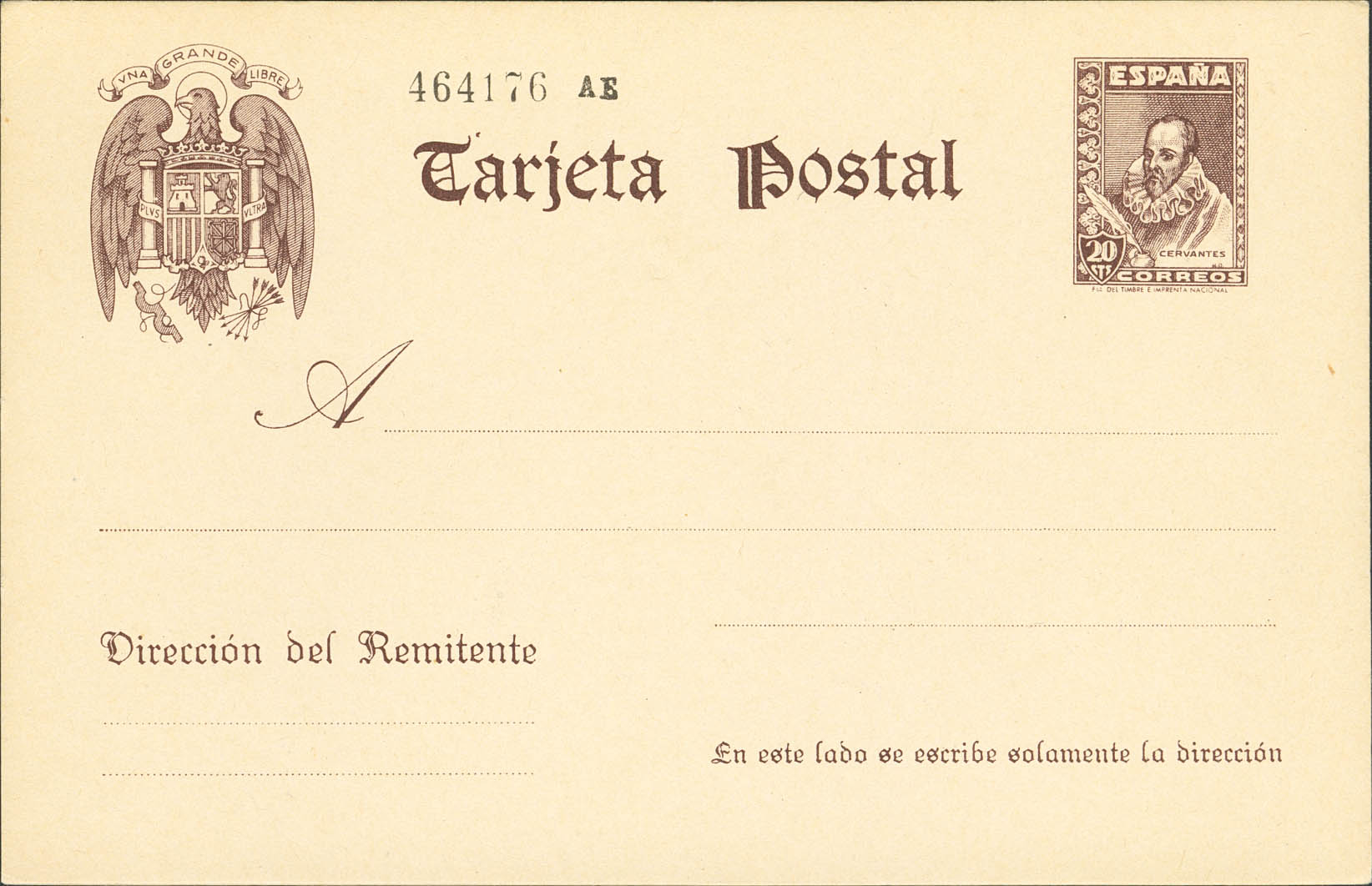 (★) EP83. 1938. 20 cts castaño sobre Tarjeta Entero Postal. MAGNIFICA. Edifil 2026: 112 Euros