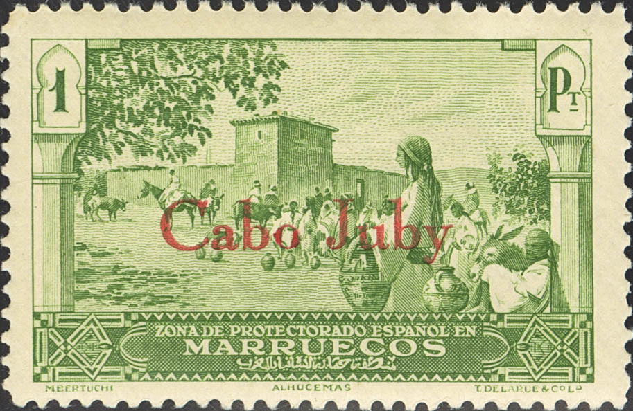 ★★ 56hce. 1934. 1 pts verde. CAMBIO DE COLOR DE LA SOBRECARGA, en rojo. MAGNIFICO Y RARO. Edifil 2018: 450 Euros