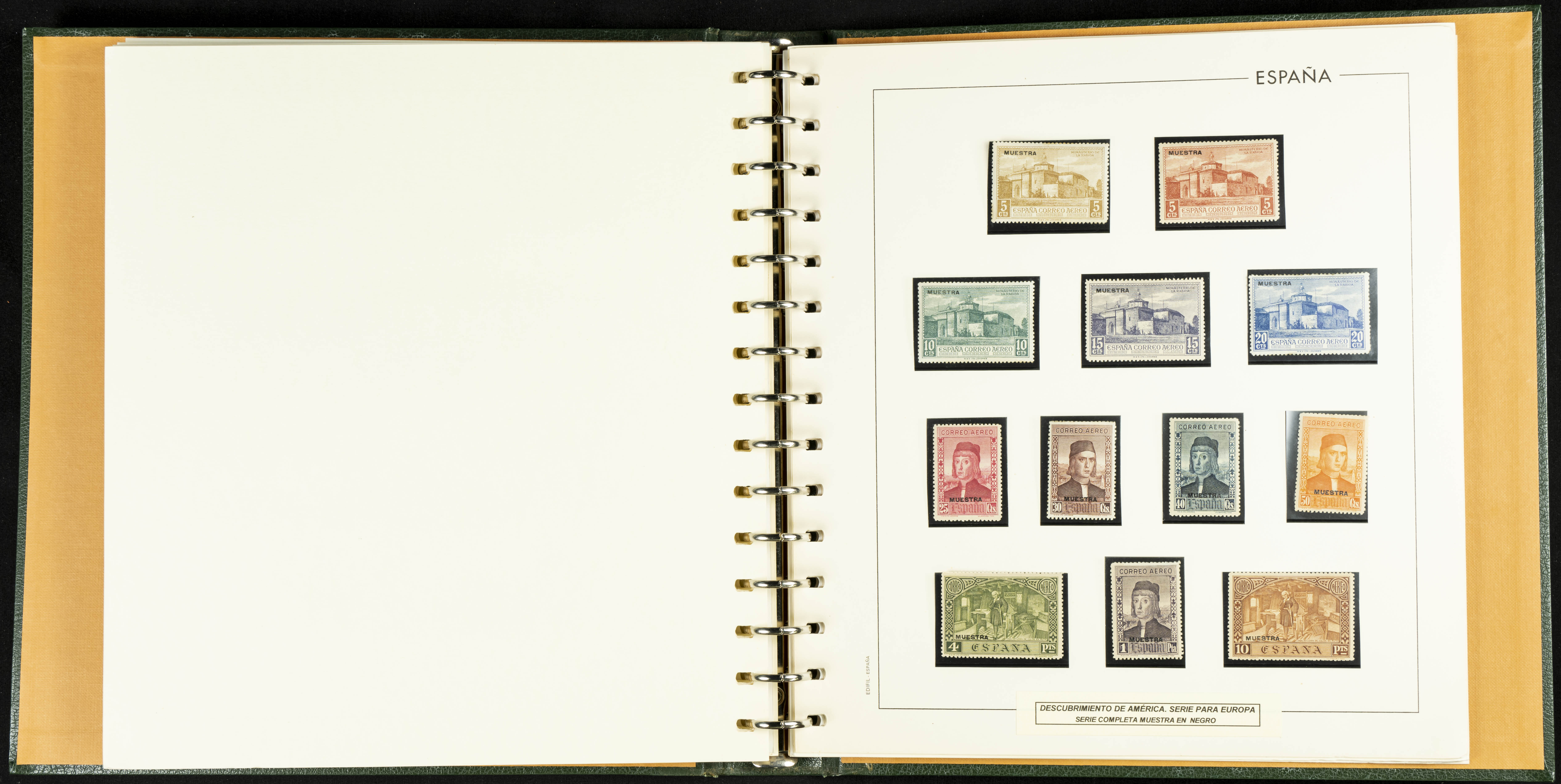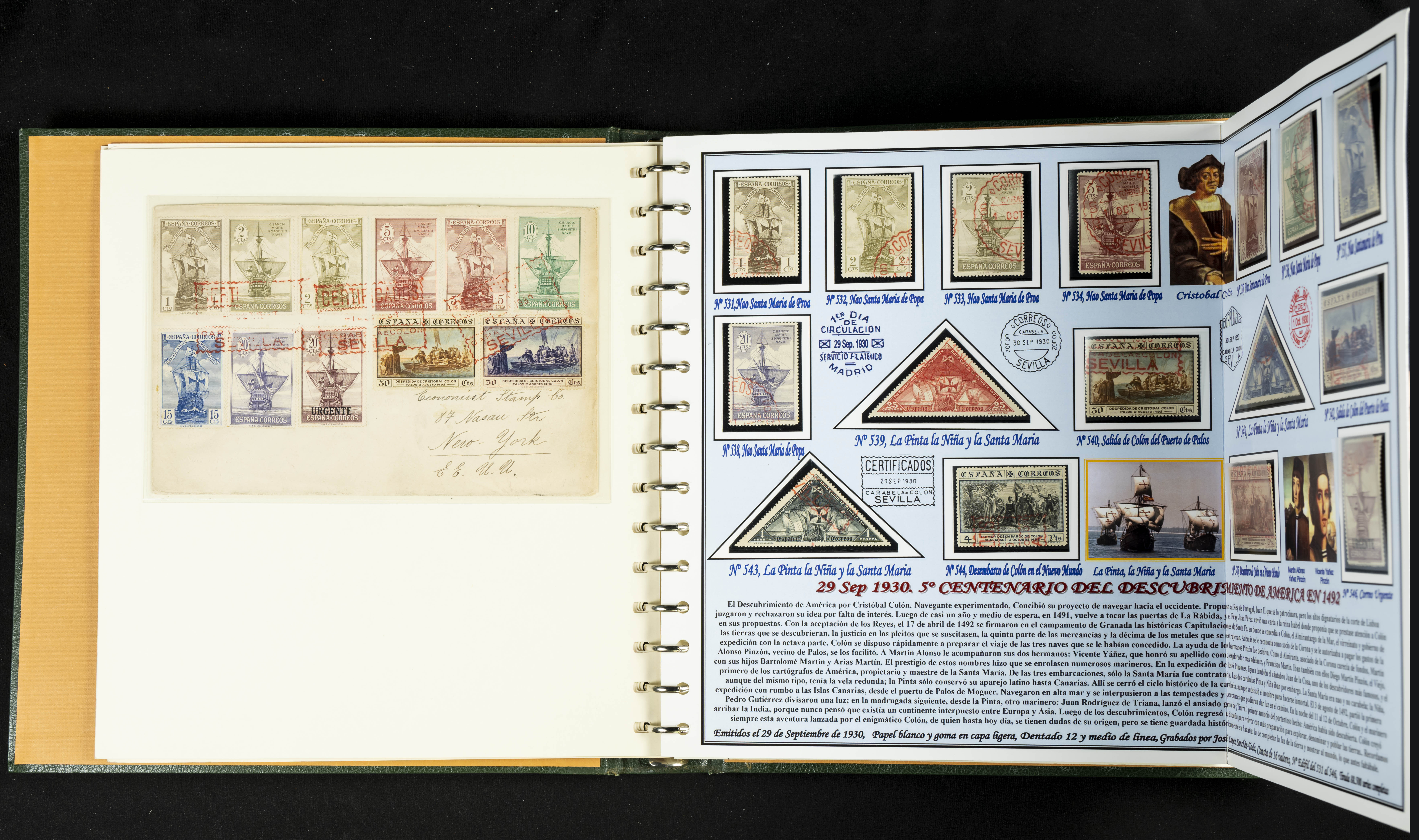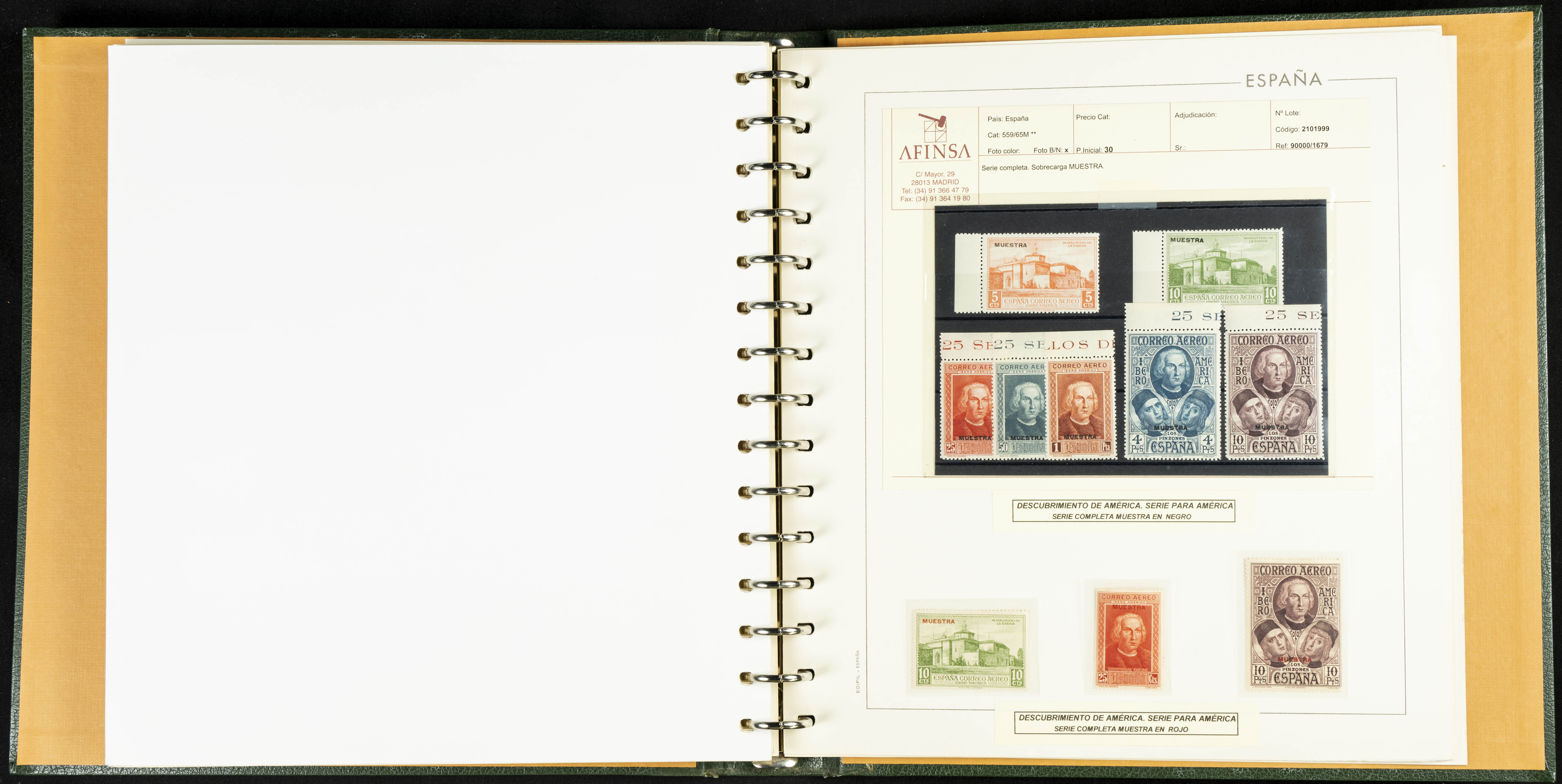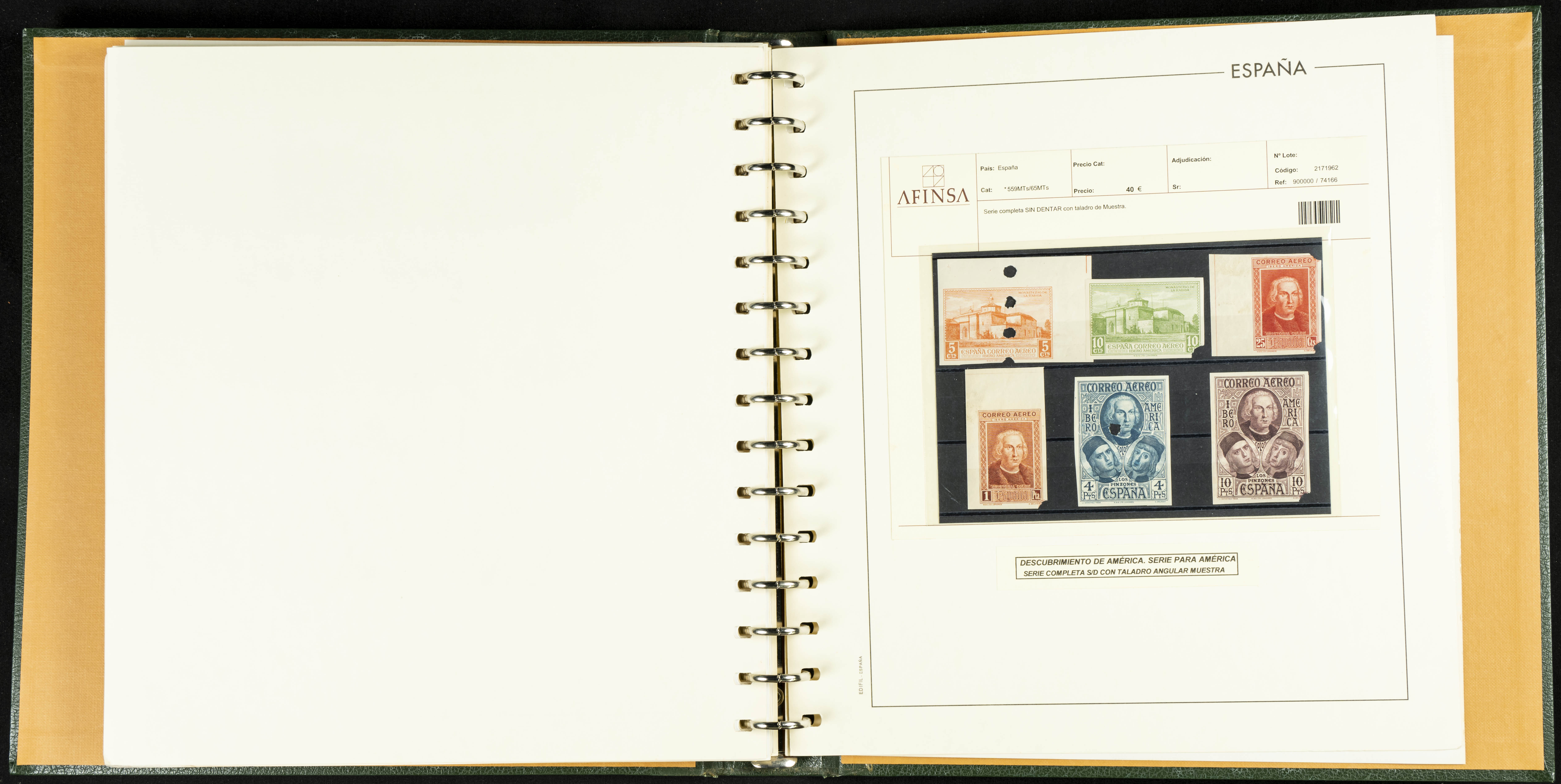 ★★/★(1930ca). Interesante conjunto-colección de la emisión del Descubrimiento de América, en nuevo e incluyendo sobrecargas y taladros Muestra, una serie sin dentar (Europa), varias cartas y Cambios de Color. ALTO VALOR DE CATALOGO. A EXAMINAR.