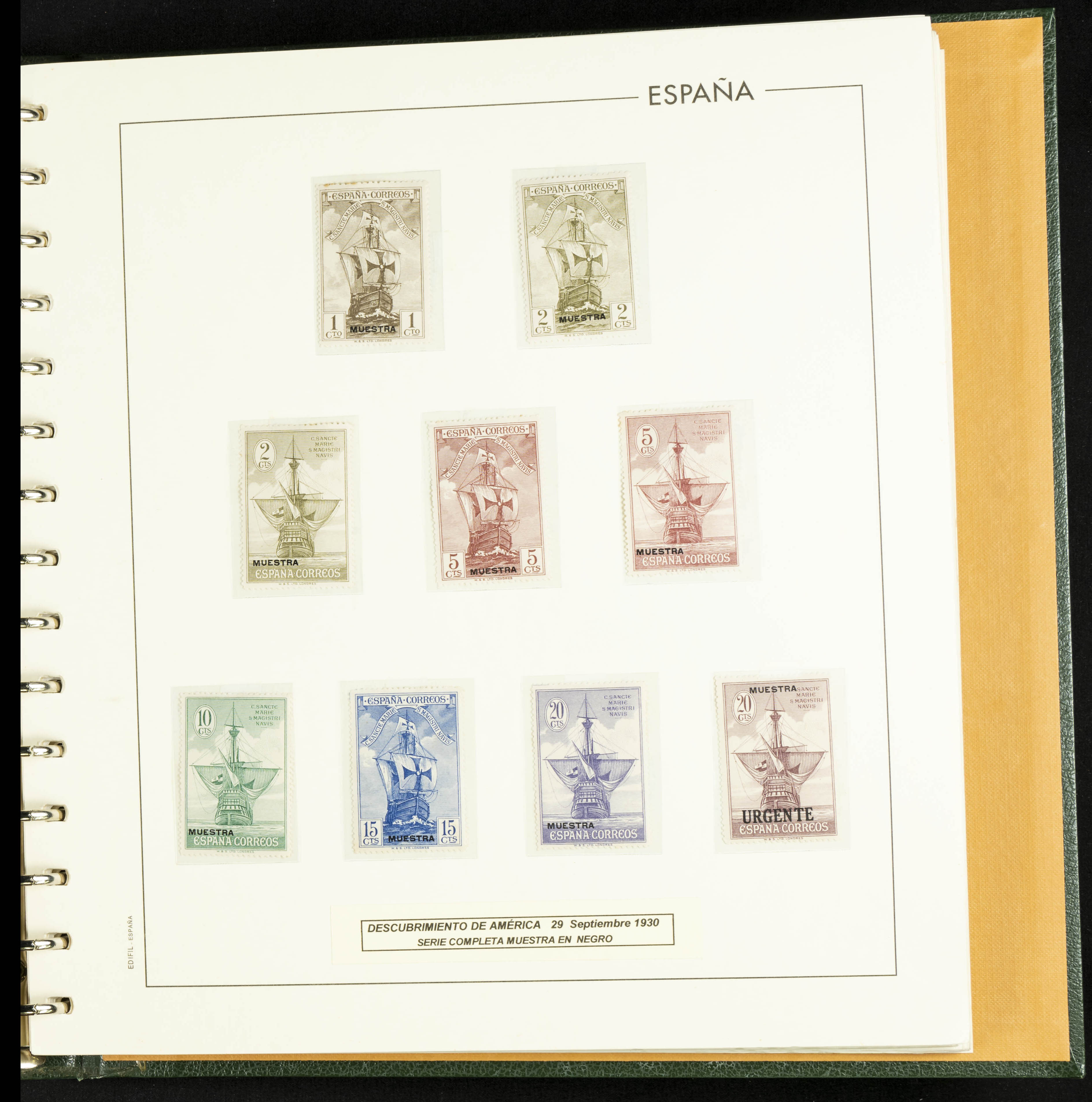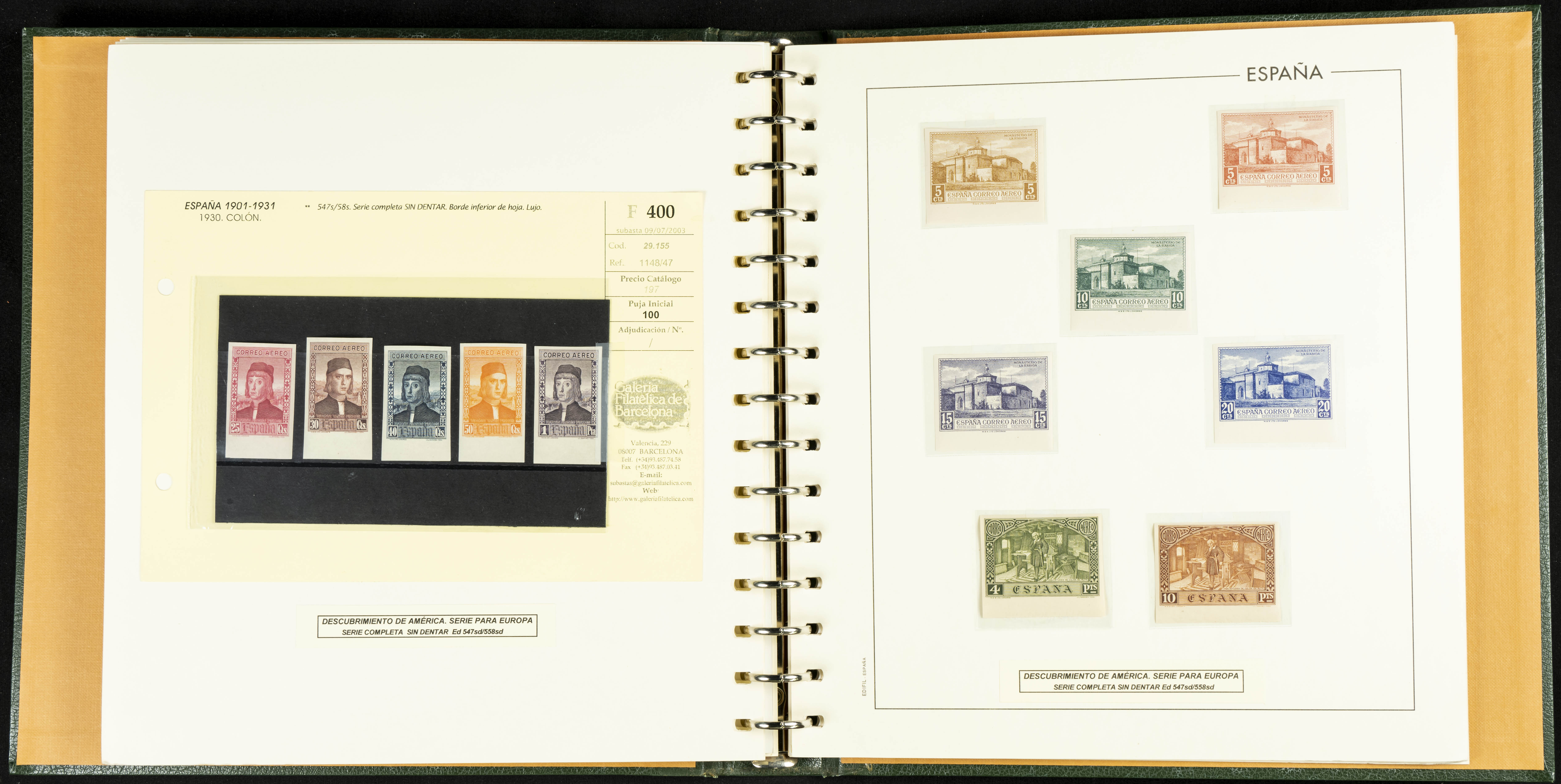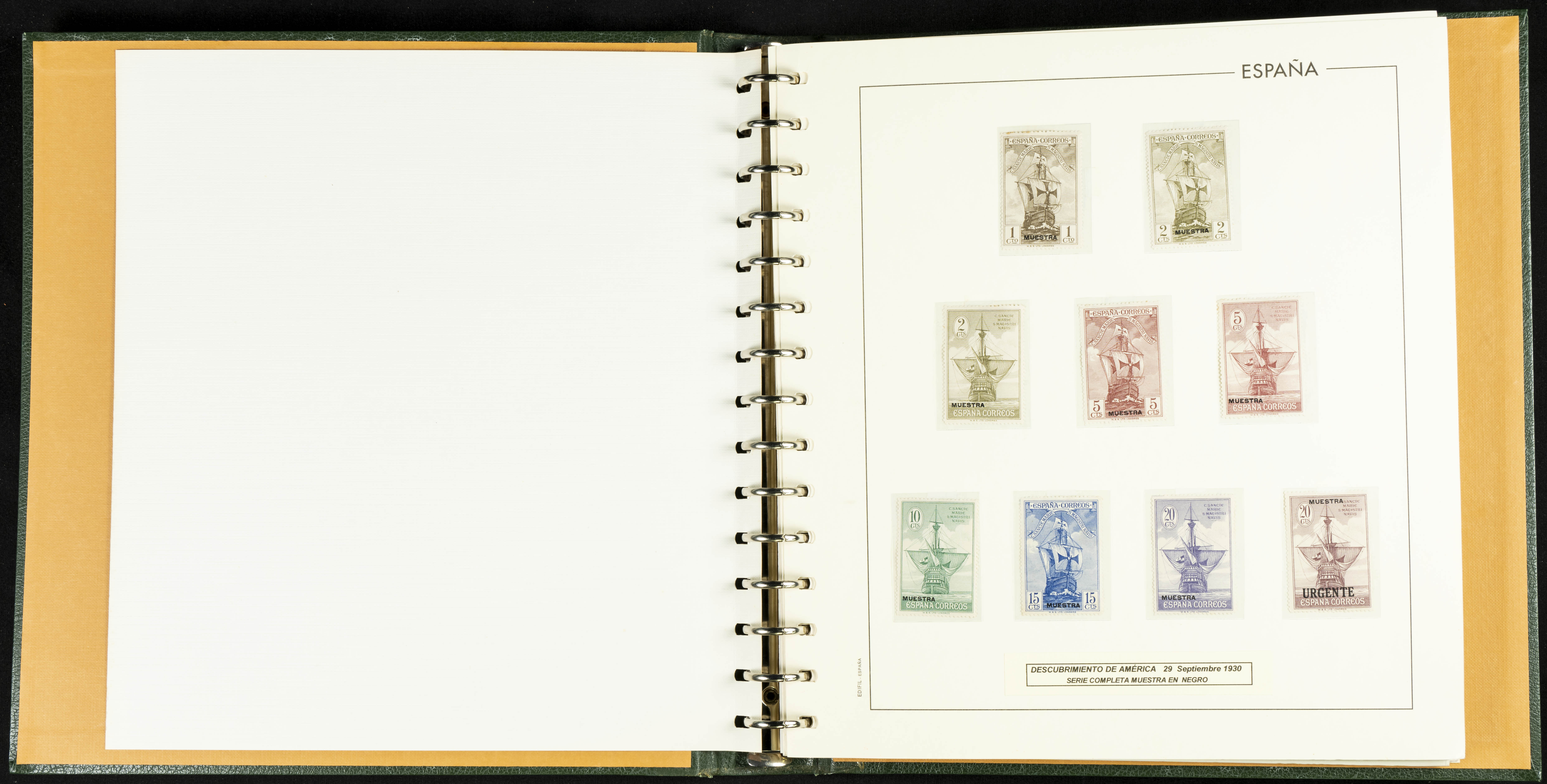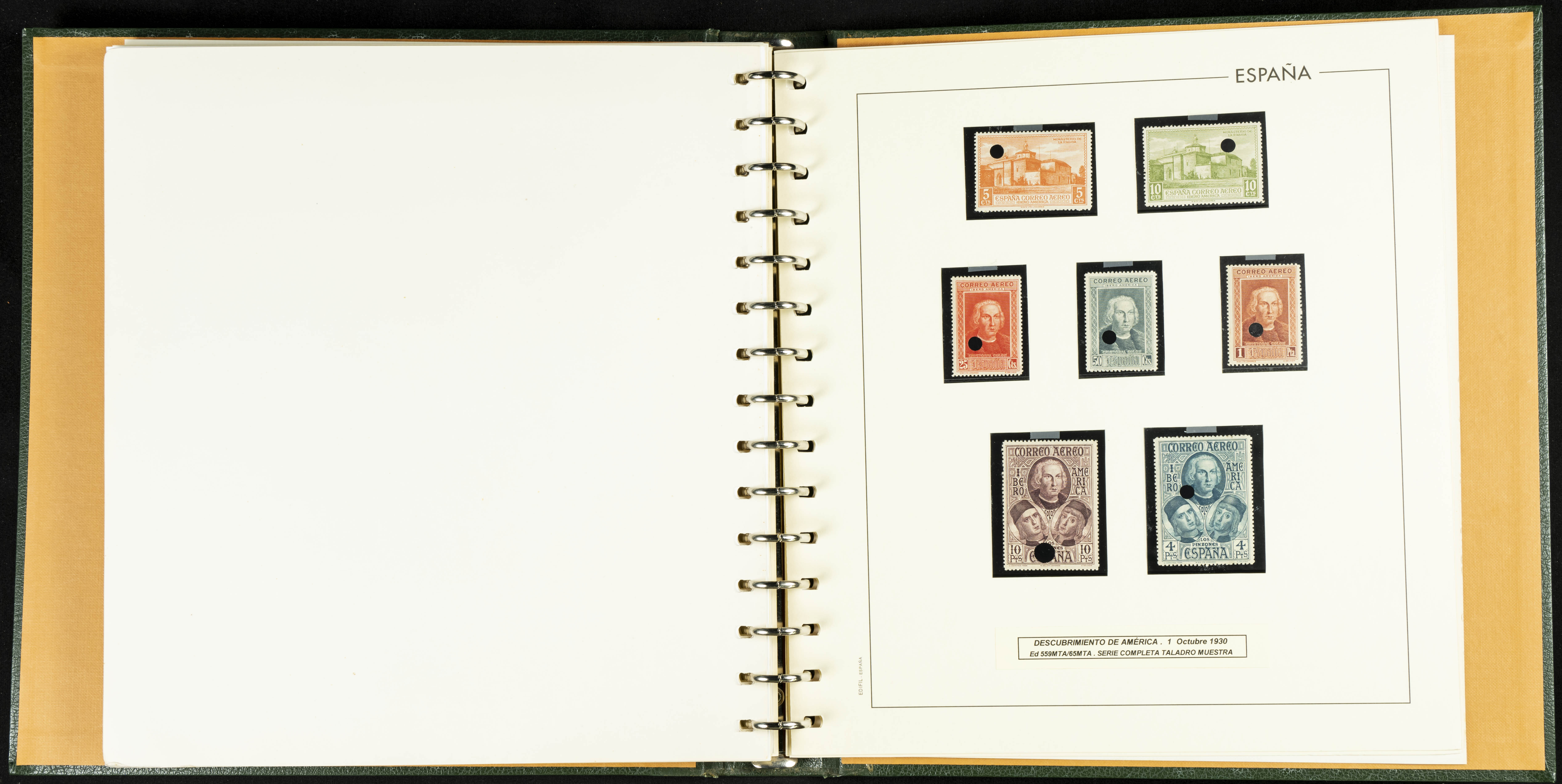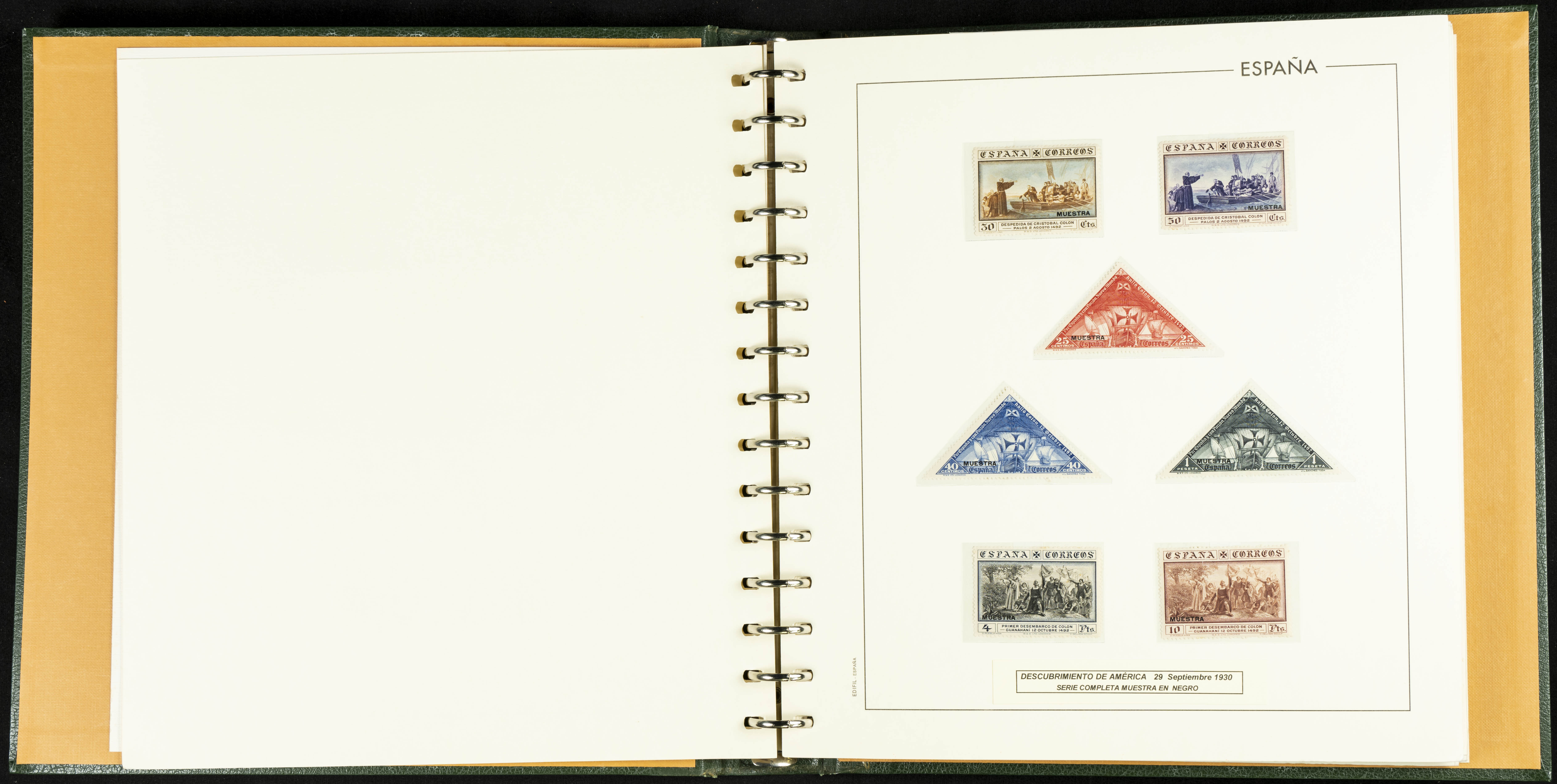 ★★/★(1930ca). Interesante conjunto-colección de la emisión del Descubrimiento de América, en nuevo e incluyendo sobrecargas y taladros Muestra, una serie sin dentar (Europa), varias cartas y Cambios de Color. ALTO VALOR DE CATALOGO. A EXAMINAR.