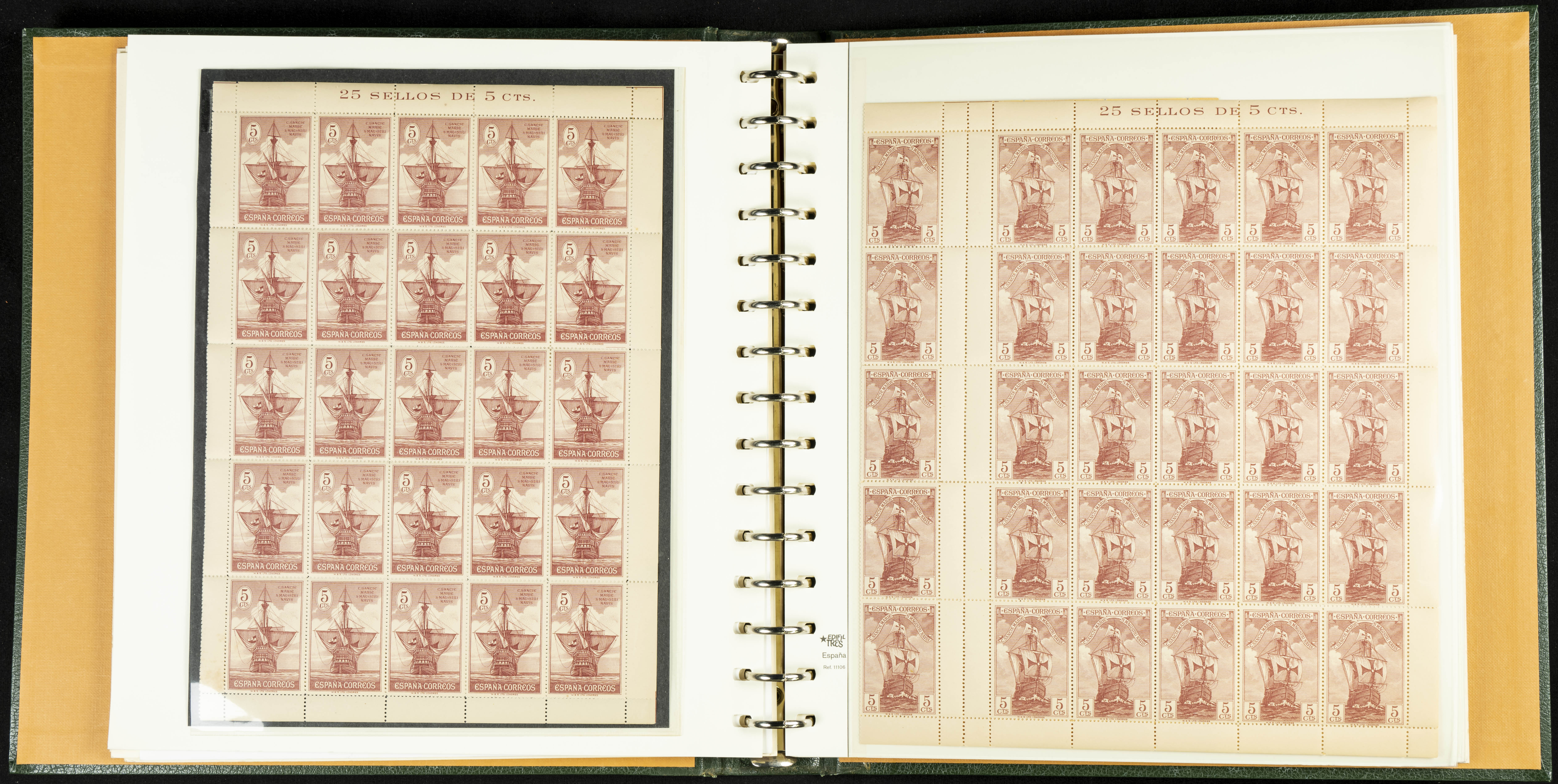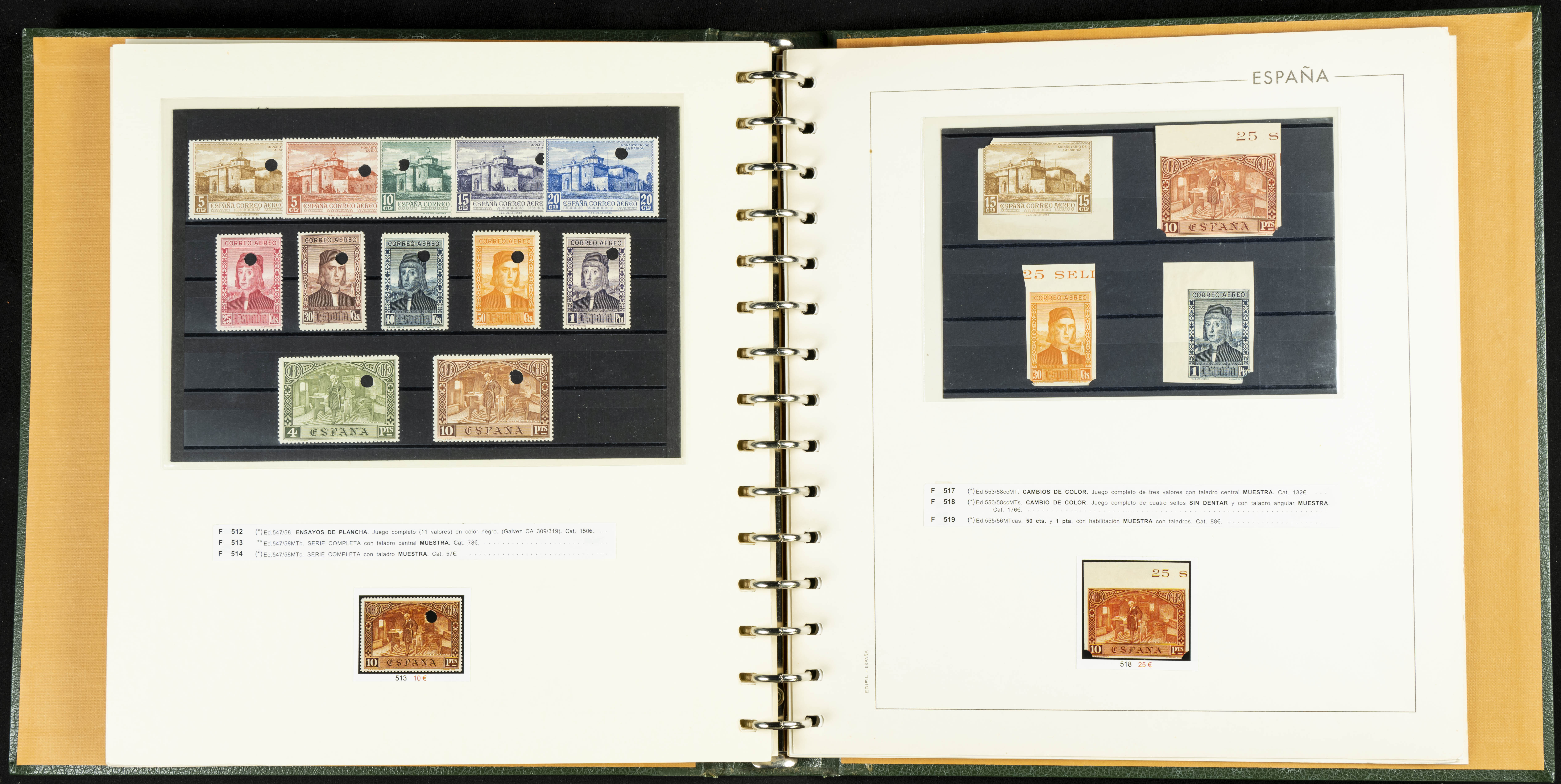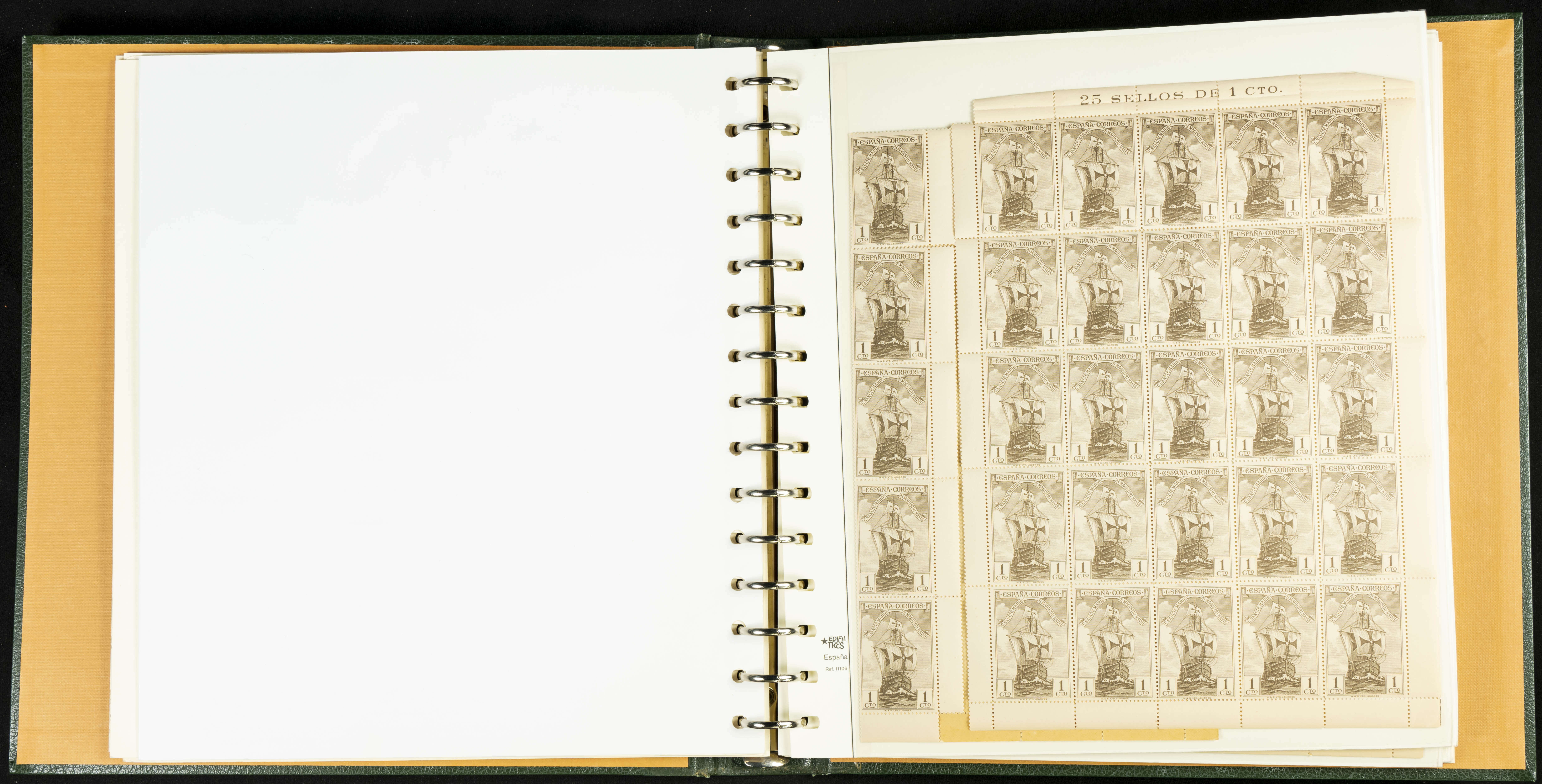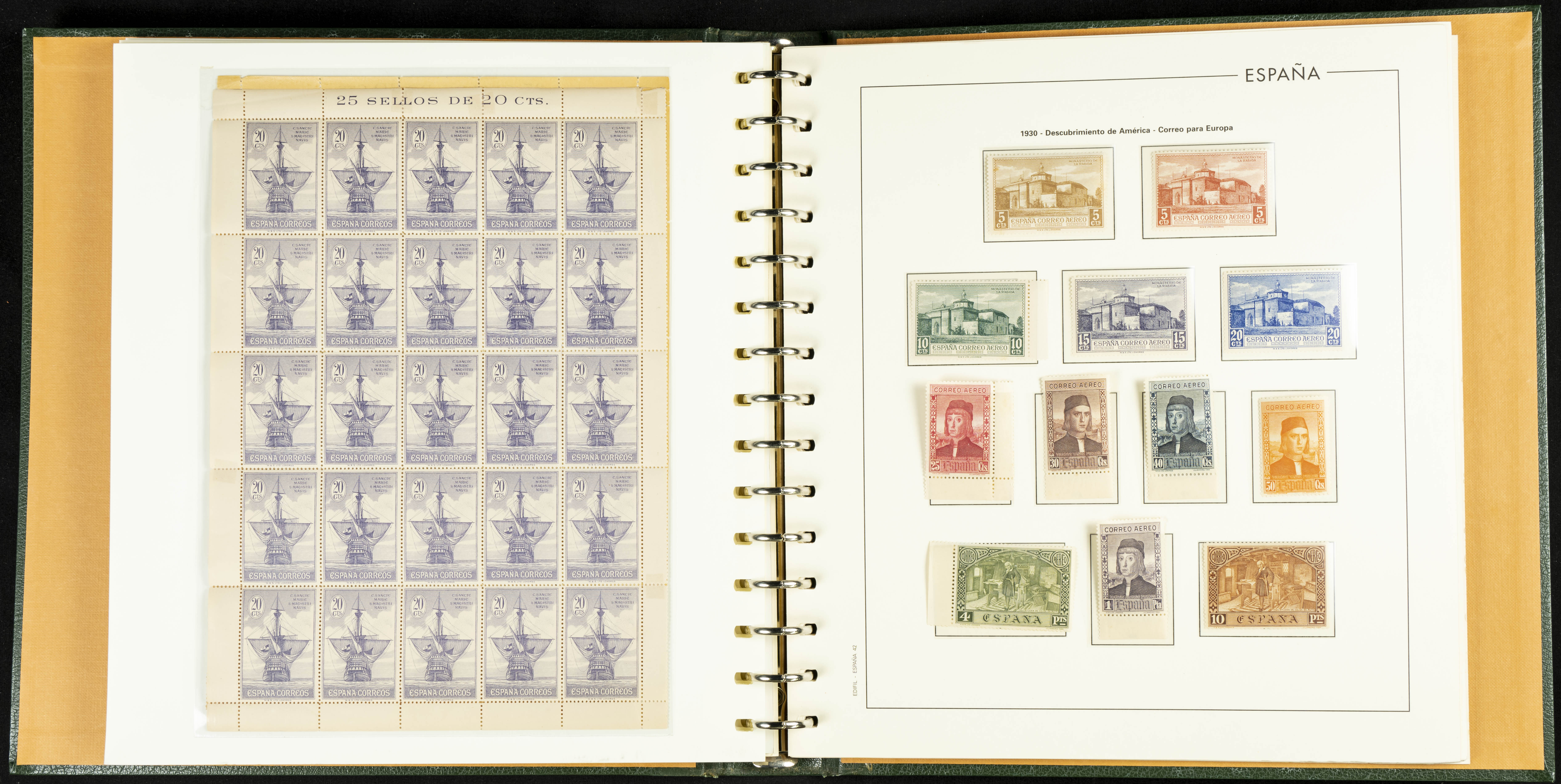 ★★/★(1930ca). Interesante conjunto-colección de la emisión del Descubrimiento de América, en nuevo e incluyendo sobrecargas y taladros Muestra, una serie sin dentar (Europa), varias cartas y Cambios de Color. ALTO VALOR DE CATALOGO. A EXAMINAR.