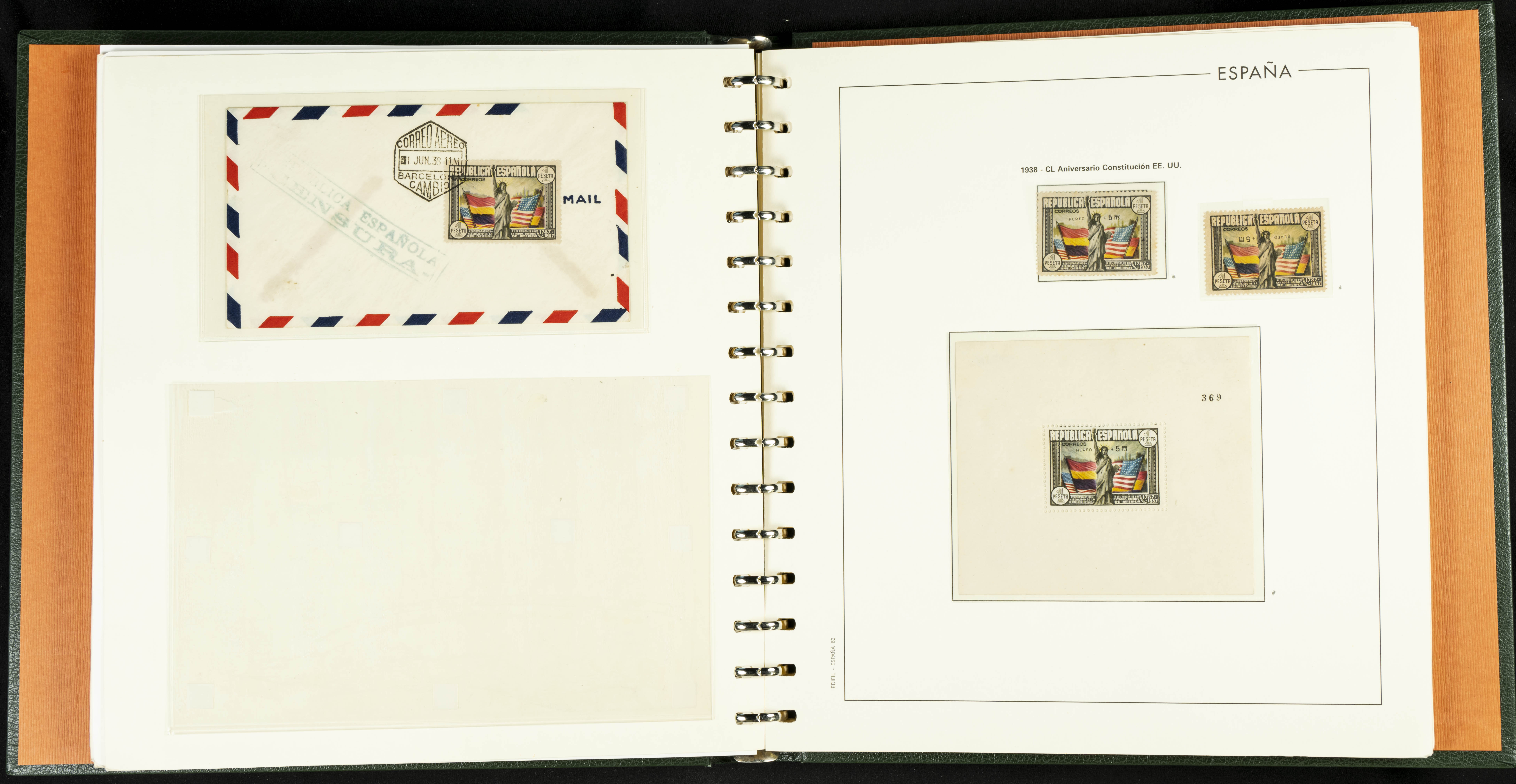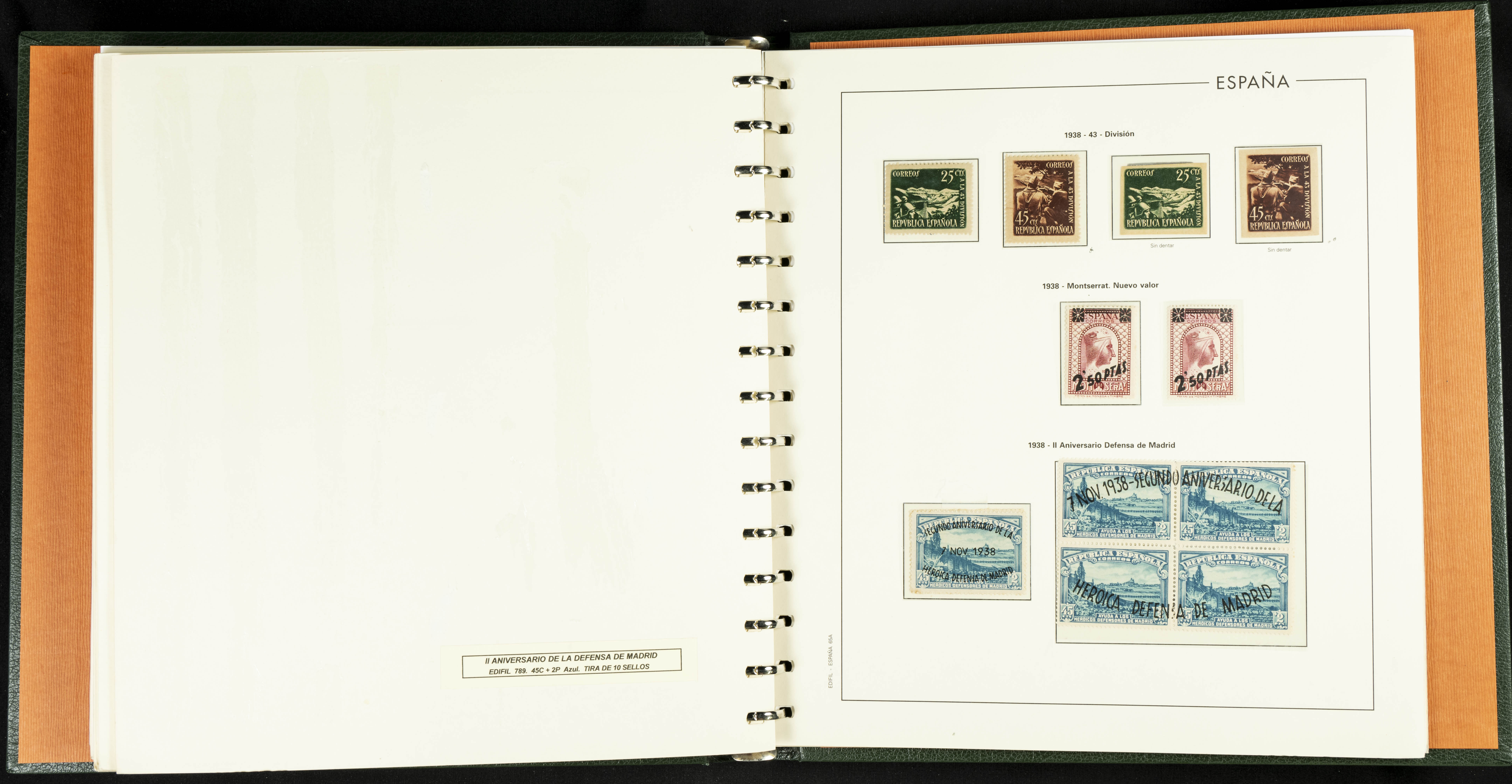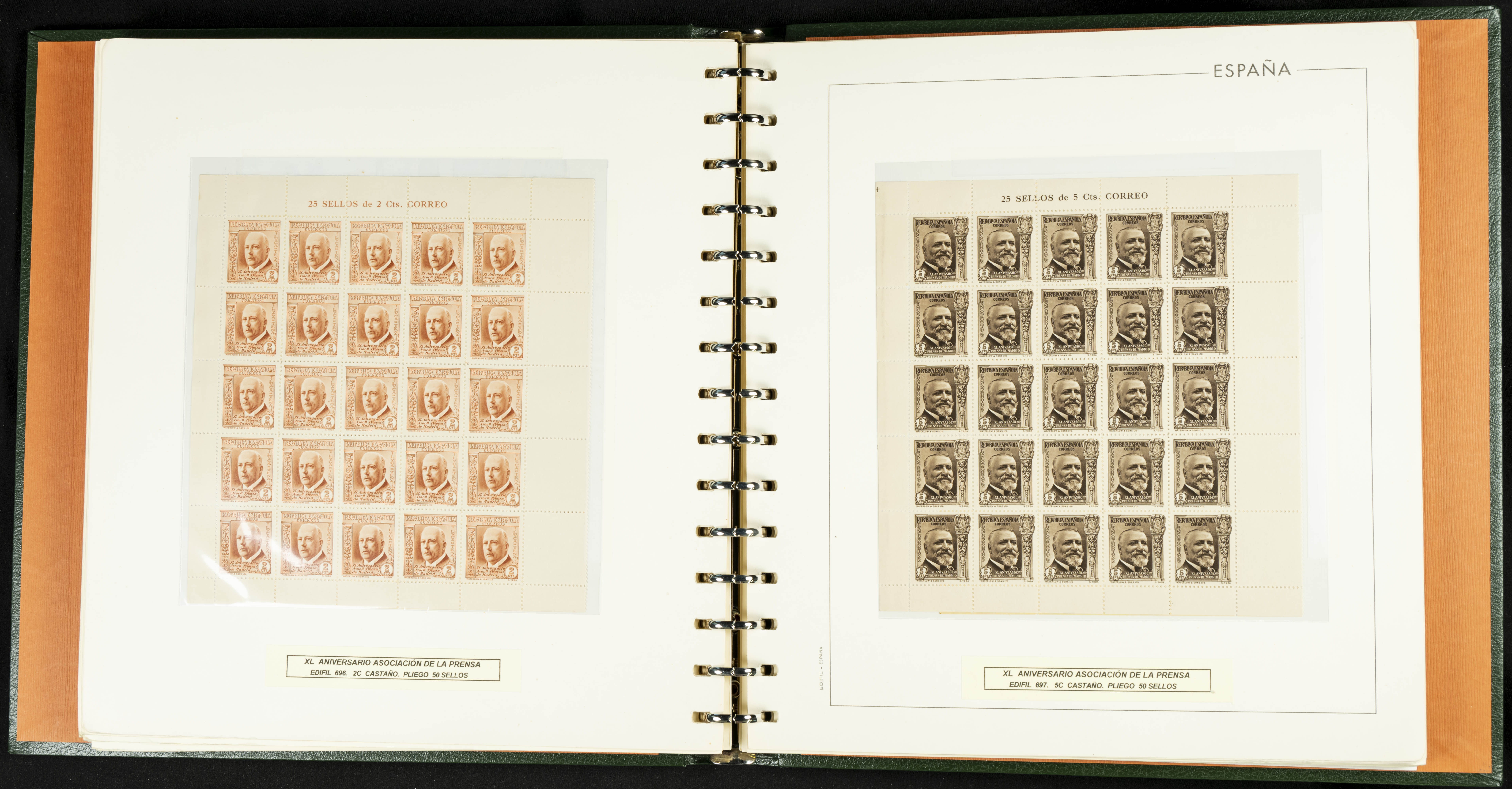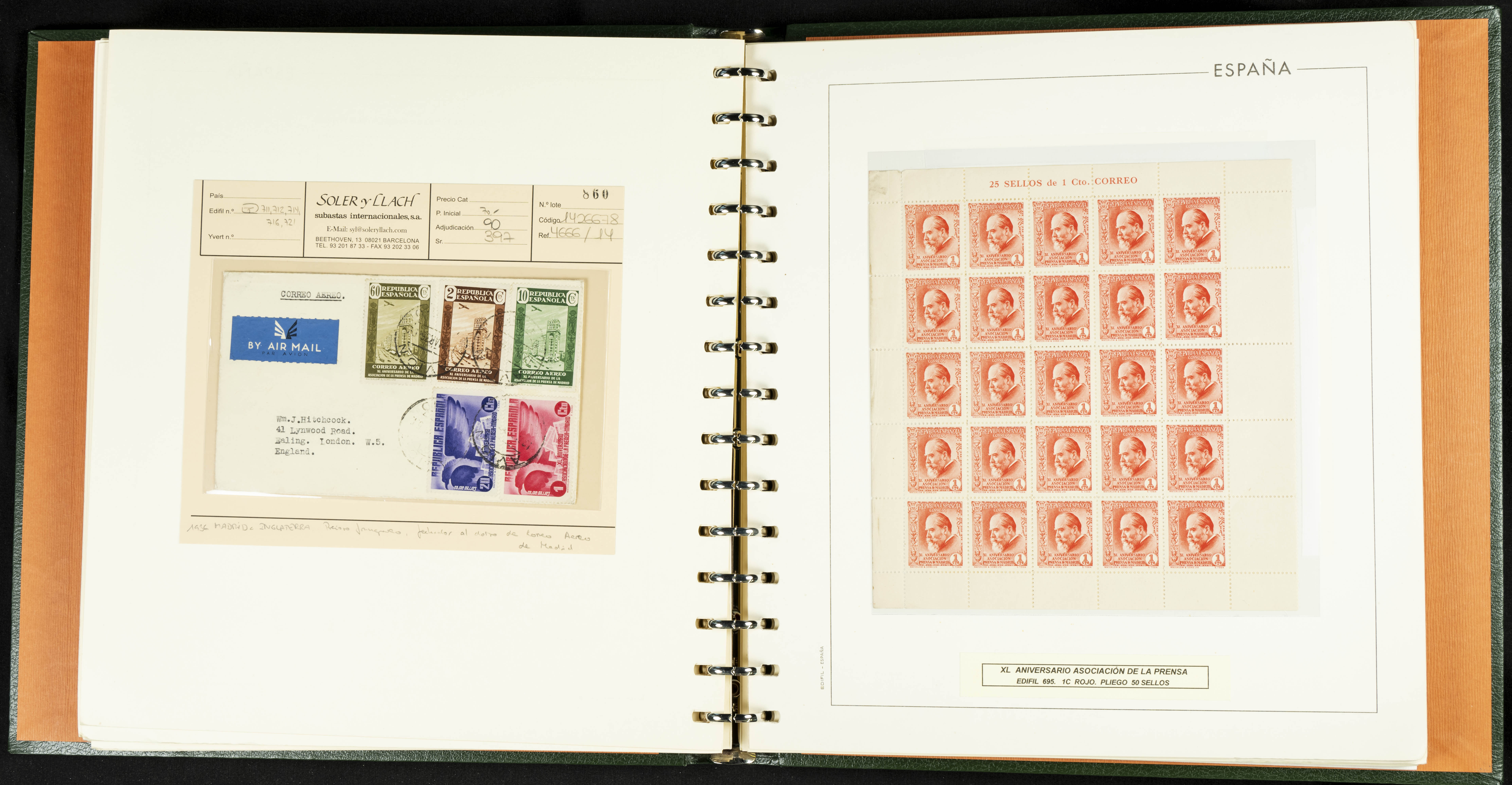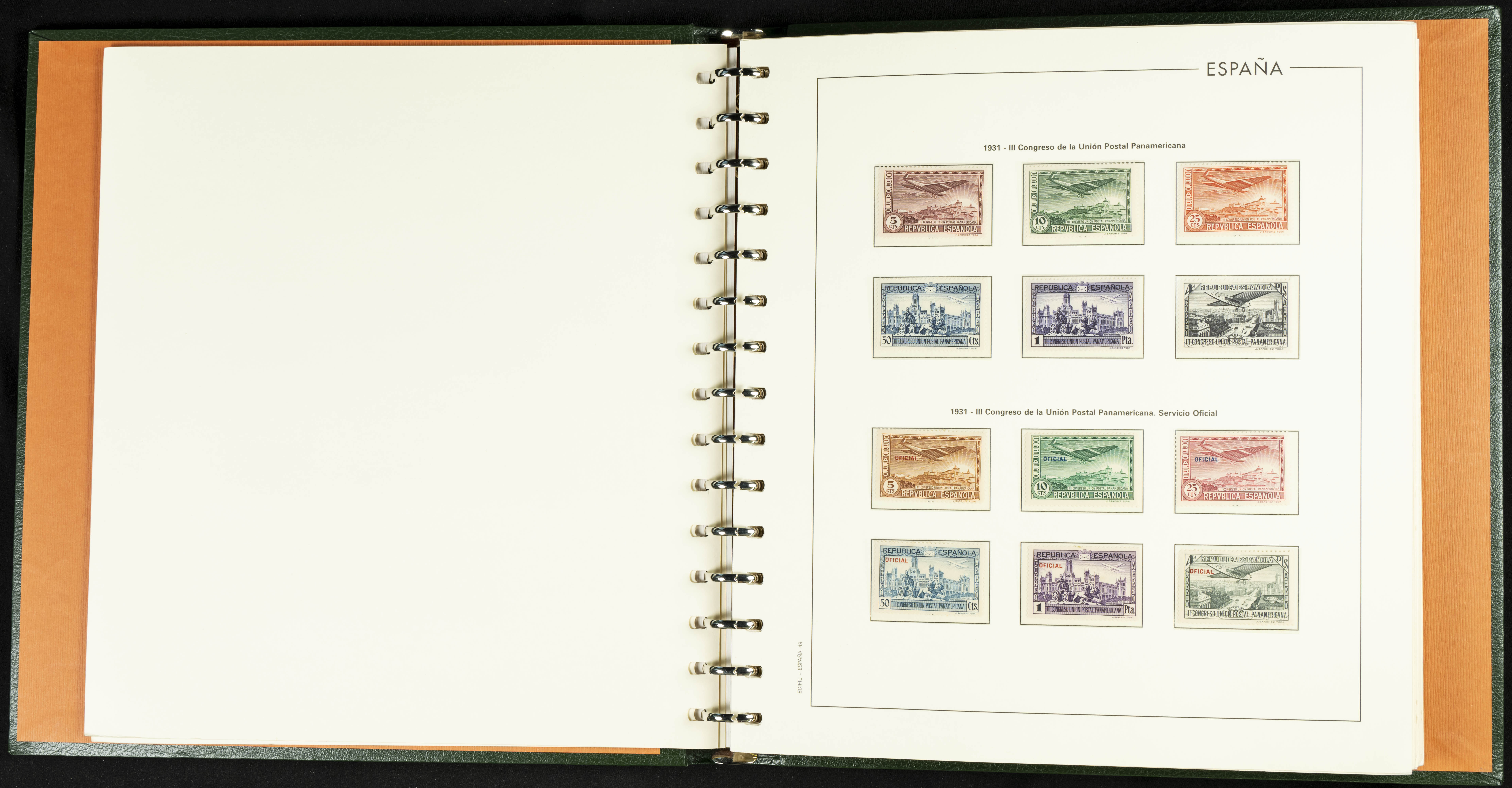 ★(1931ca). Interesante colección de República Española entre 1931 y 1939, en nuevo e incluyendo numerosos pliegos completos y grandes bloques, variedades sin dentar o dentado desplazado, cartas y algunos sellos no emitidos, destacando Montserrat, ExpoMadrid, hoja bloque Constitución USA Aéreo+5 pts, Submarino (aéreo y hoja bloque), Milicias, etc. ALTISIMO VALOR DE CATALOGO. IMPRESCINDIBLE EXAMINAR.