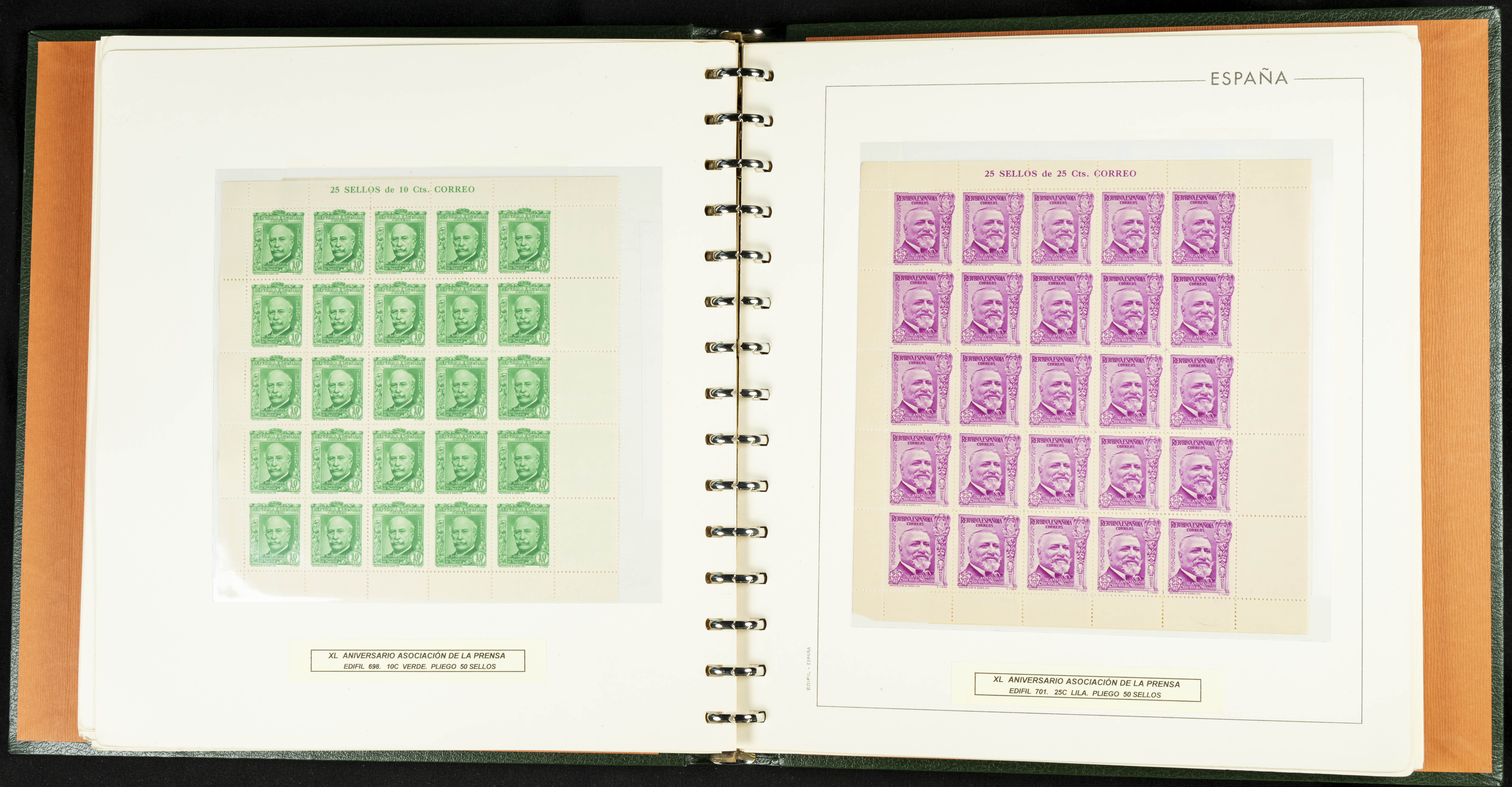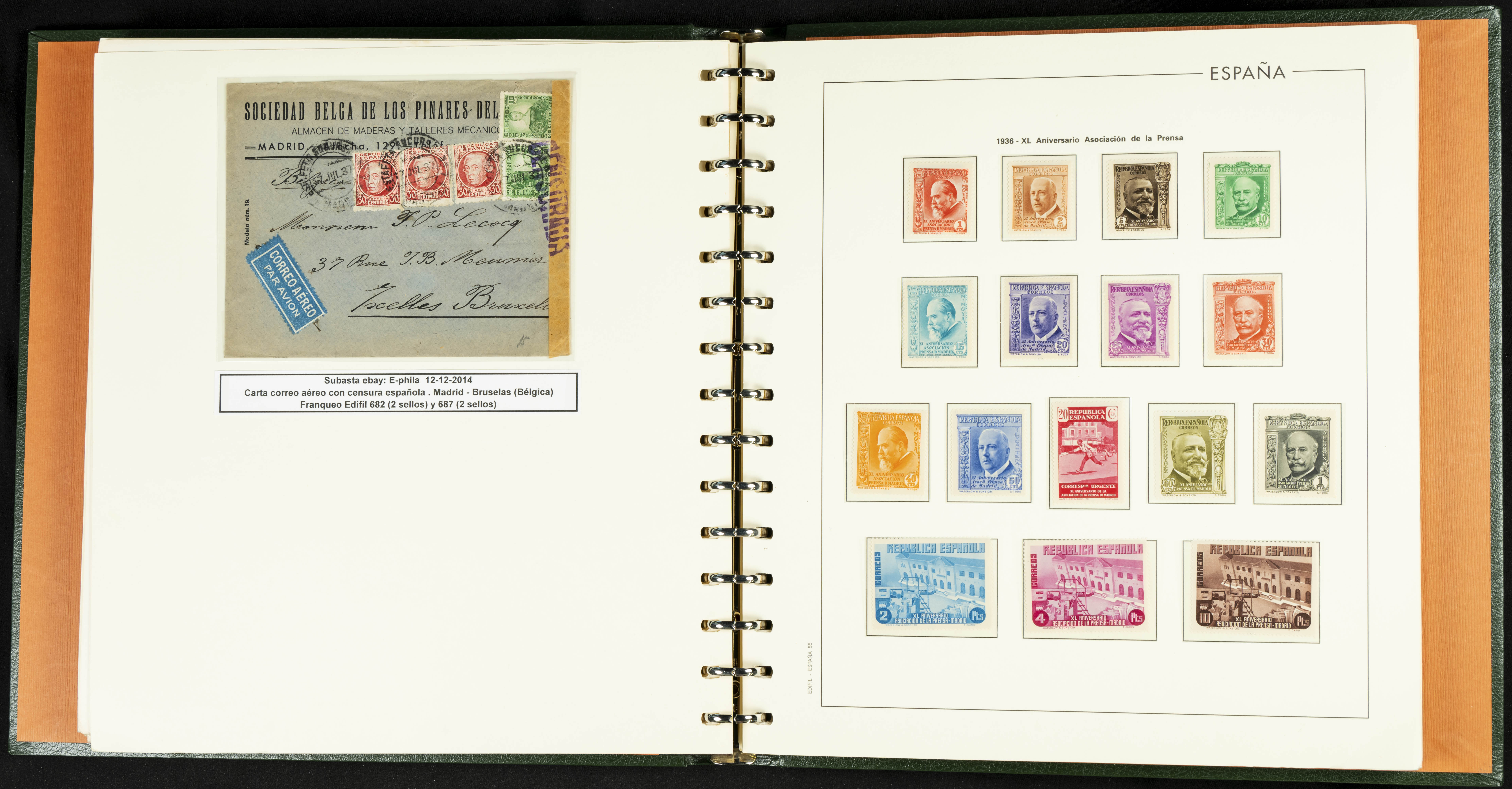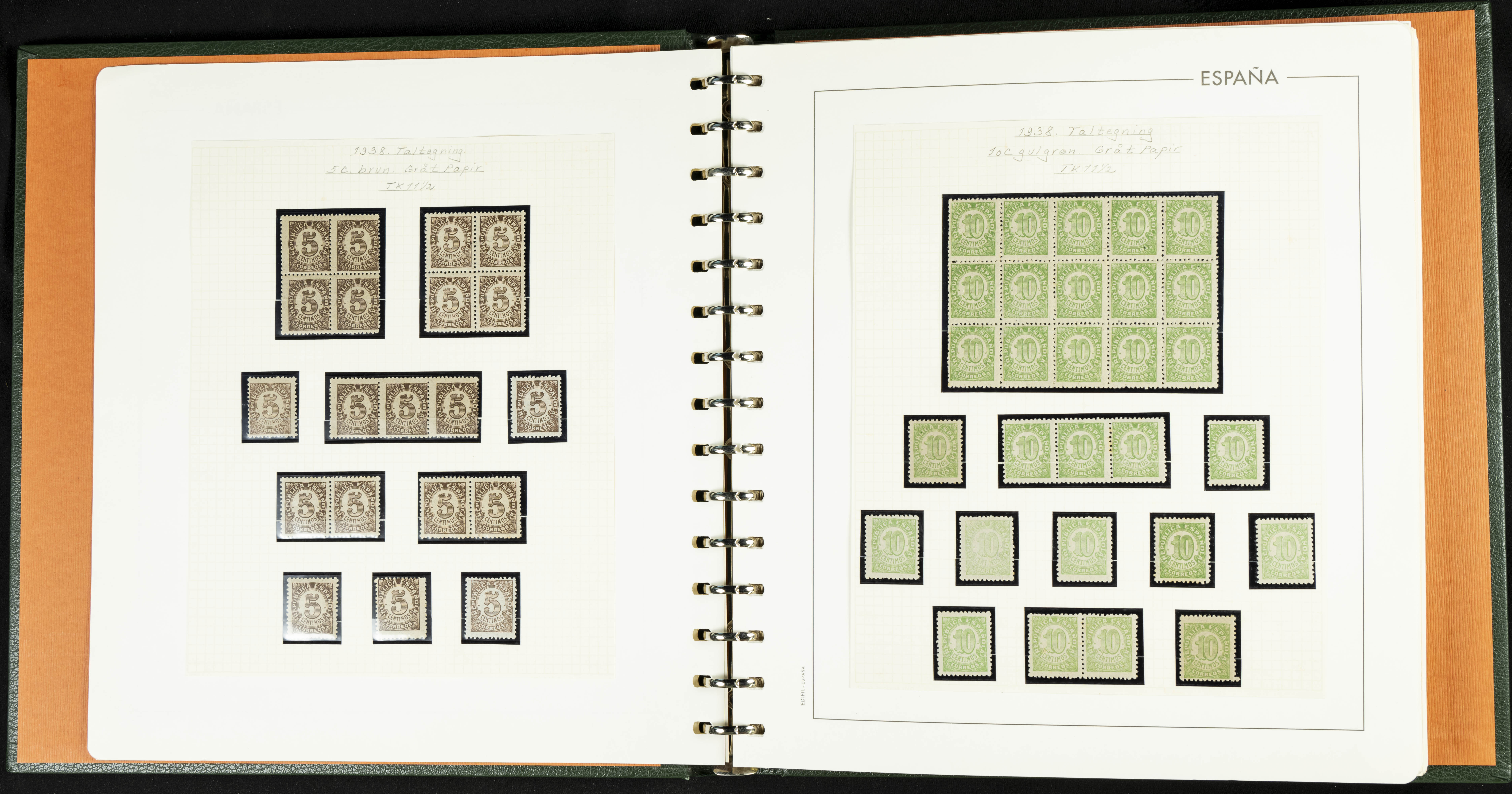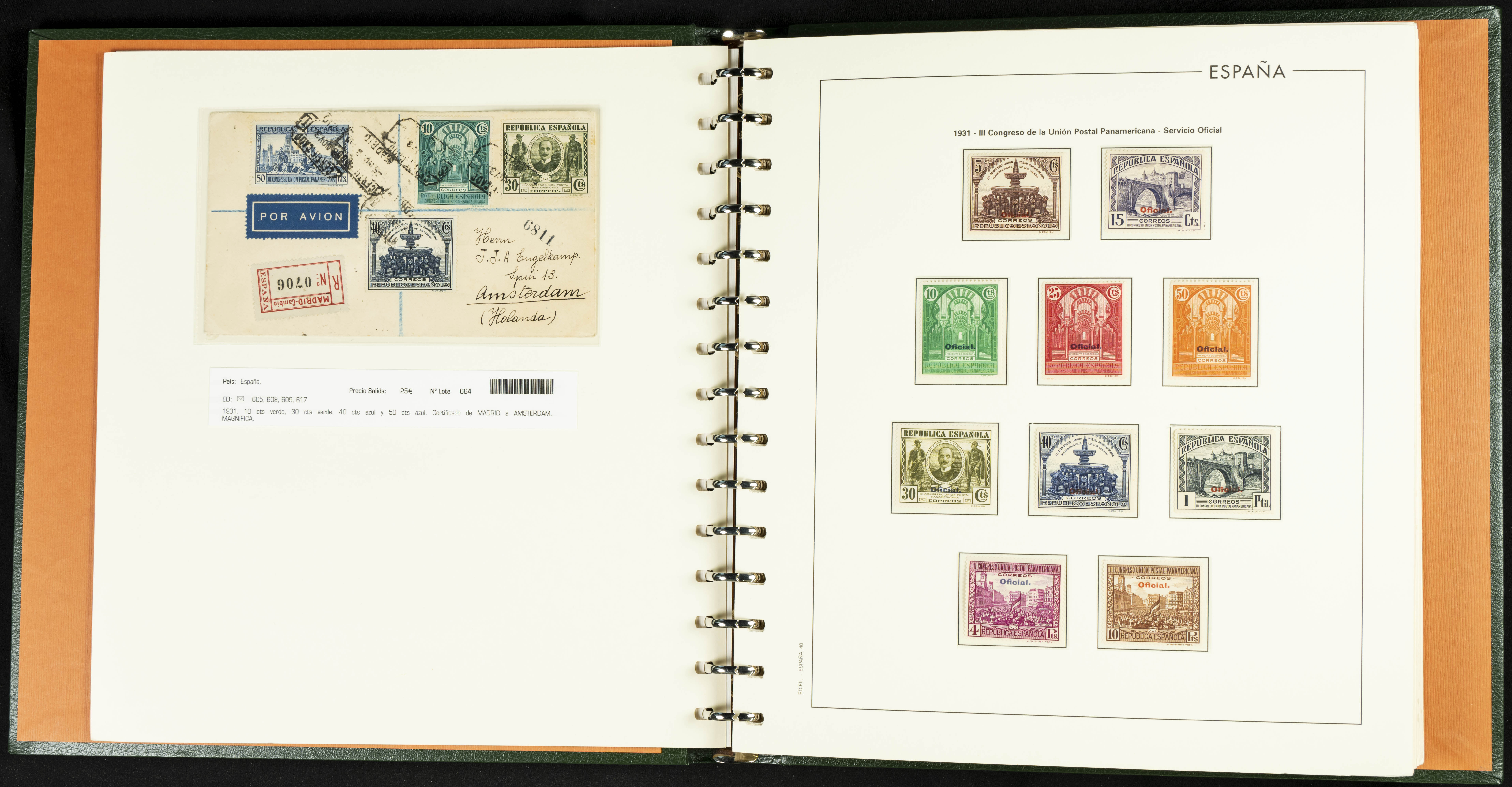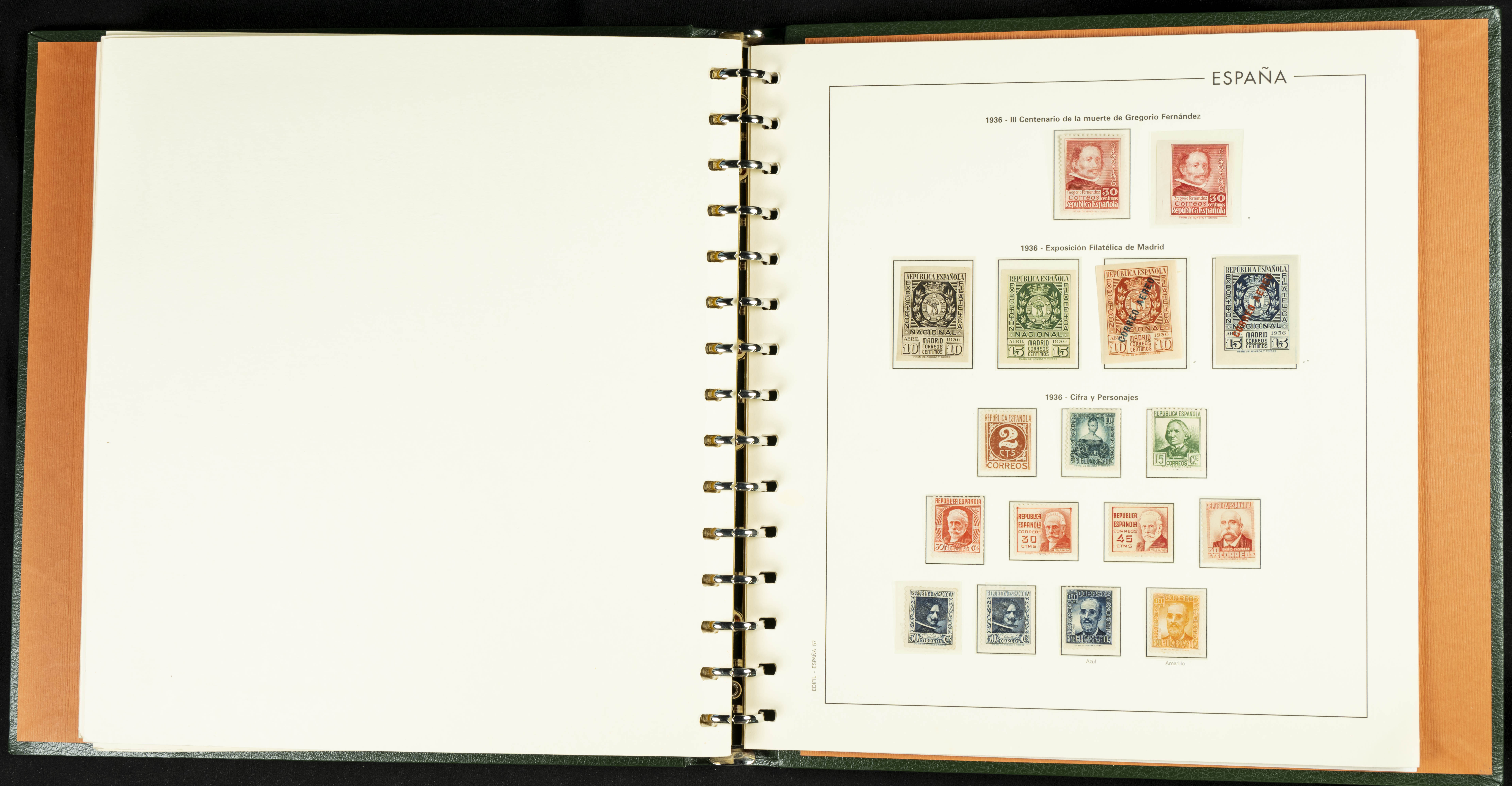 ★(1931ca). Interesante colección de República Española entre 1931 y 1939, en nuevo e incluyendo numerosos pliegos completos y grandes bloques, variedades sin dentar o dentado desplazado, cartas y algunos sellos no emitidos, destacando Montserrat, ExpoMadrid, hoja bloque Constitución USA Aéreo+5 pts, Submarino (aéreo y hoja bloque), Milicias, etc. ALTISIMO VALOR DE CATALOGO. IMPRESCINDIBLE EXAMINAR.