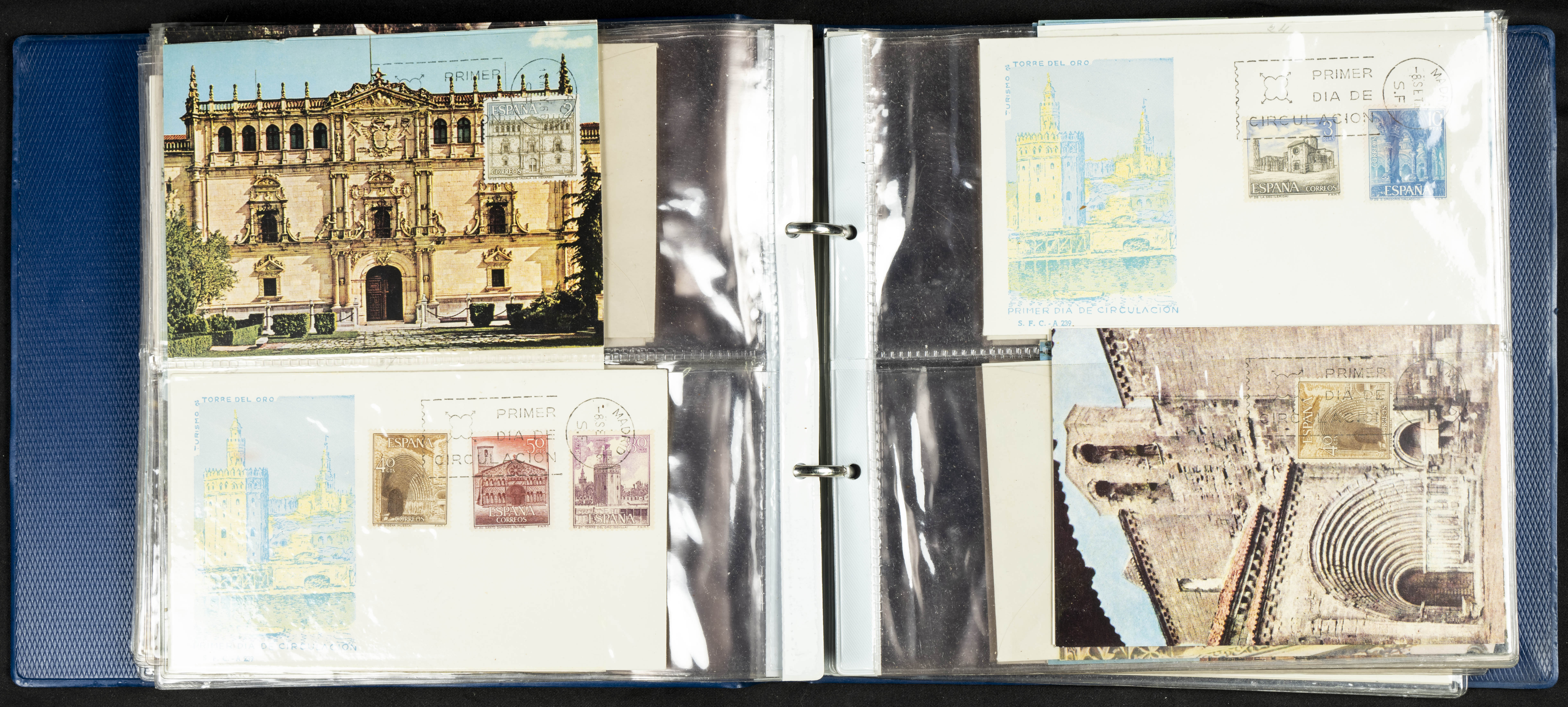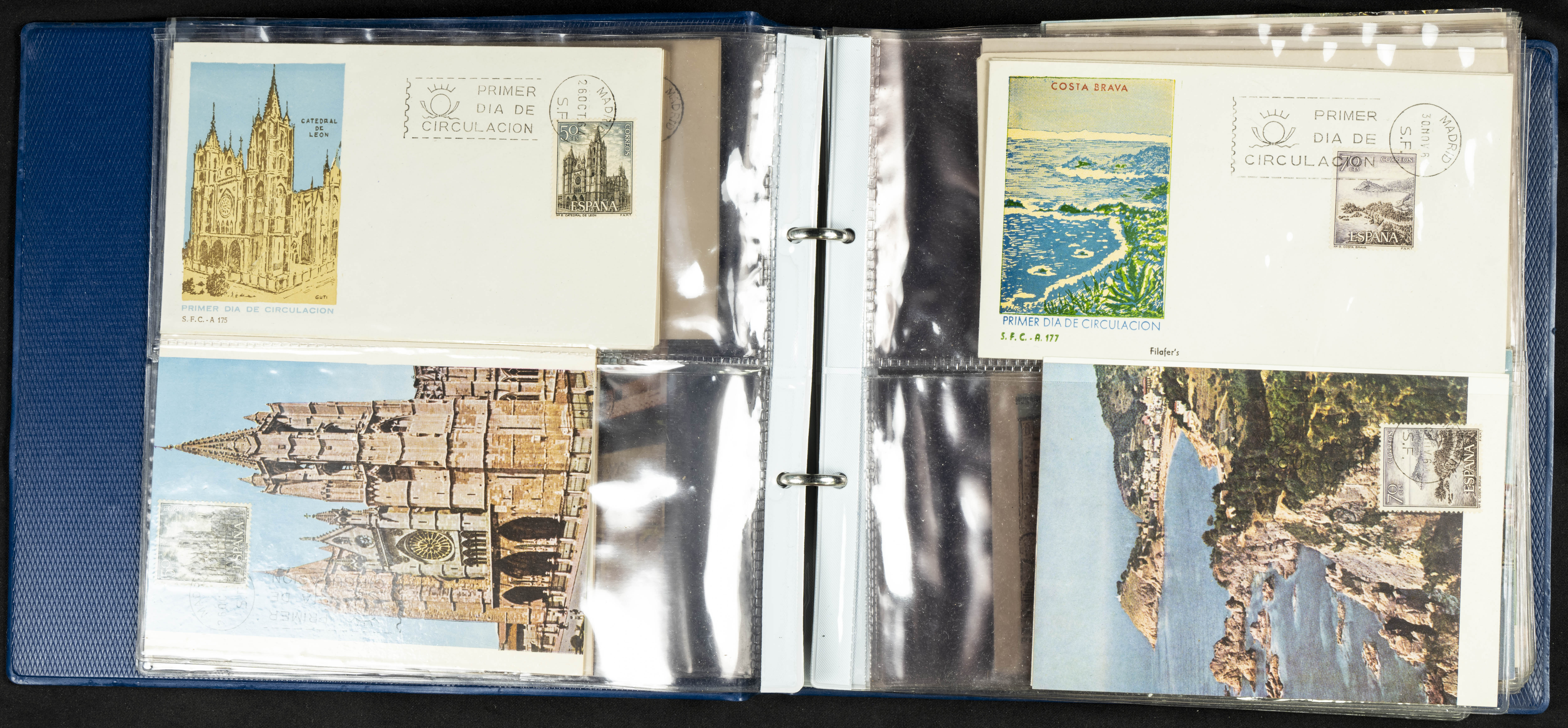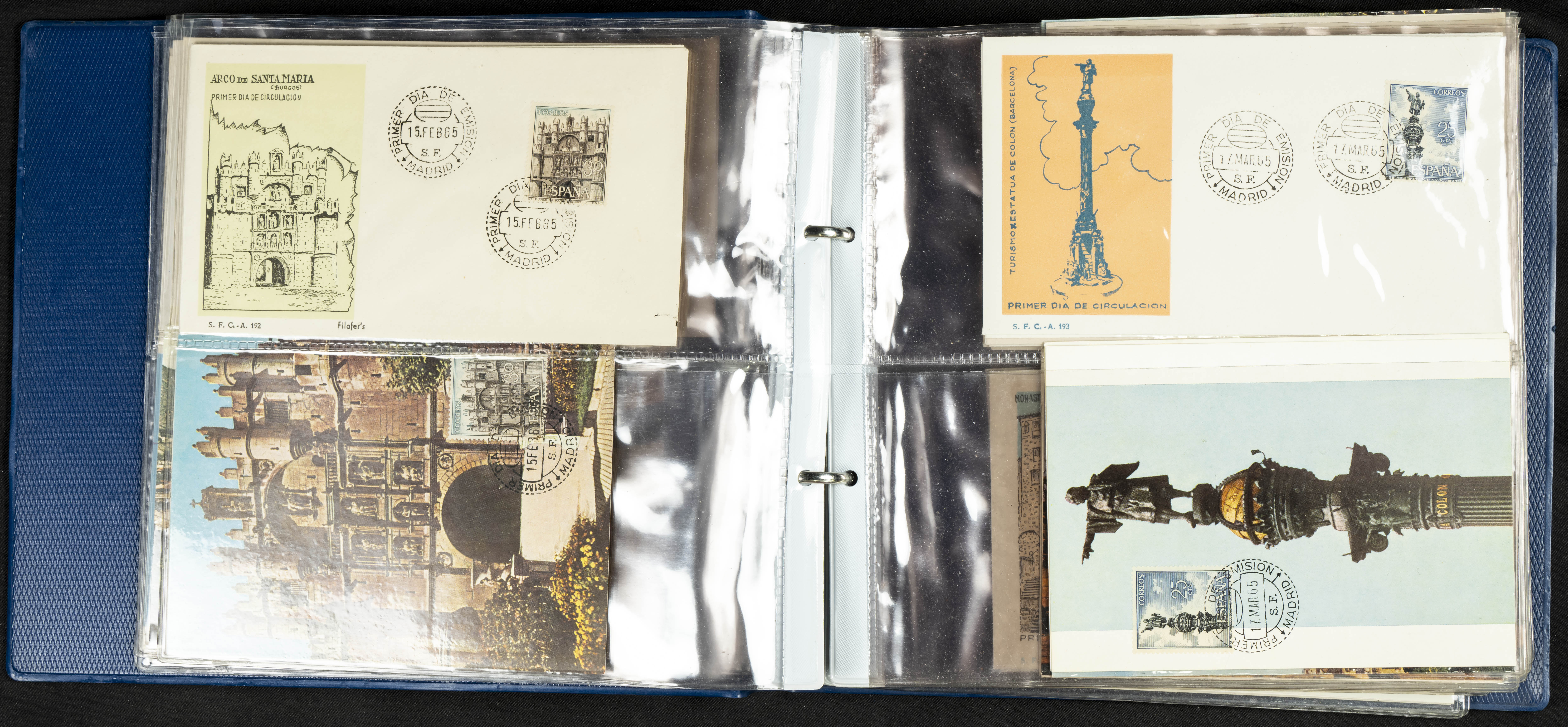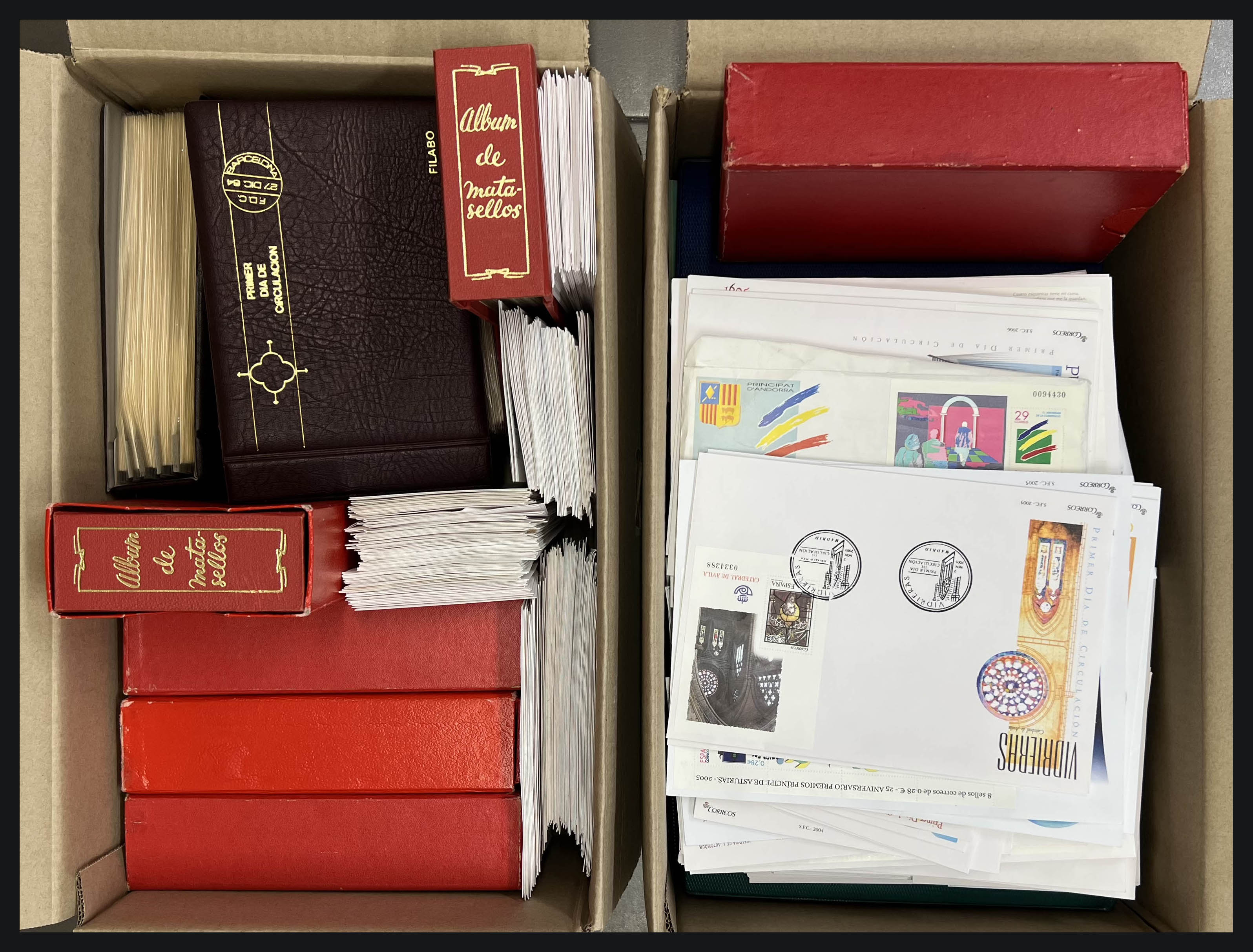 (1948ca). Conjunto de cientos de Sobres de Primer Día entre 1948 y 2008, incluye Andorra, Tarjetas Entero Postales modernas (nuevas y usadas) y alguna Tarjeta Postal. A EXAMINAR.