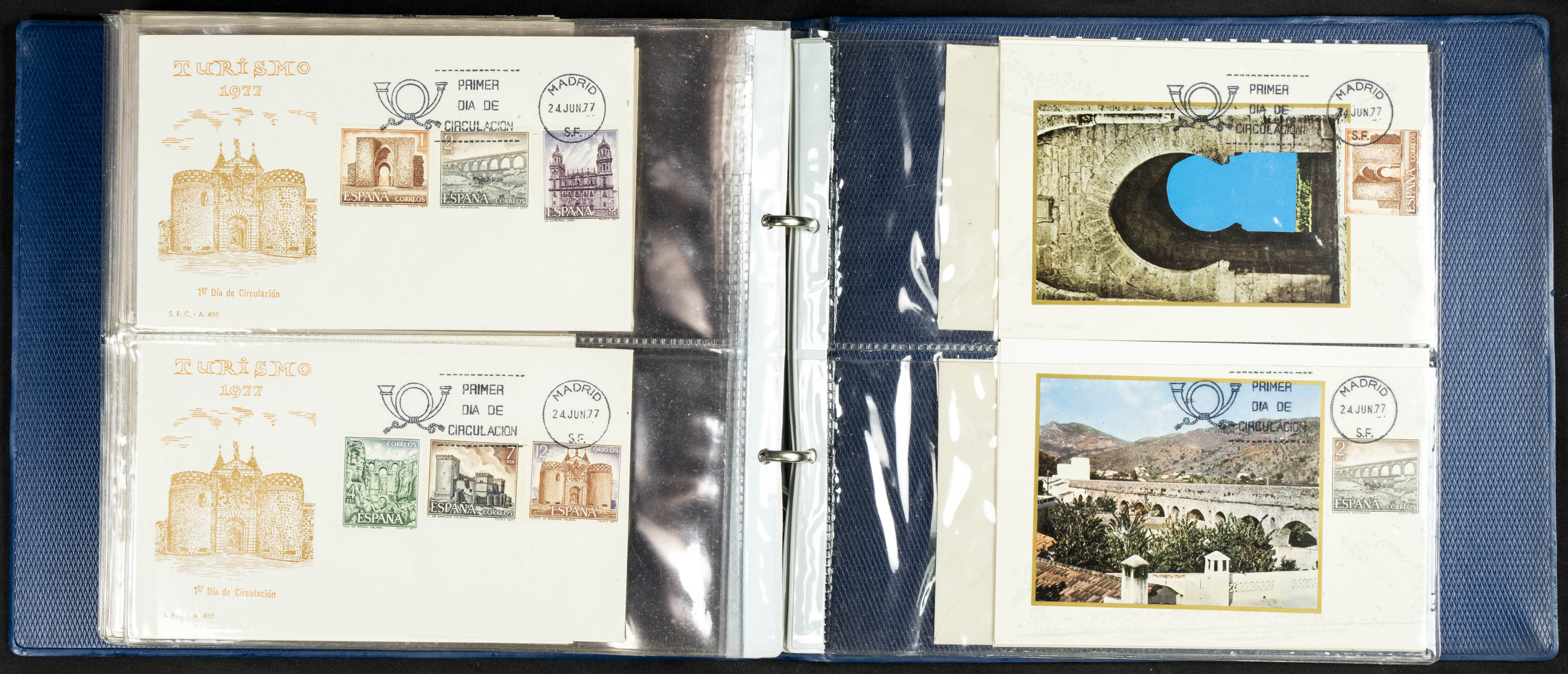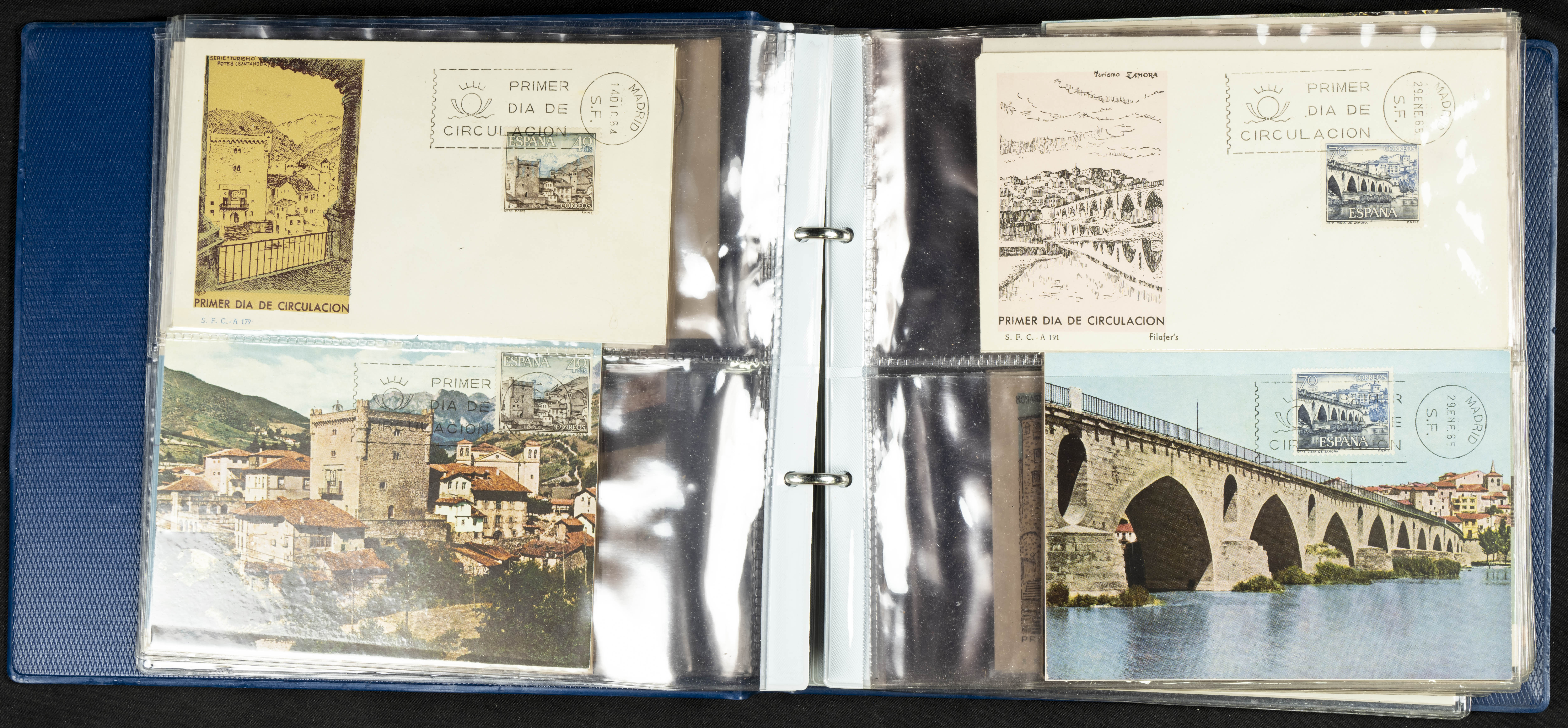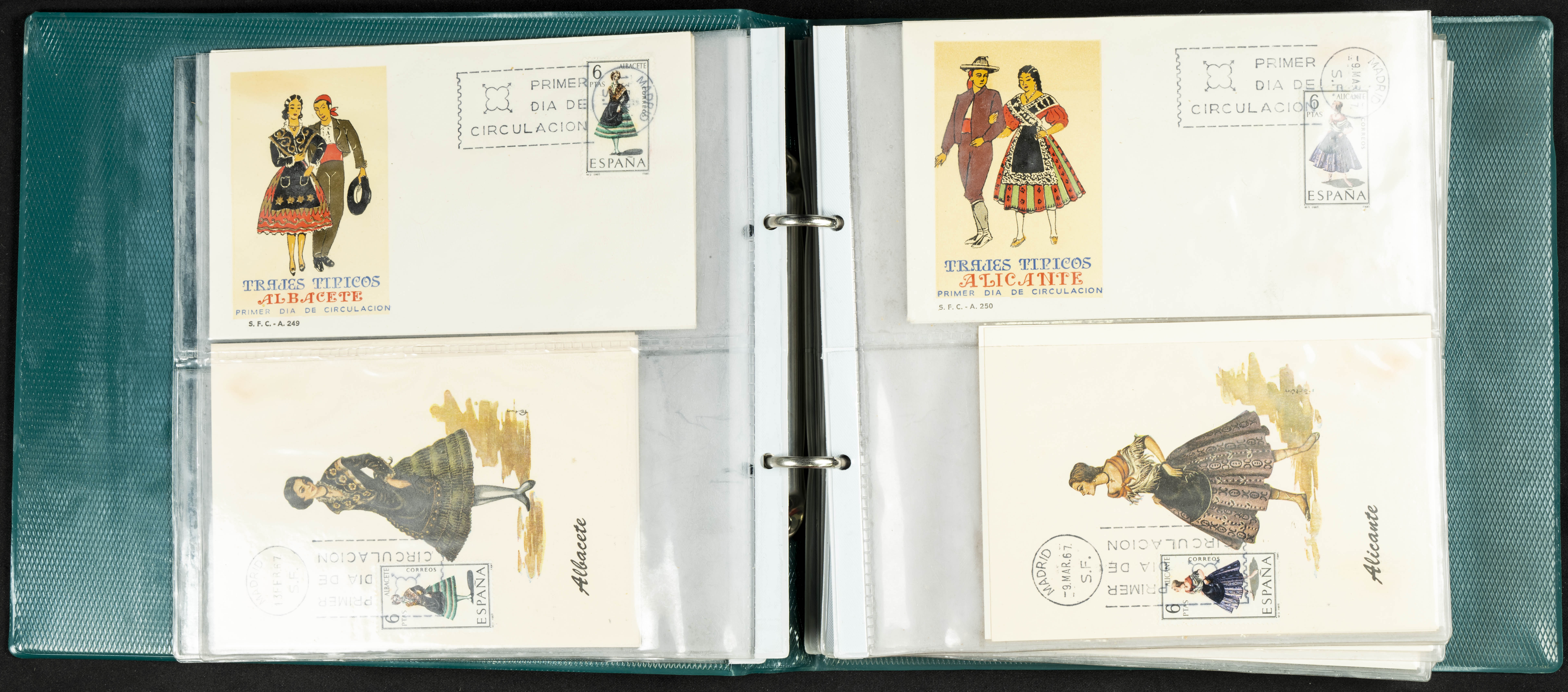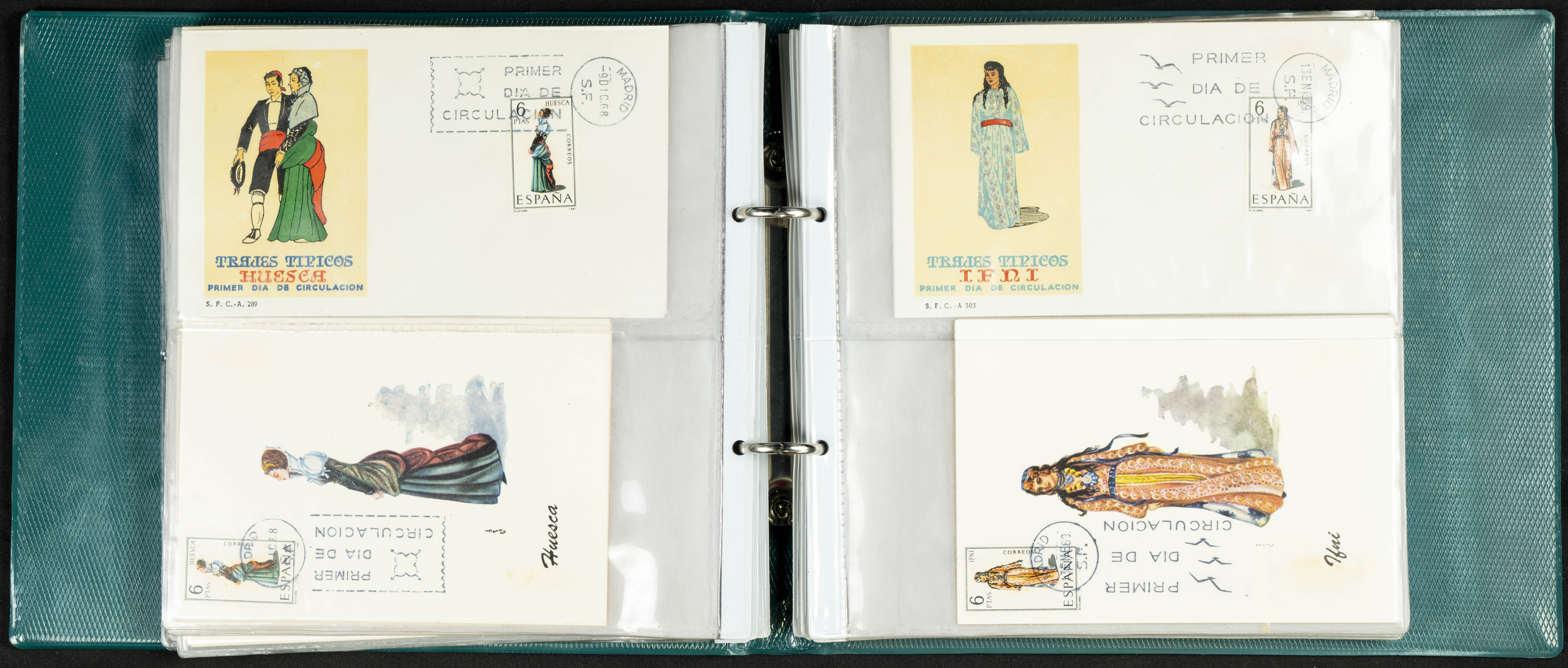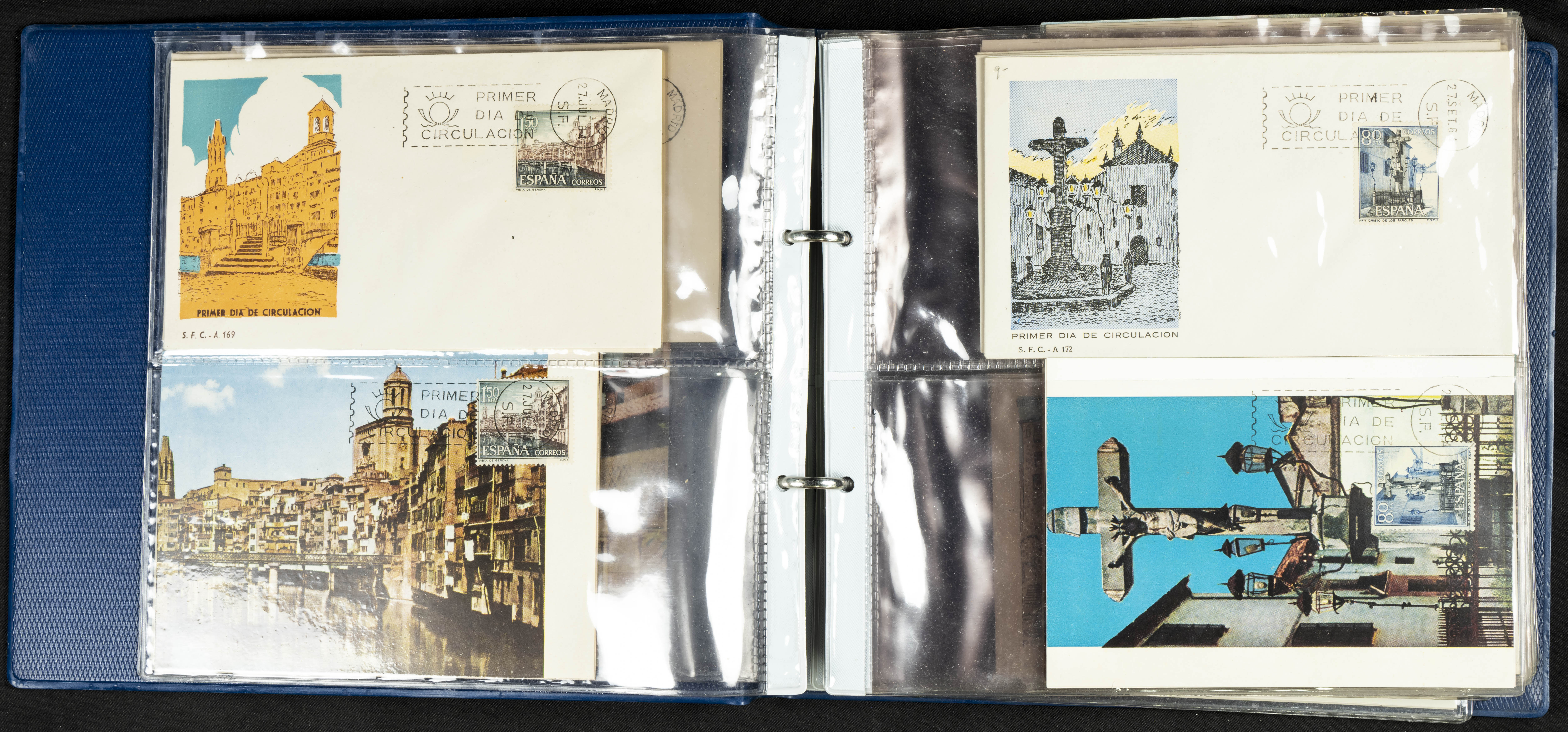 (1948ca). Conjunto de cientos de Sobres de Primer Día entre 1948 y 2008, incluye Andorra, Tarjetas Entero Postales modernas (nuevas y usadas) y alguna Tarjeta Postal. A EXAMINAR.