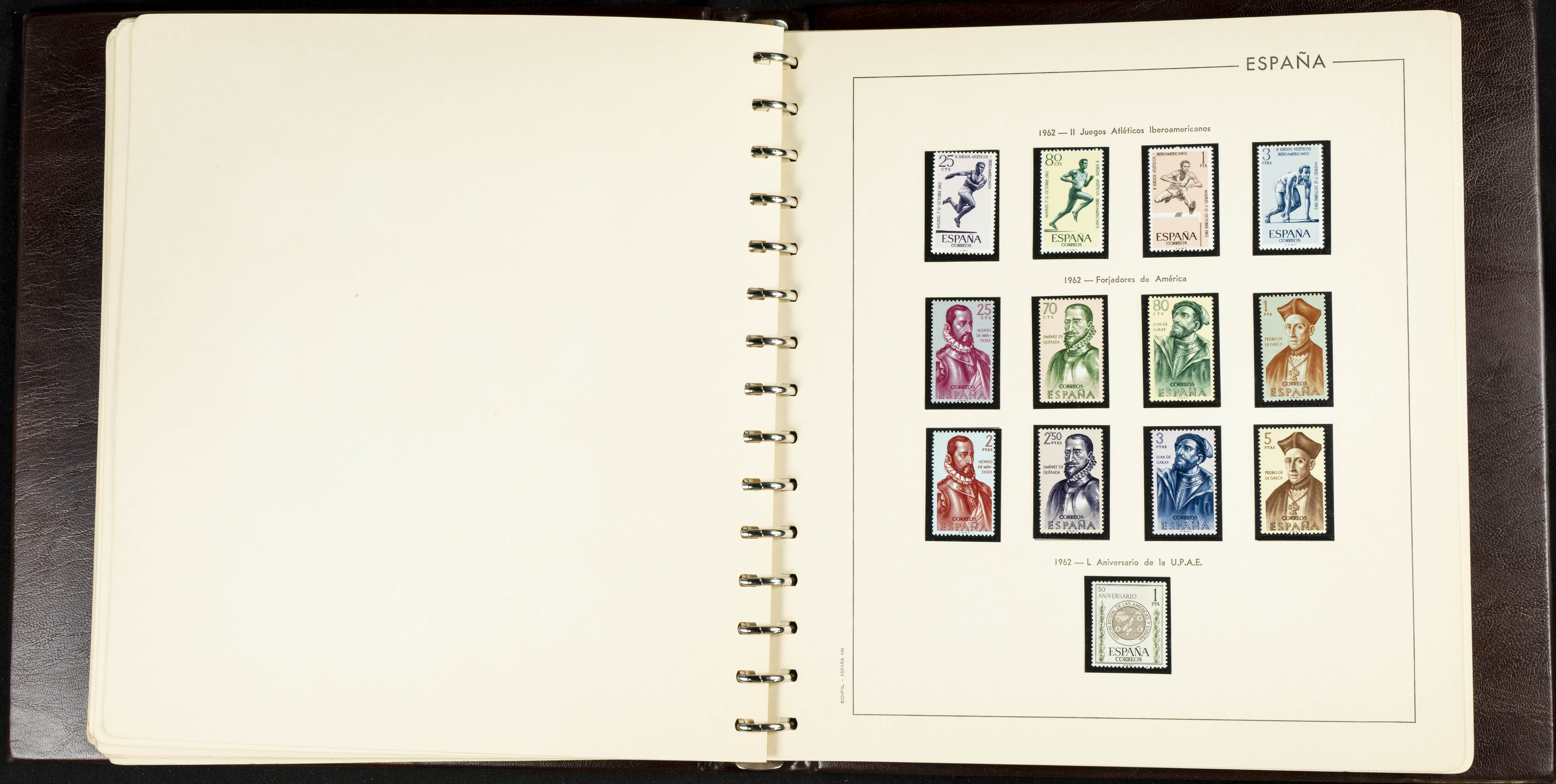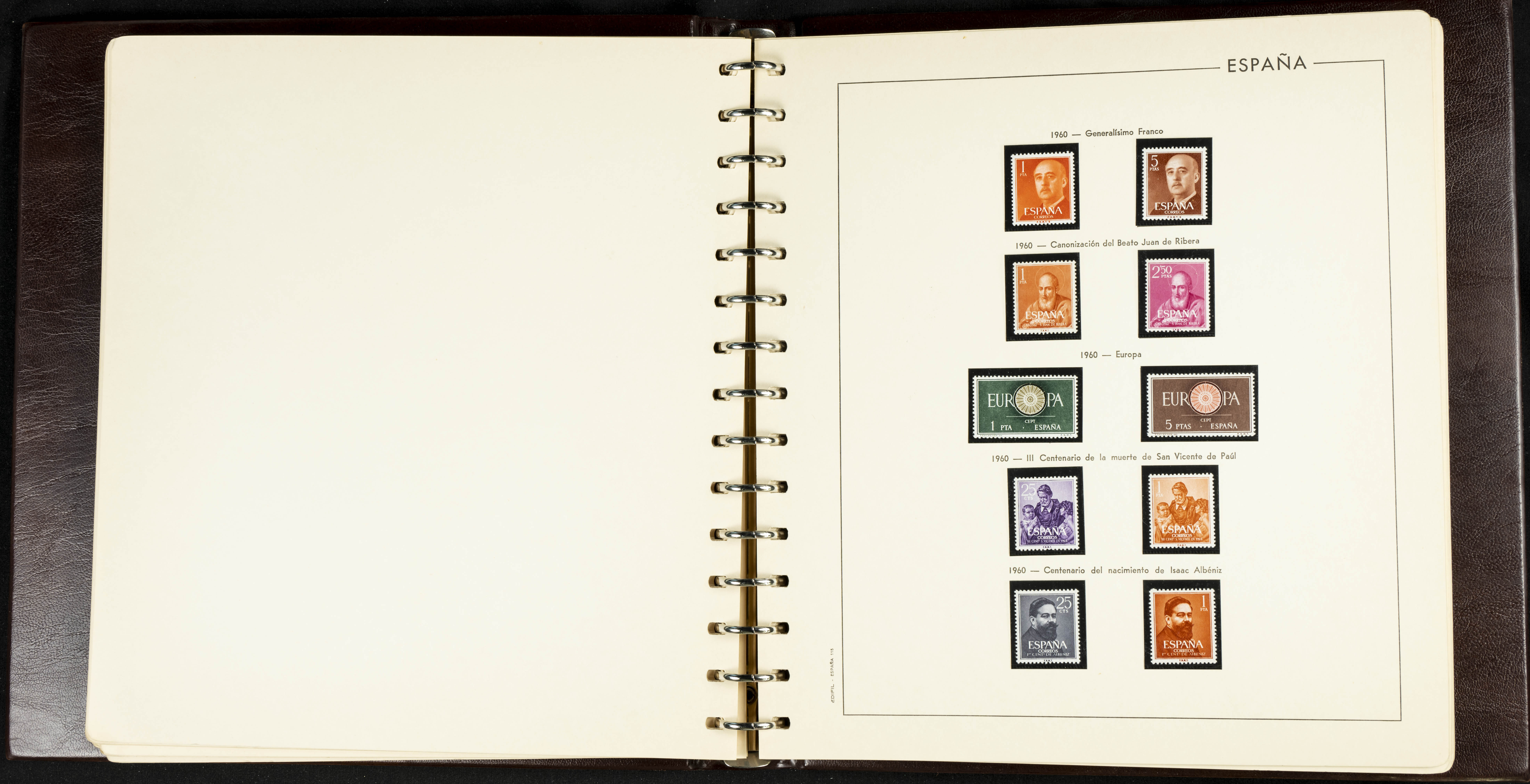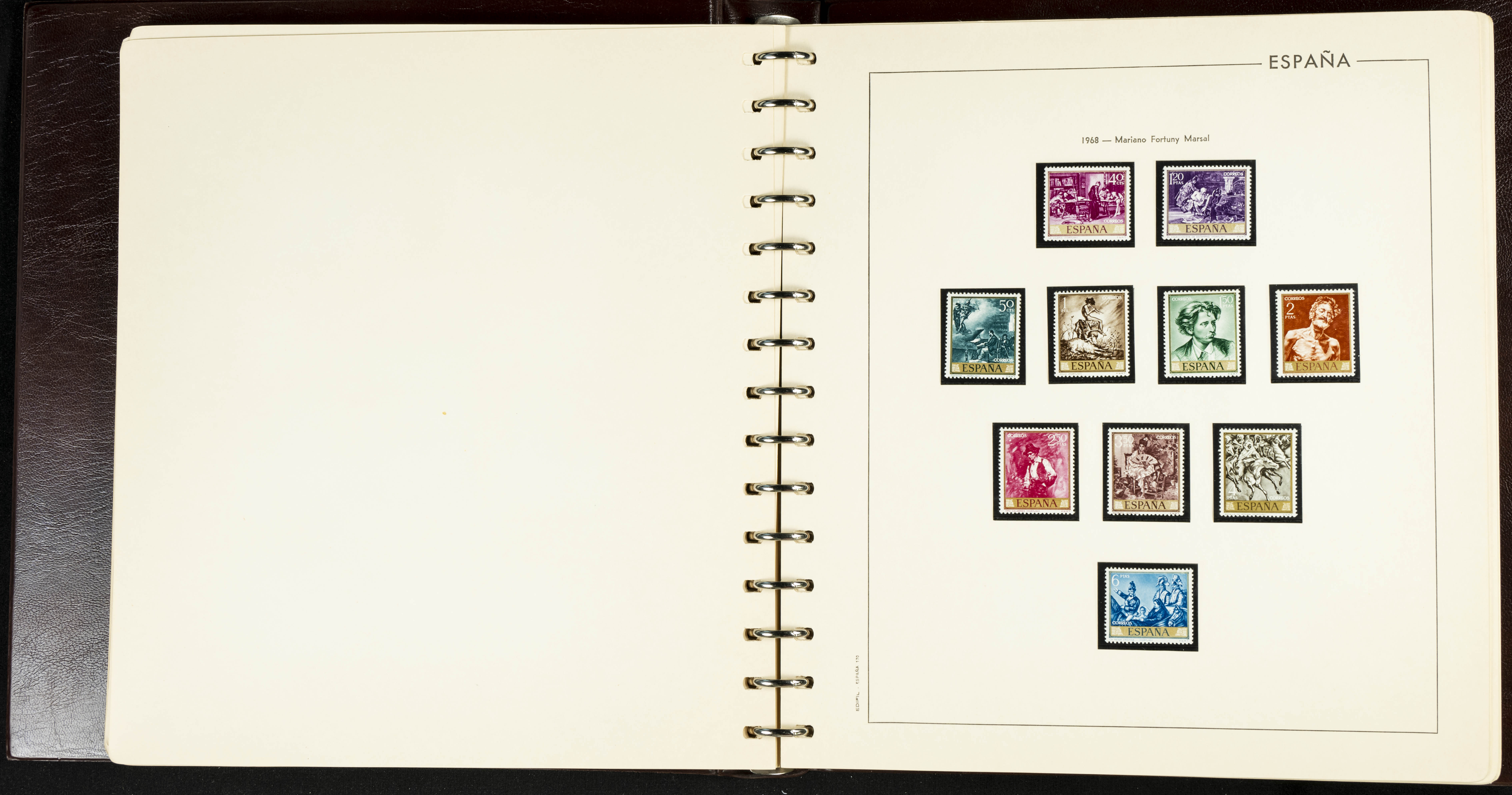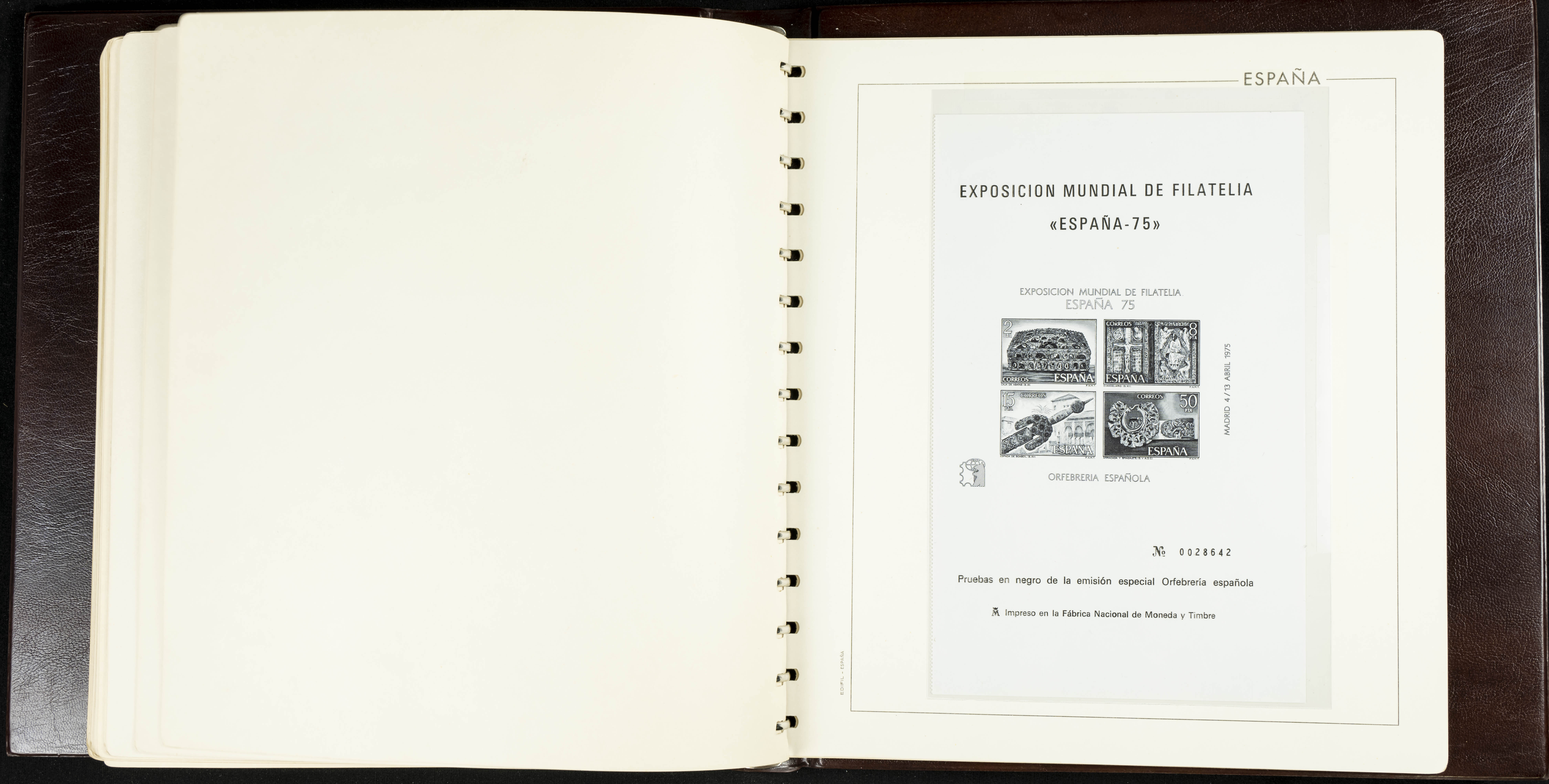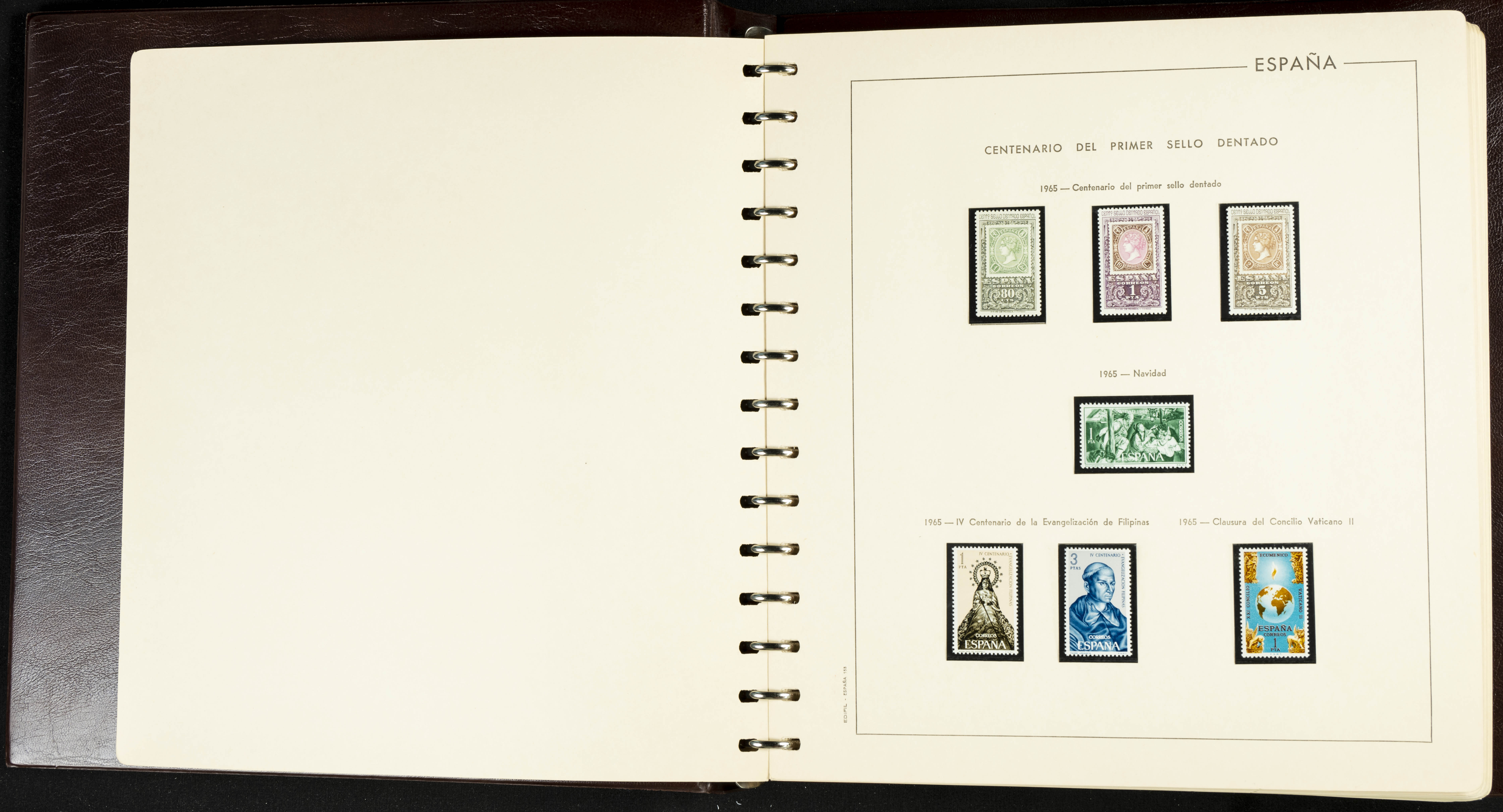★★(1950ca). Colección completa entre 1950 y 1975, en nuevo y sin fijasellos a falta de los Caudillos a Canarias con y sin número e incluyendo la 1ª y 2ª Tirada terrestres, Centenario, "Legazpi y Sorolla" (duplicado en usado) y juegos completos de Trajes y Escudos en bloques de cuatro. ALTO VALOR DE CATALOGO. A EXAMINAR.