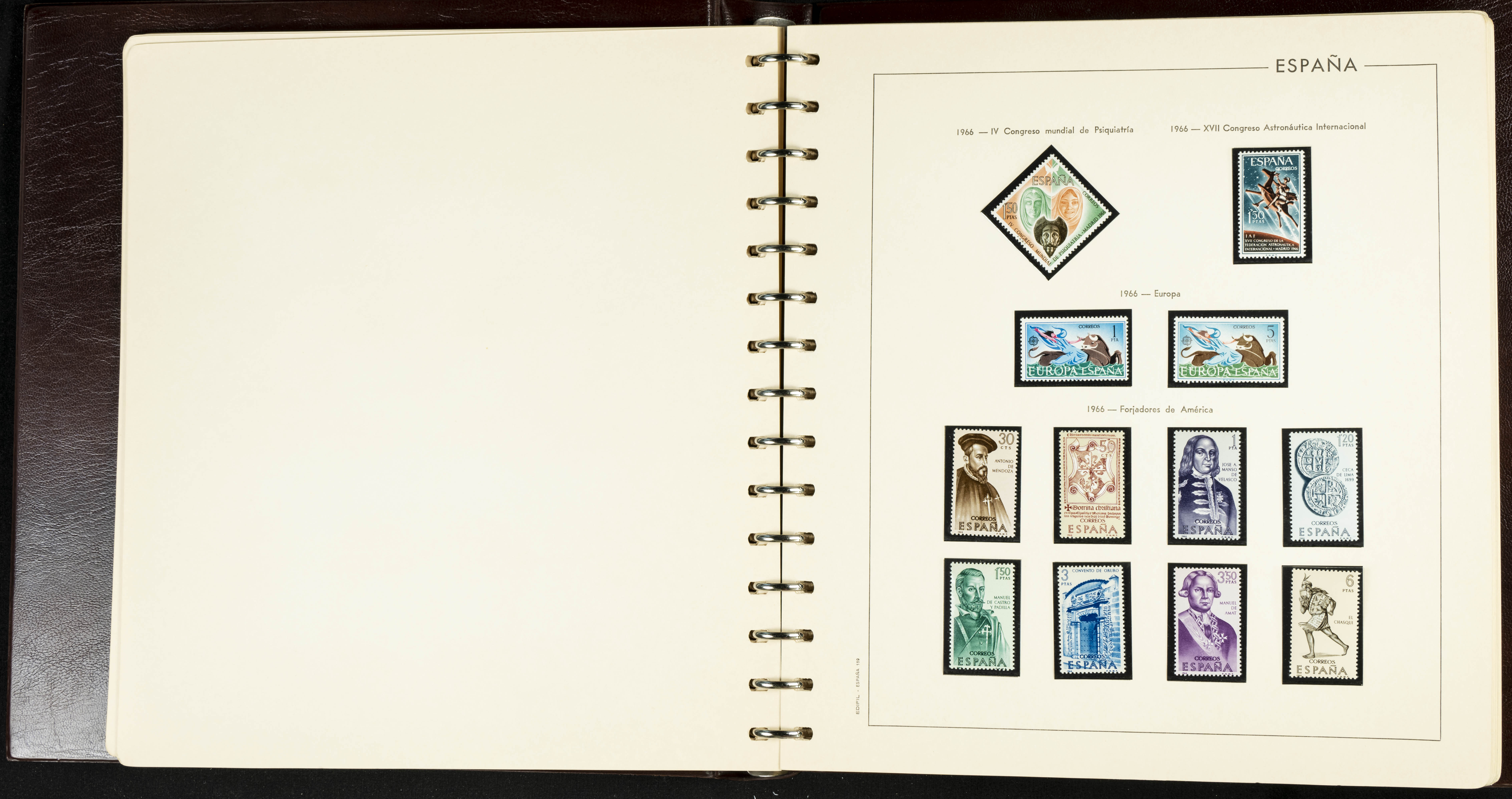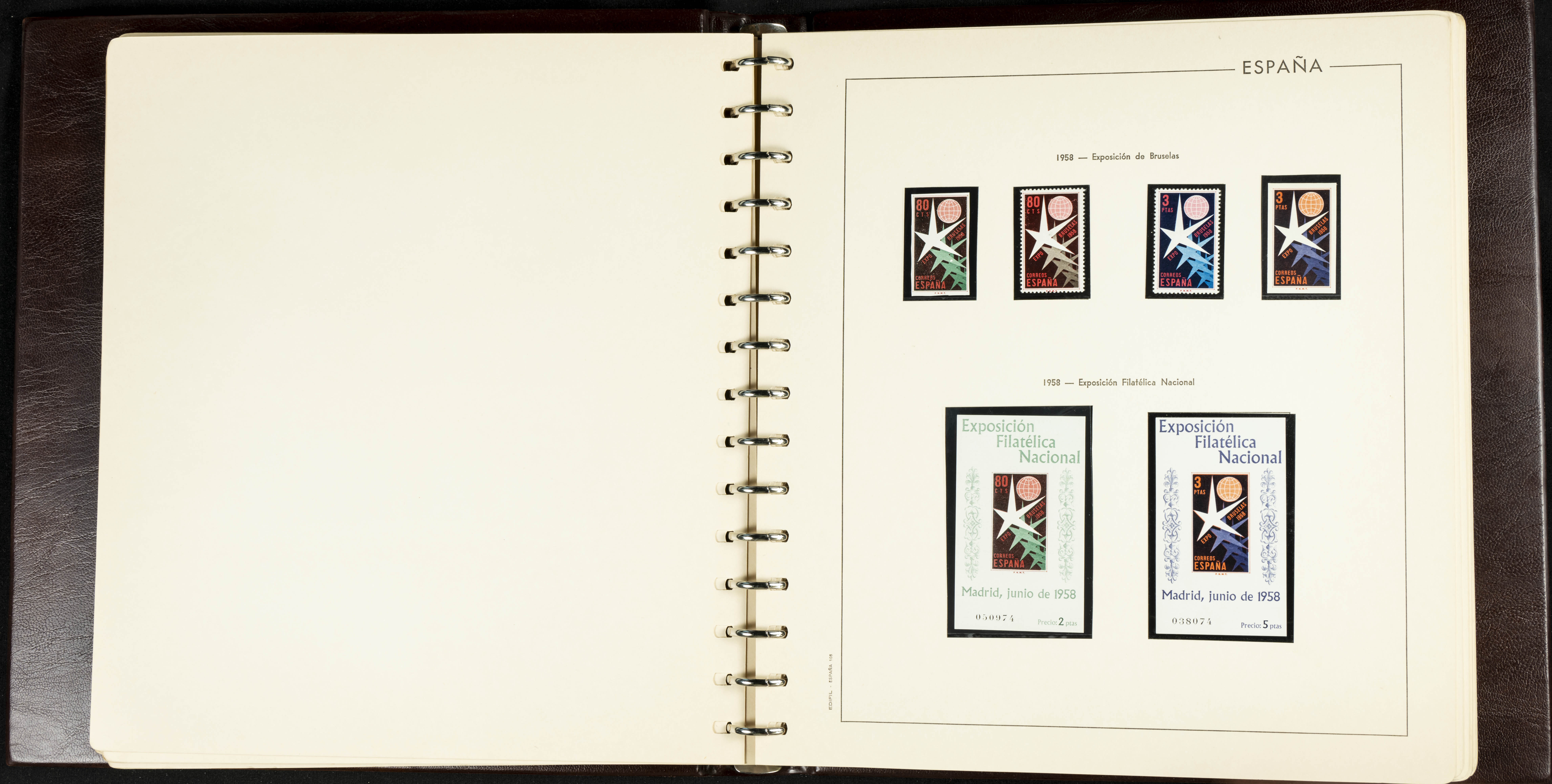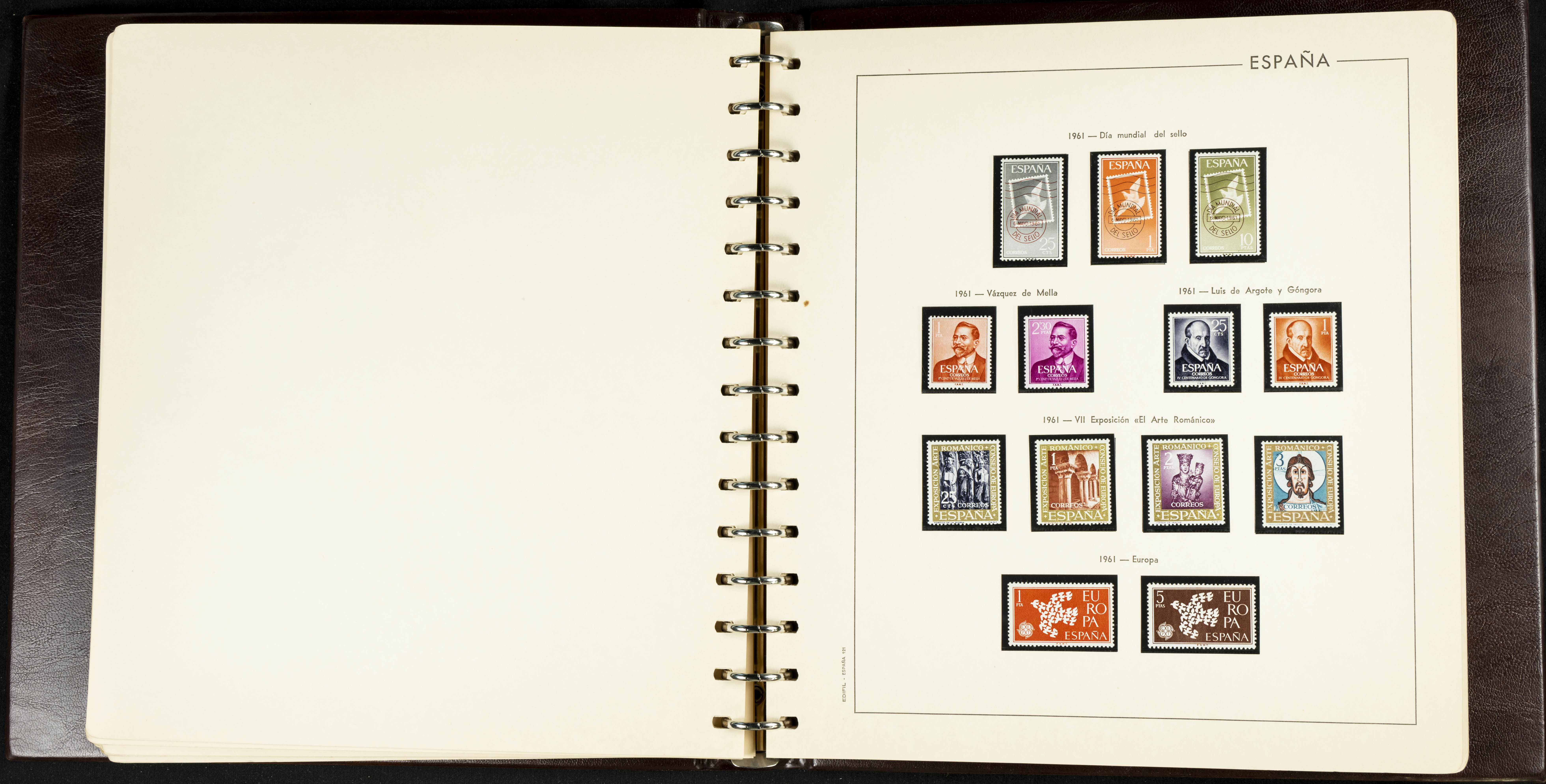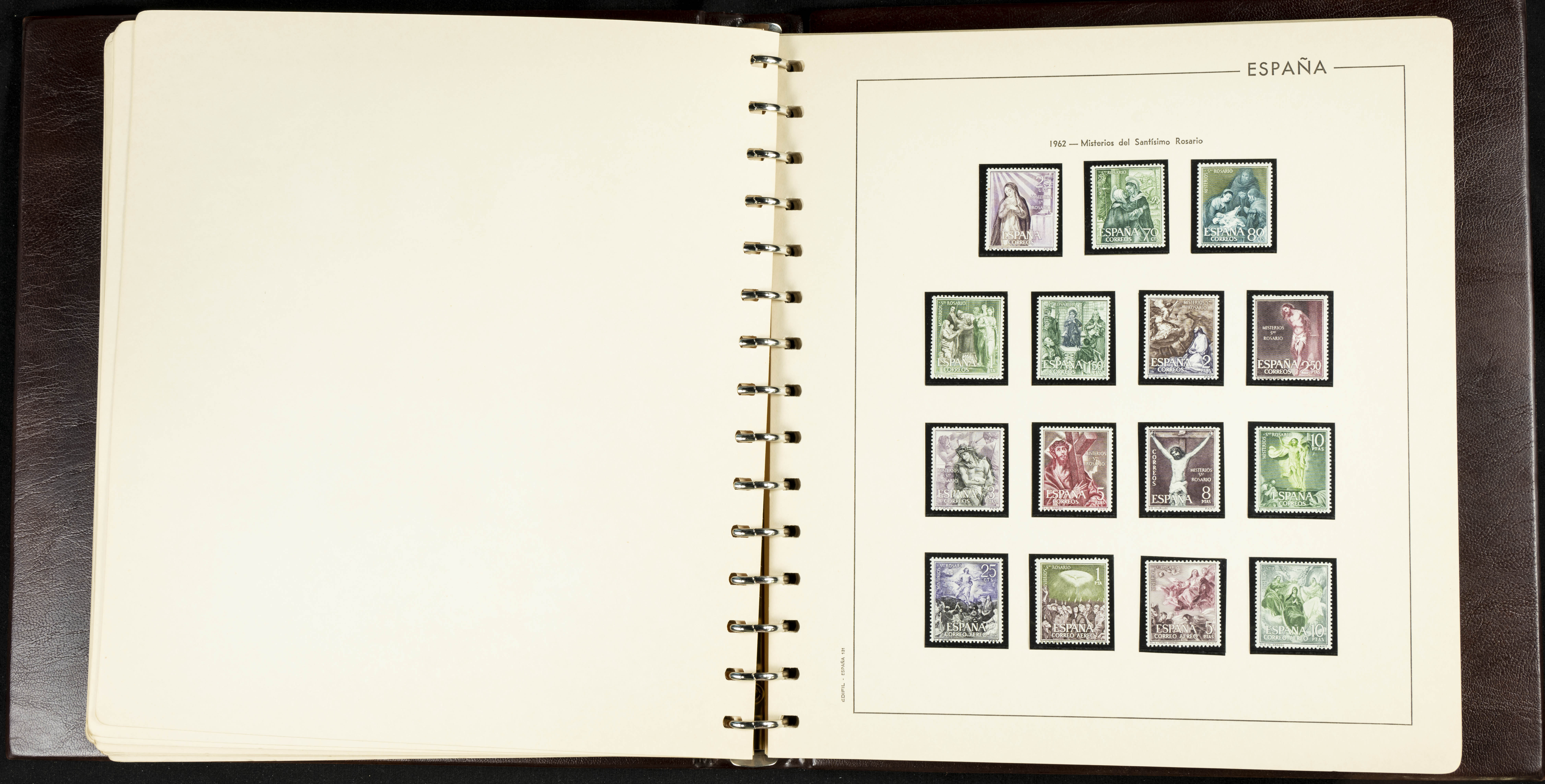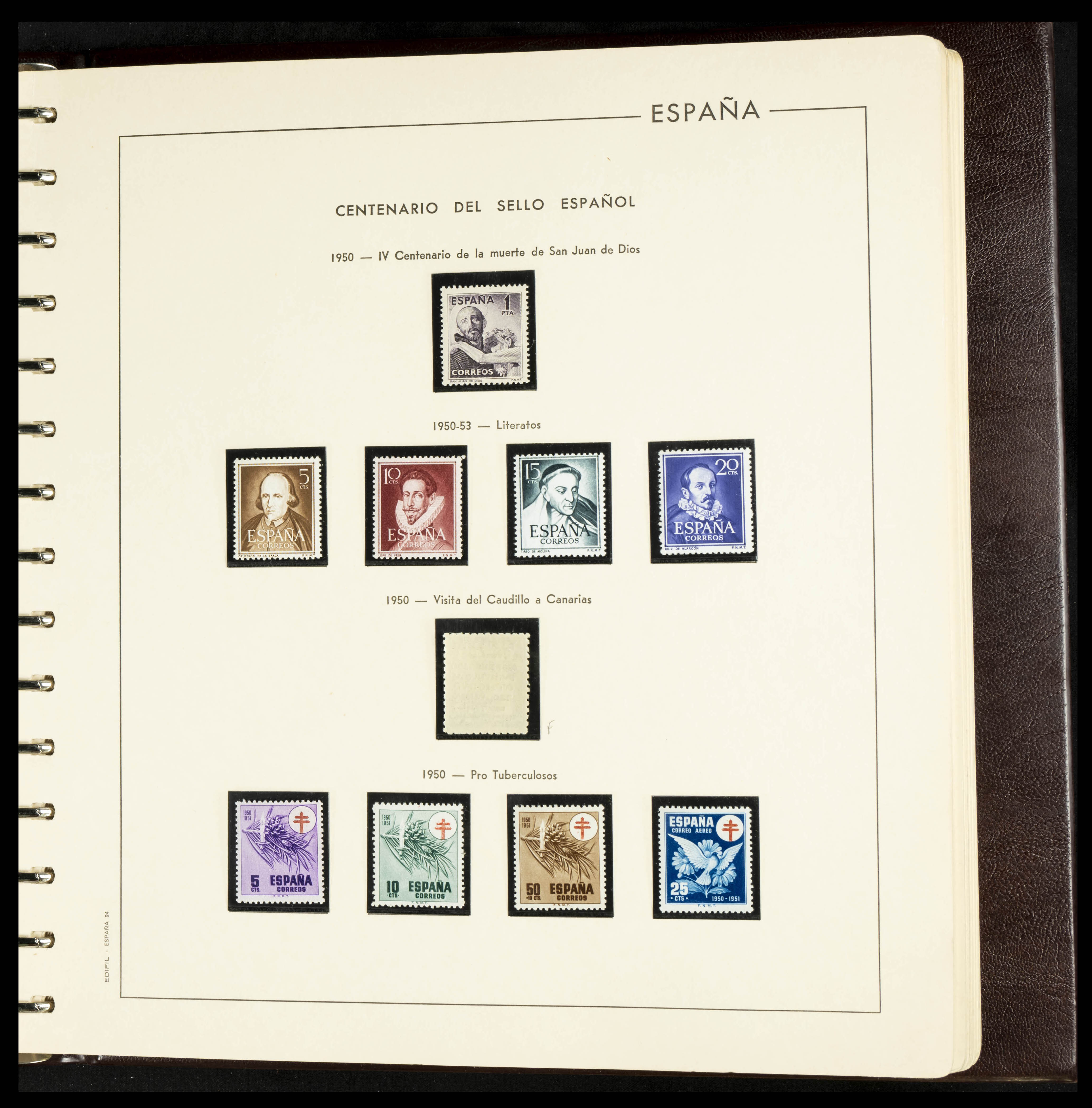 ★★(1950ca). Colección completa entre 1950 y 1975, en nuevo y sin fijasellos a falta de los Caudillos a Canarias con y sin número e incluyendo la 1ª y 2ª Tirada terrestres, Centenario, "Legazpi y Sorolla" (duplicado en usado) y juegos completos de Trajes y Escudos en bloques de cuatro. ALTO VALOR DE CATALOGO. A EXAMINAR.