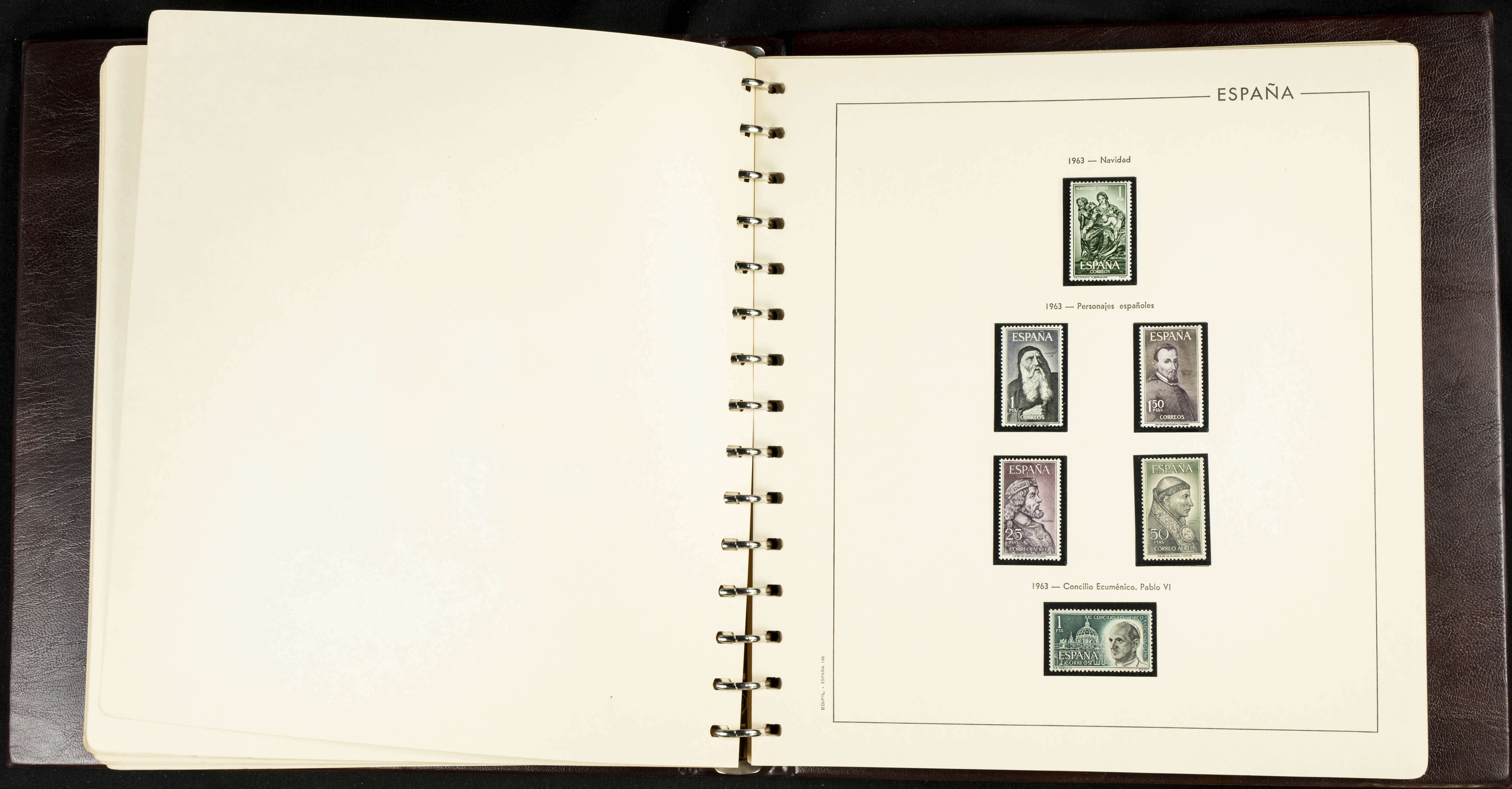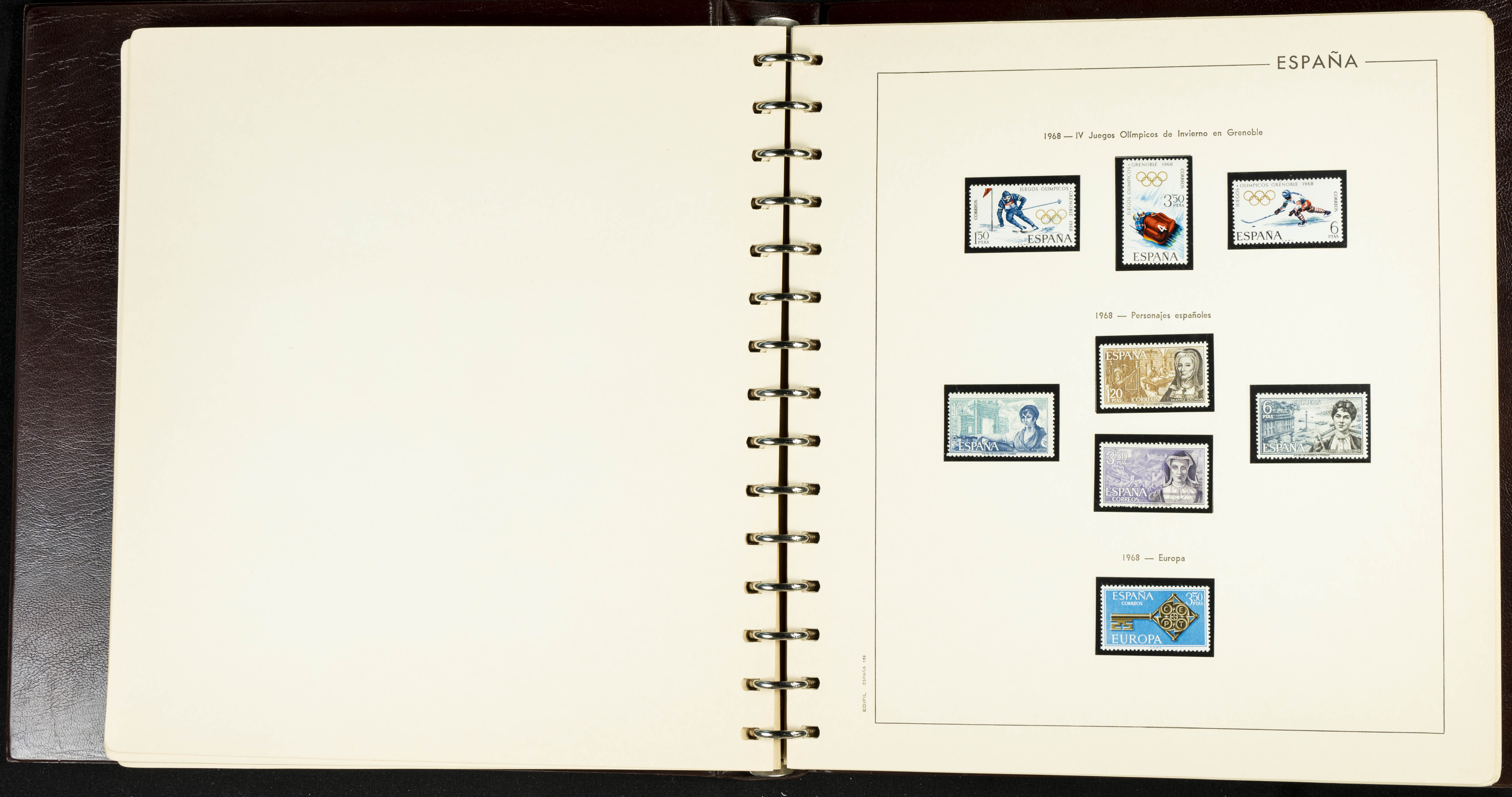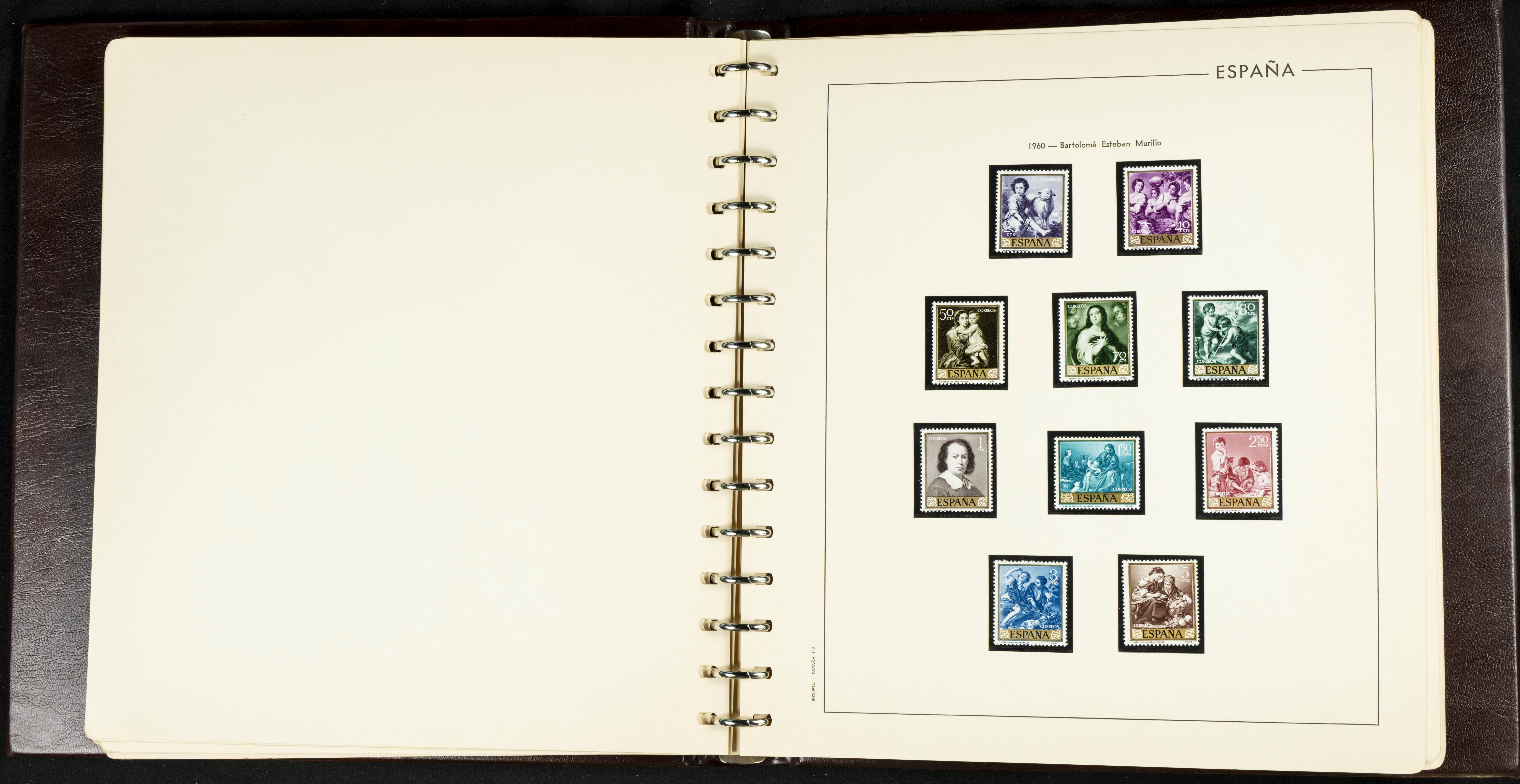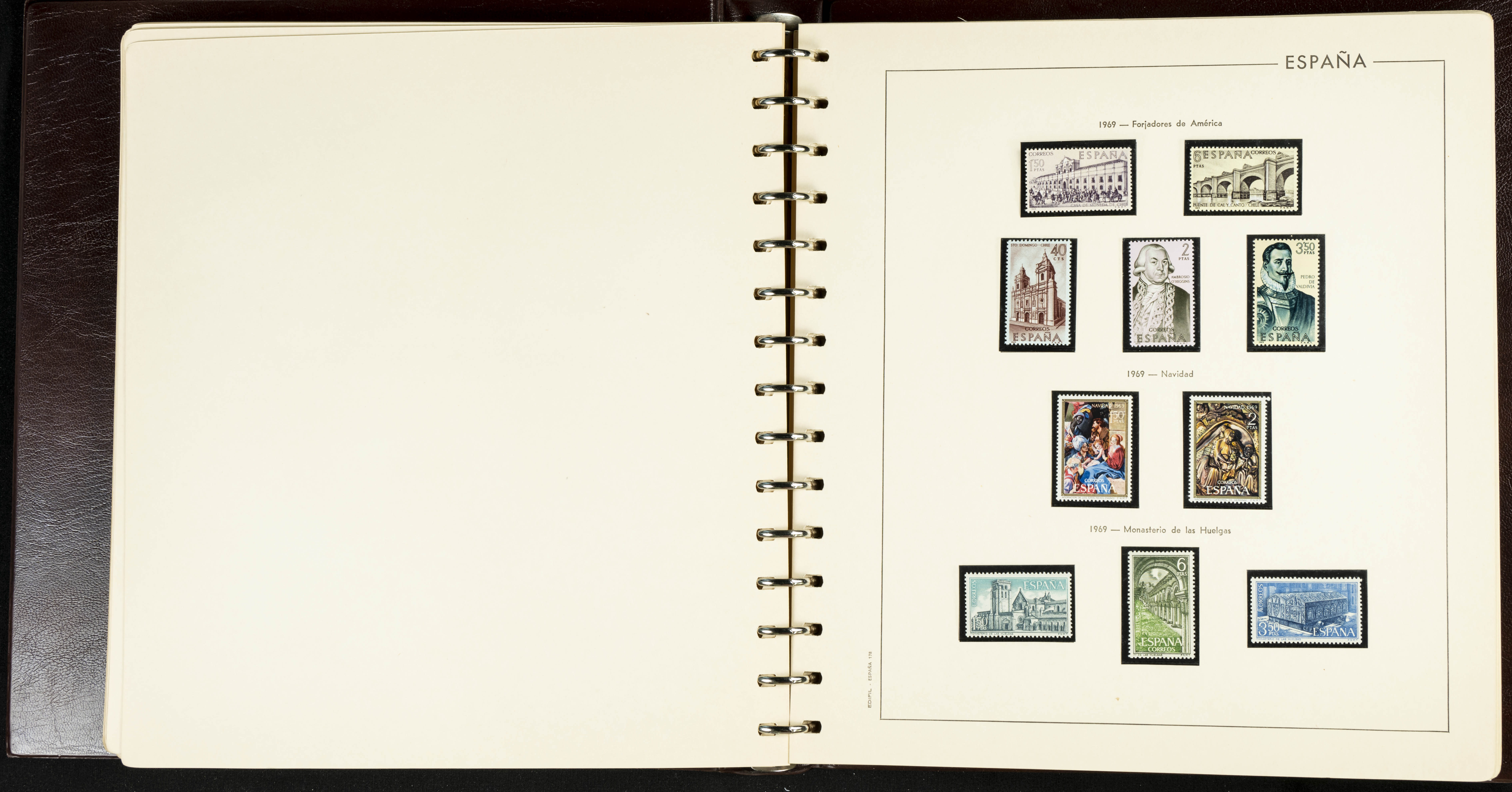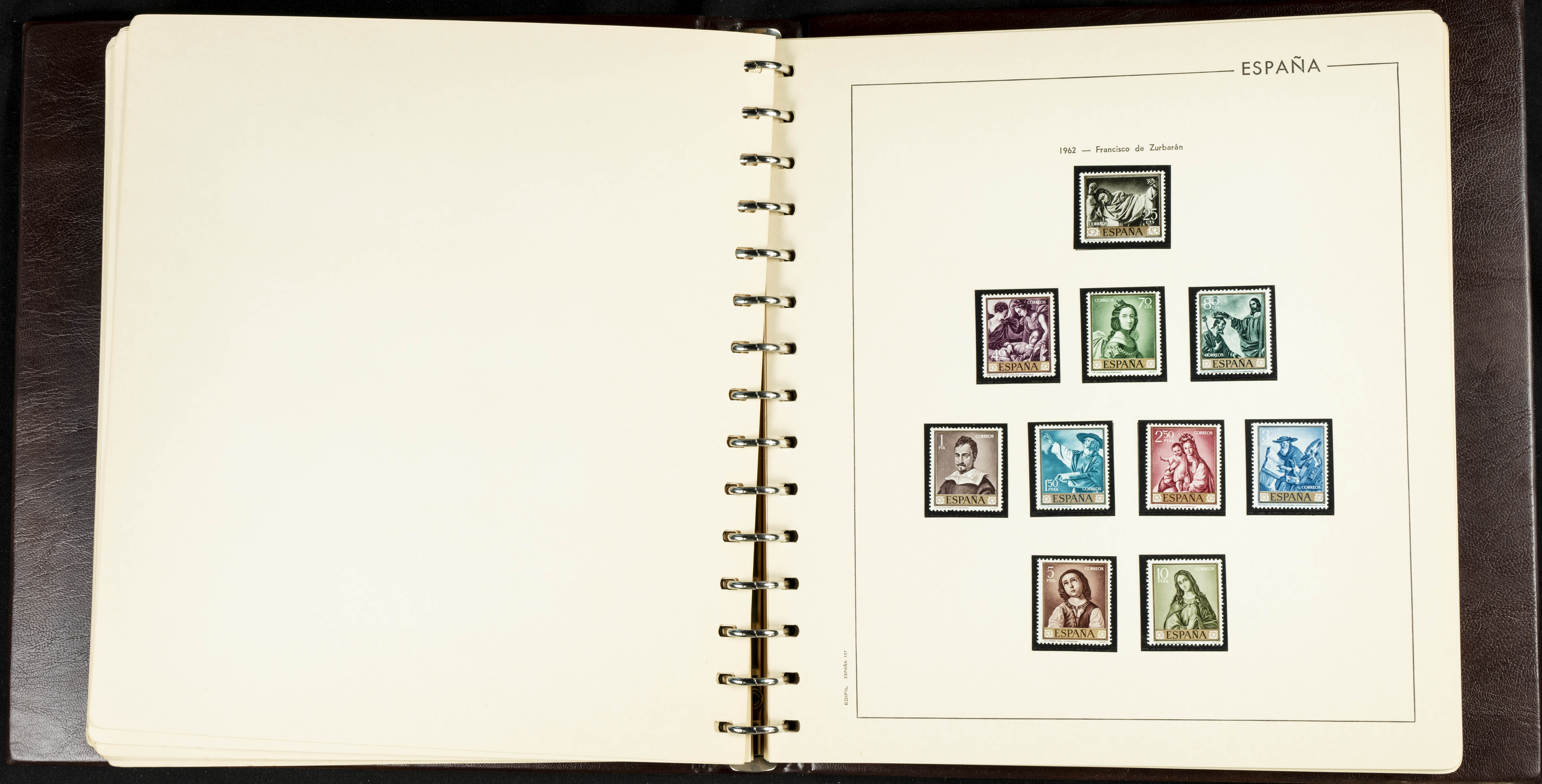 ★★(1950ca). Colección completa entre 1950 y 1975, en nuevo y sin fijasellos a falta de los Caudillos a Canarias con y sin número e incluyendo la 1ª y 2ª Tirada terrestres, Centenario, "Legazpi y Sorolla" (duplicado en usado) y juegos completos de Trajes y Escudos en bloques de cuatro. ALTO VALOR DE CATALOGO. A EXAMINAR.