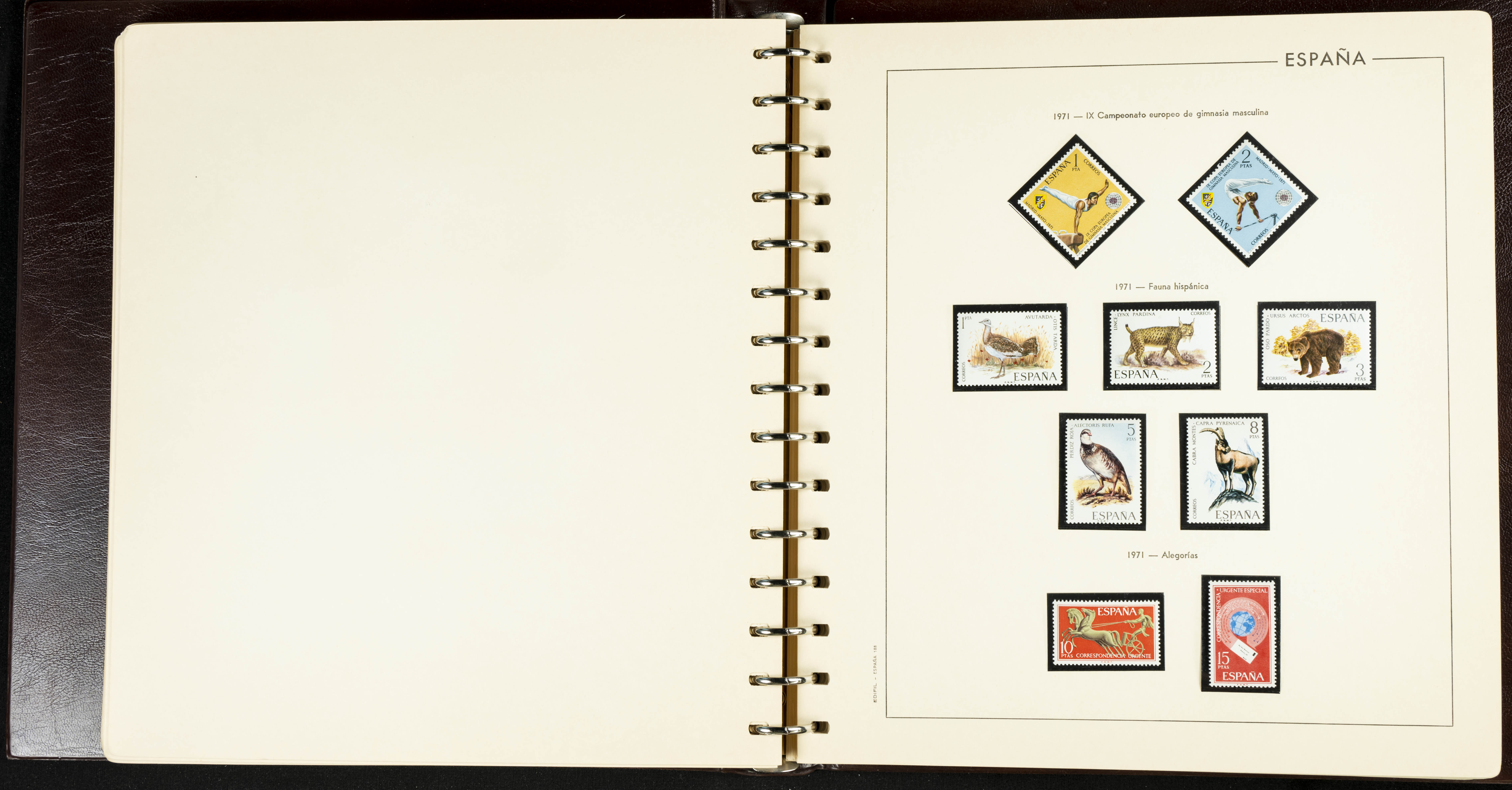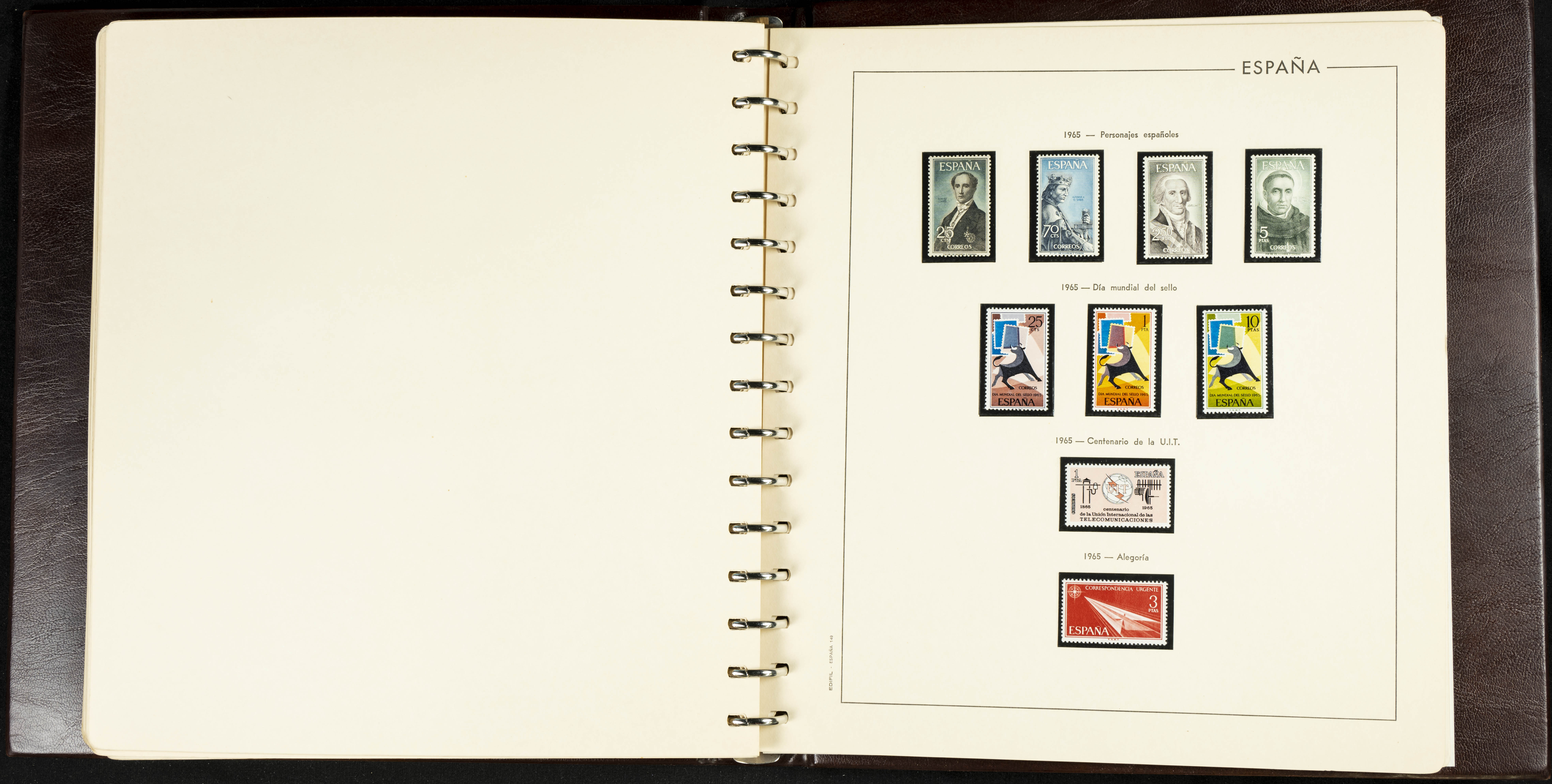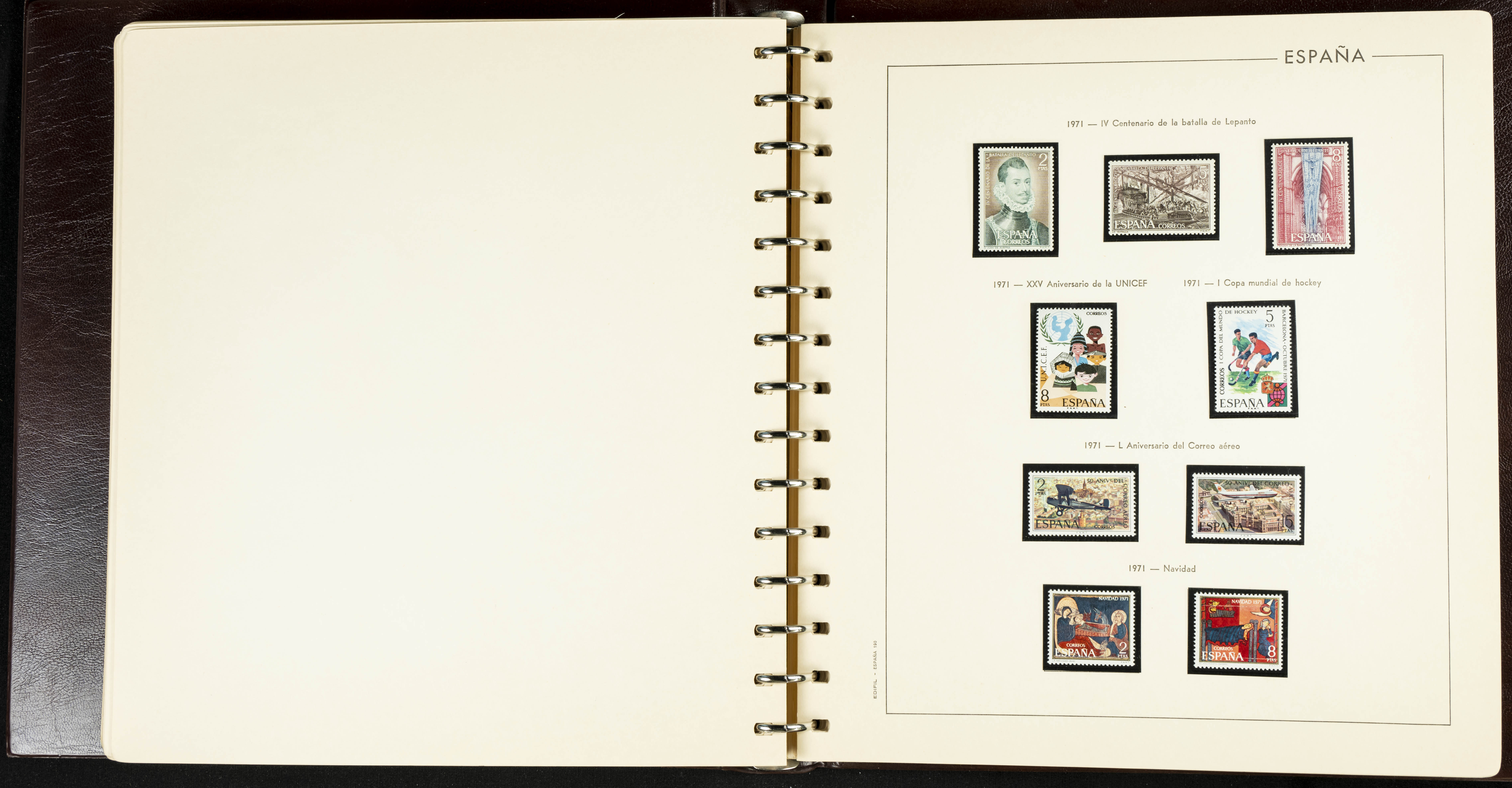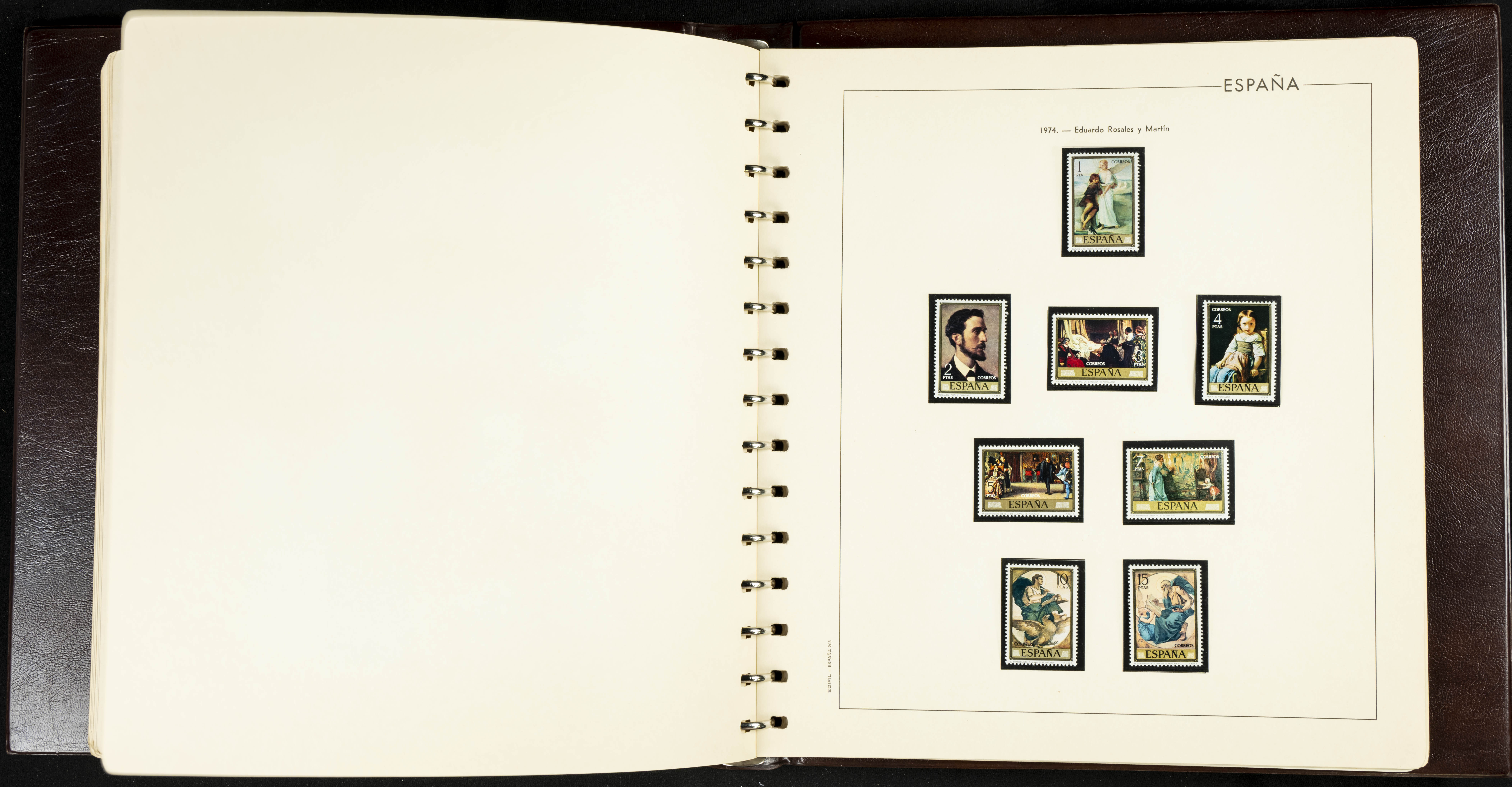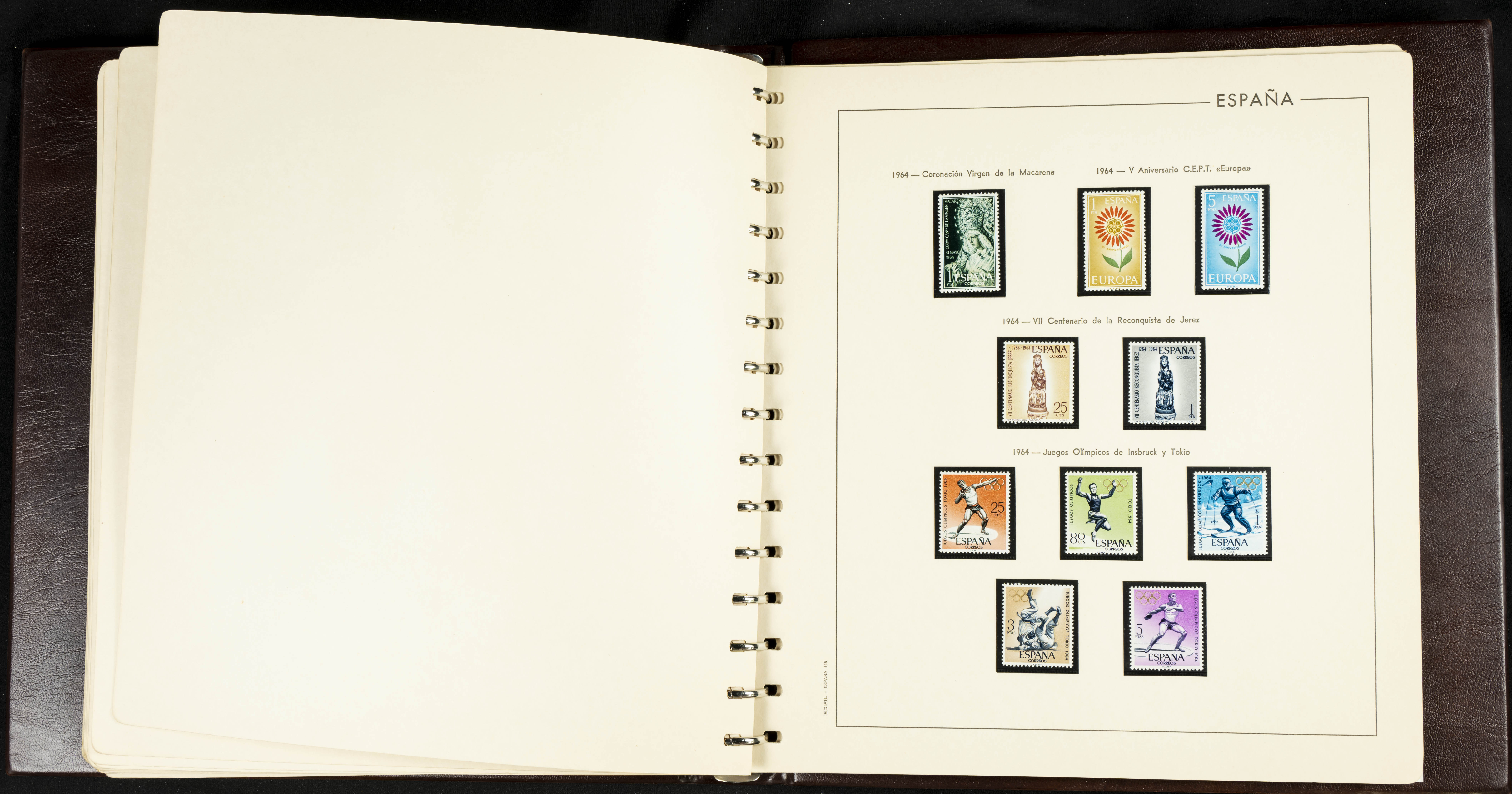 ★★(1950ca). Colección completa entre 1950 y 1975, en nuevo y sin fijasellos a falta de los Caudillos a Canarias con y sin número e incluyendo la 1ª y 2ª Tirada terrestres, Centenario, "Legazpi y Sorolla" (duplicado en usado) y juegos completos de Trajes y Escudos en bloques de cuatro. ALTO VALOR DE CATALOGO. A EXAMINAR.