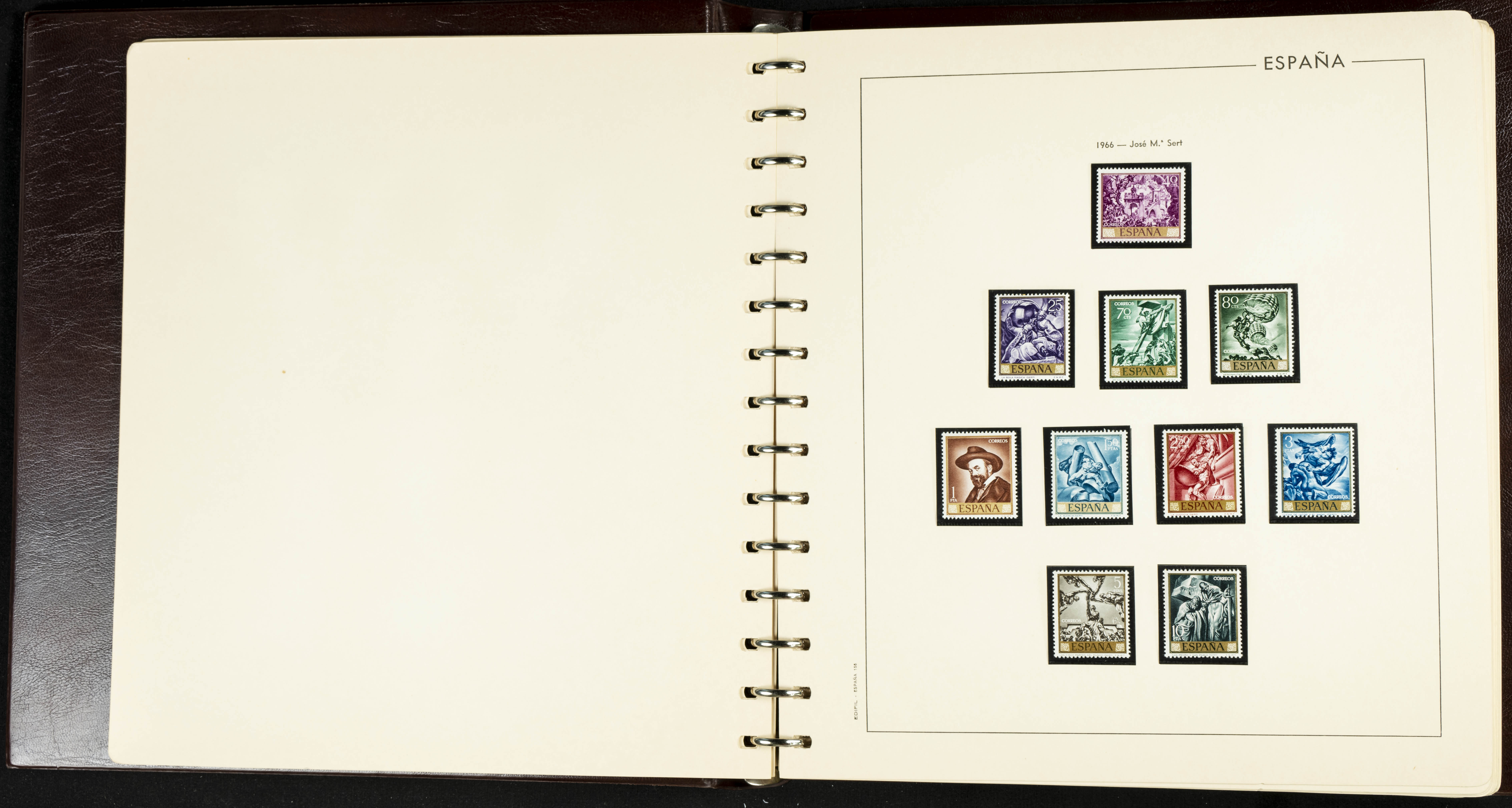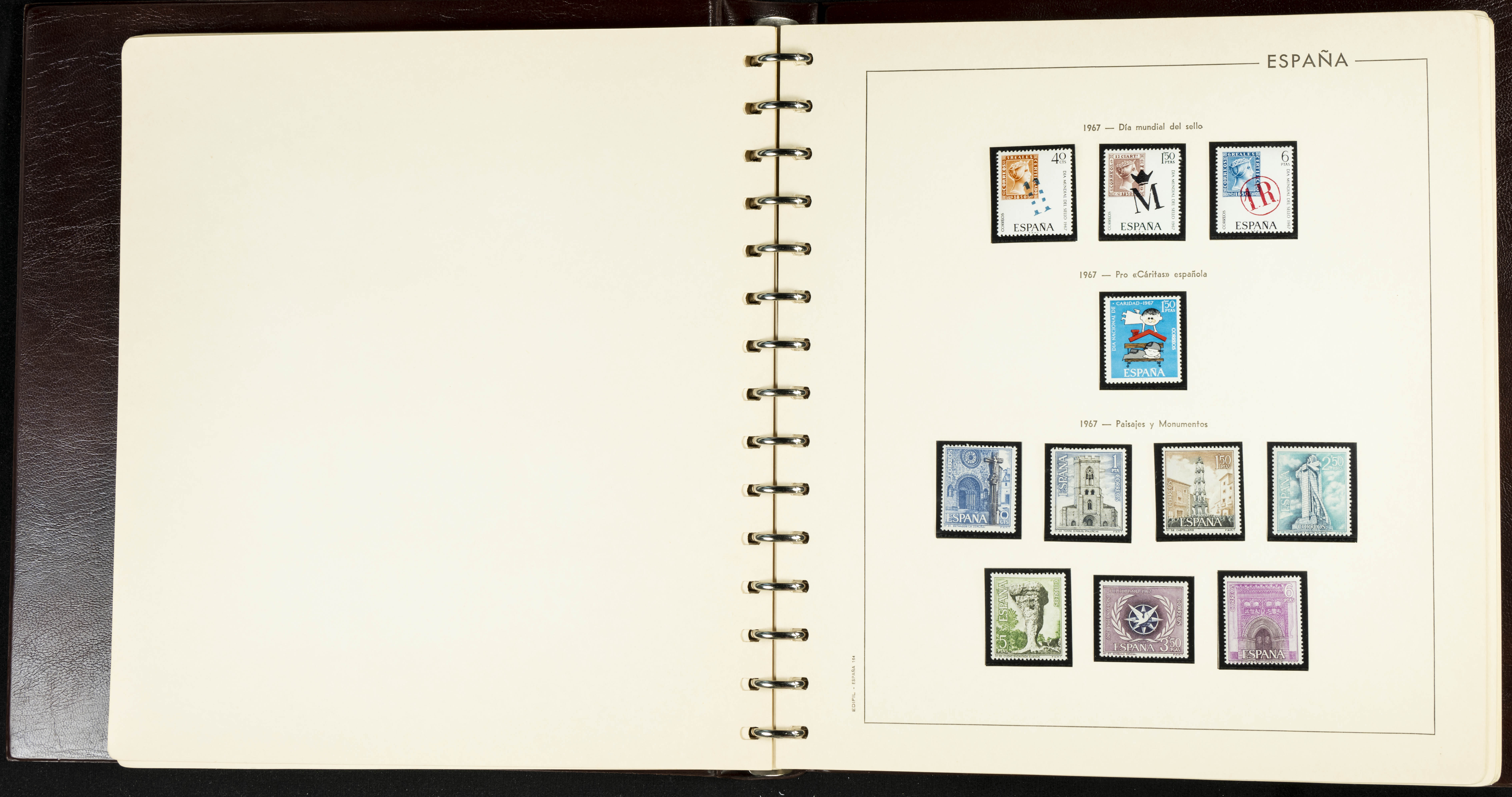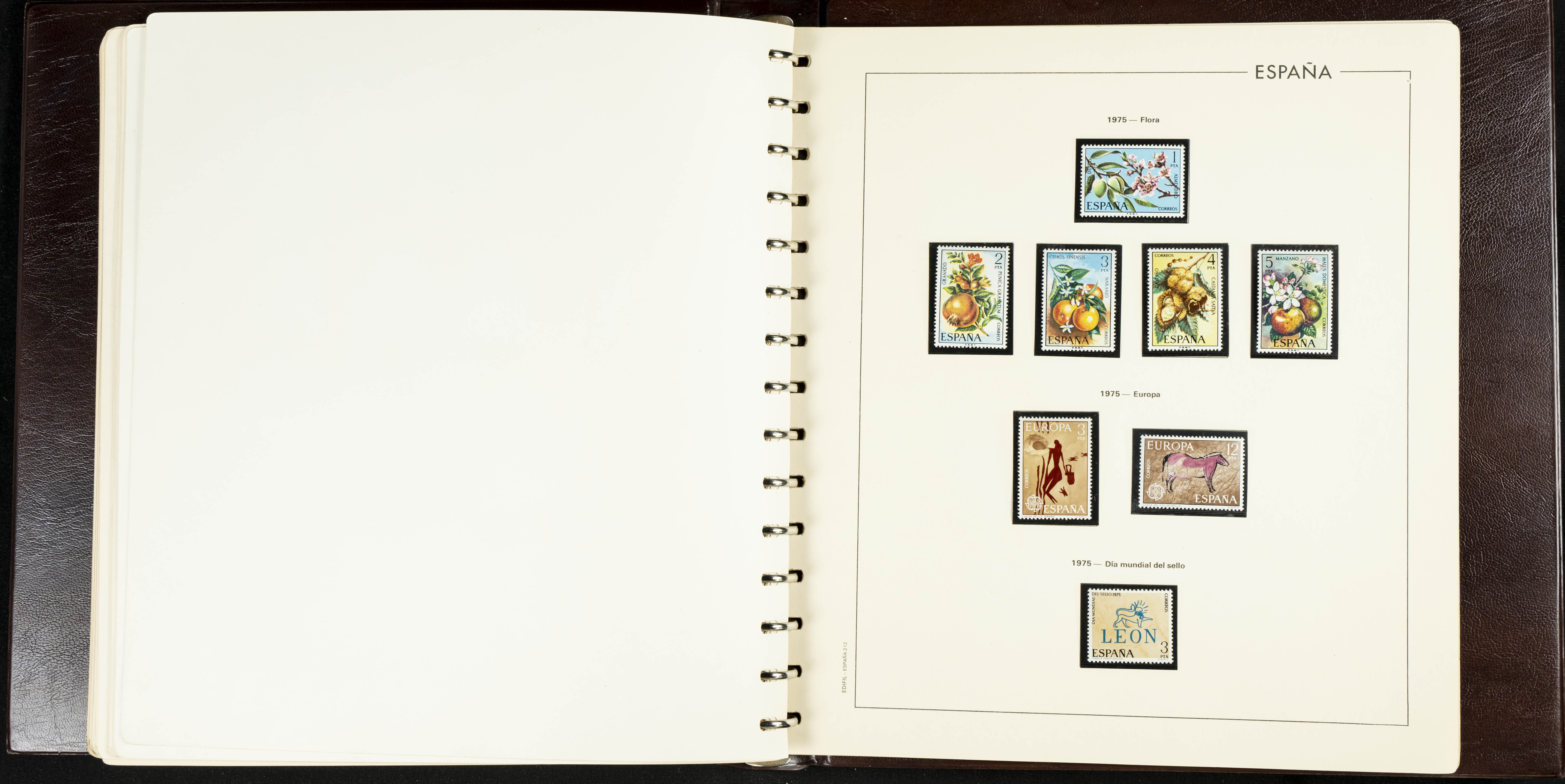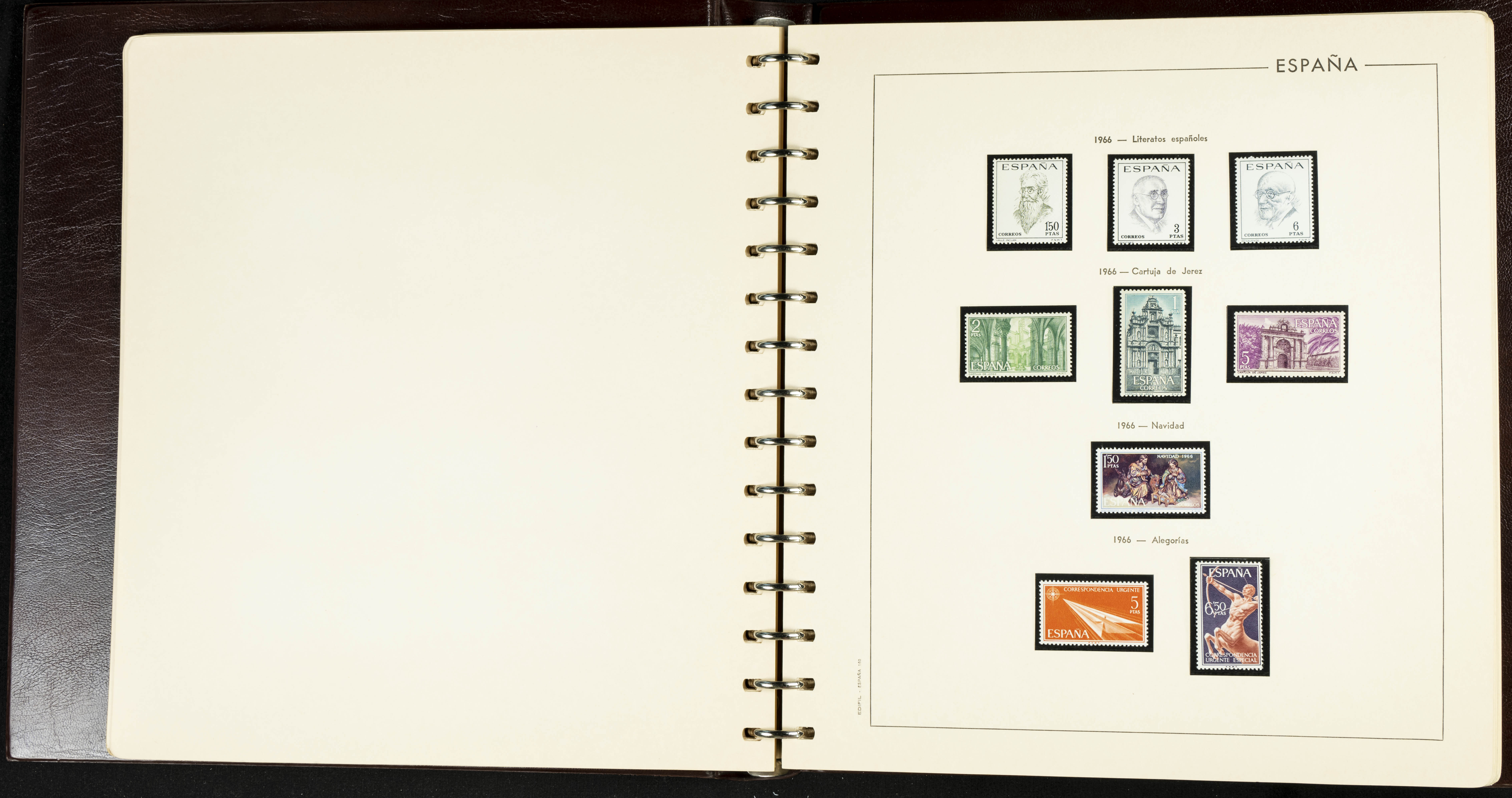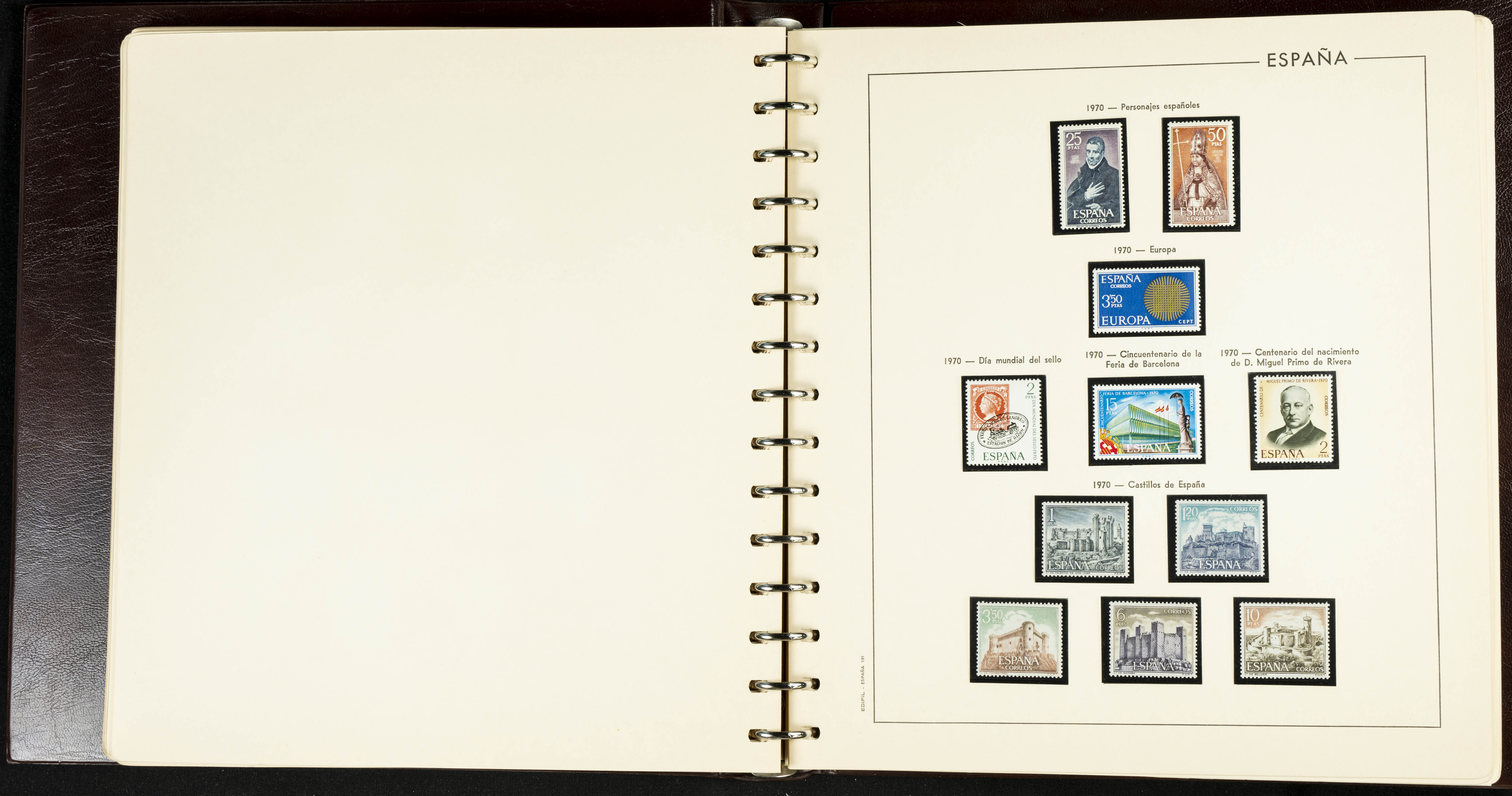 ★★(1950ca). Colección completa entre 1950 y 1975, en nuevo y sin fijasellos a falta de los Caudillos a Canarias con y sin número e incluyendo la 1ª y 2ª Tirada terrestres, Centenario, "Legazpi y Sorolla" (duplicado en usado) y juegos completos de Trajes y Escudos en bloques de cuatro. ALTO VALOR DE CATALOGO. A EXAMINAR.