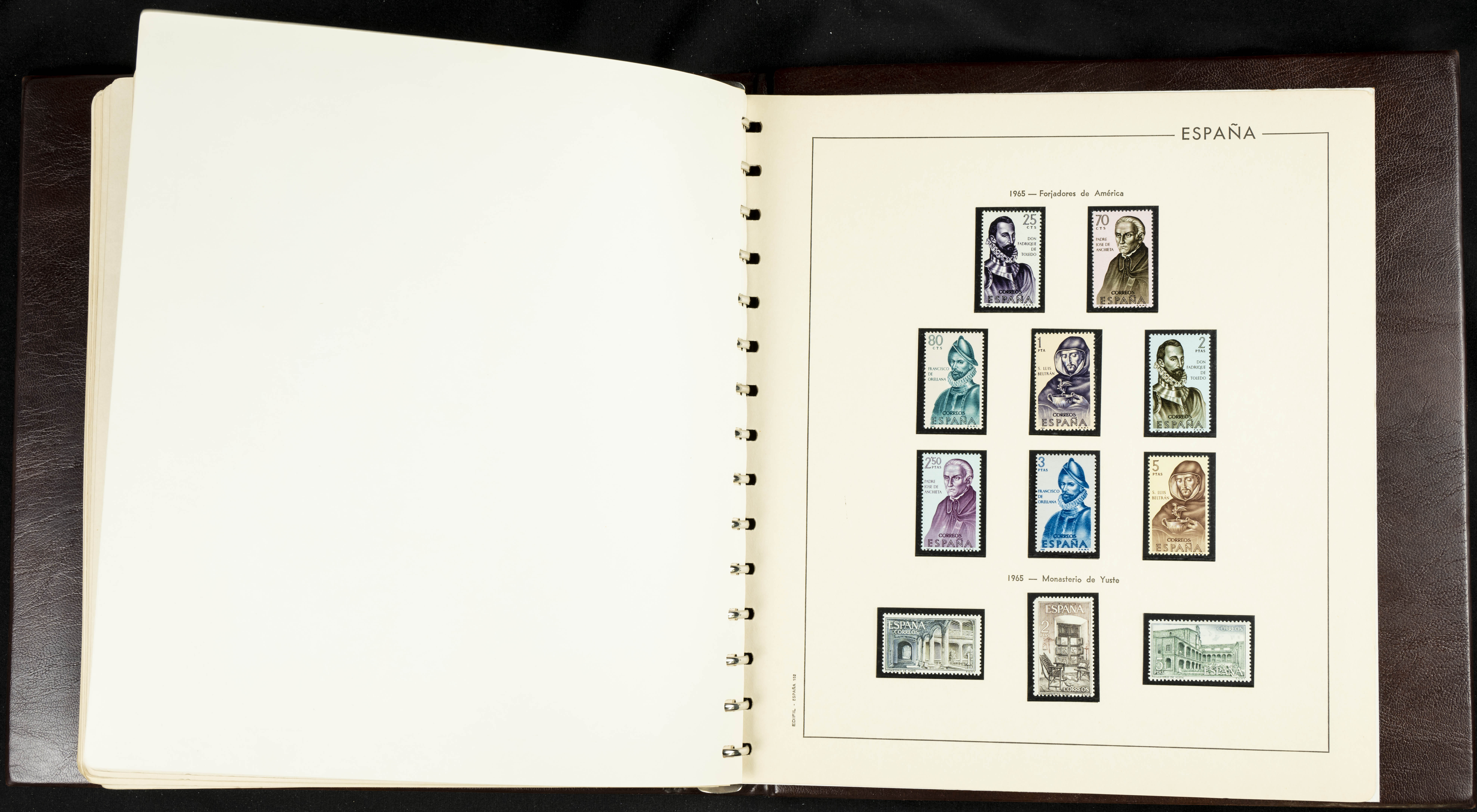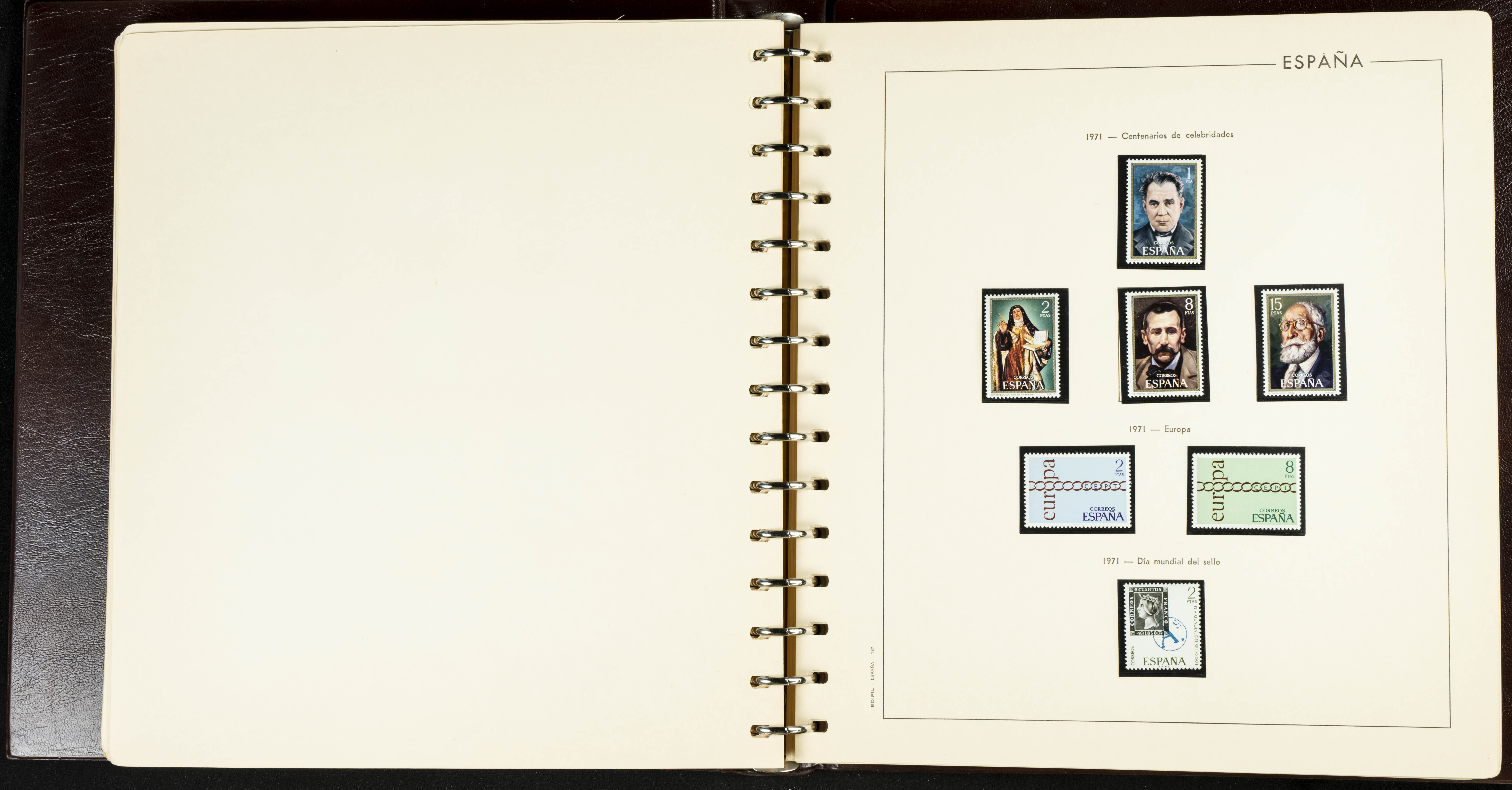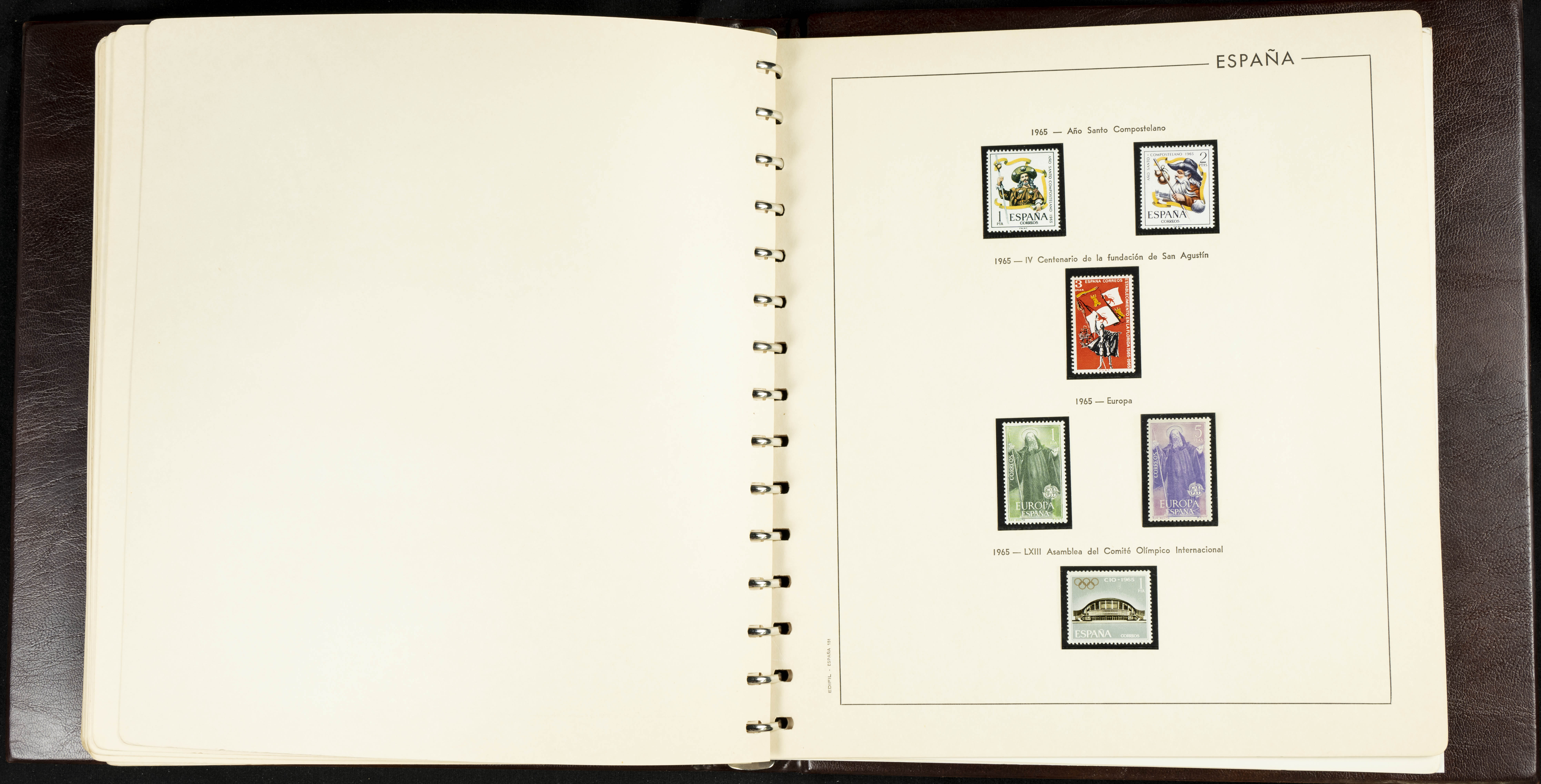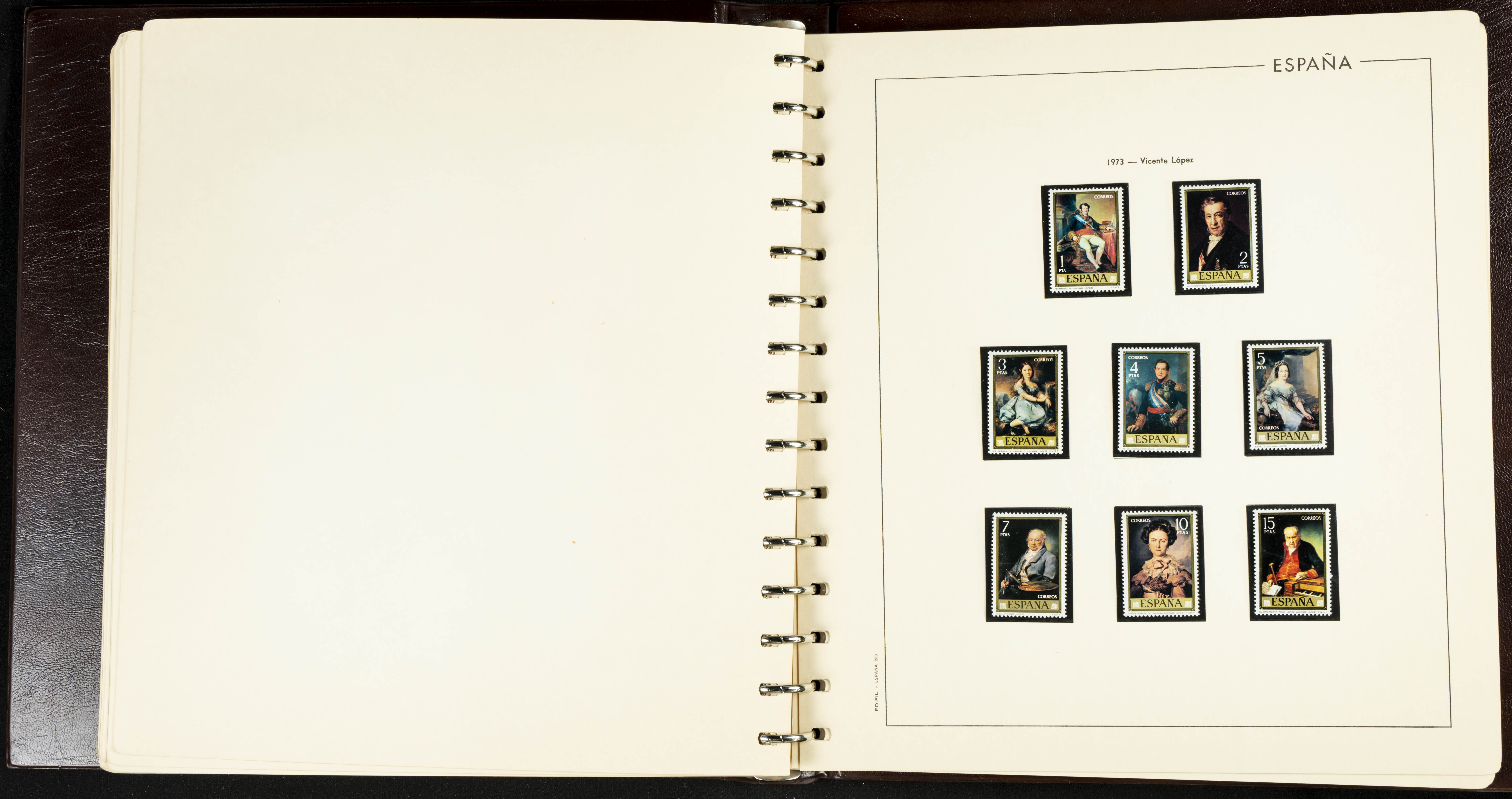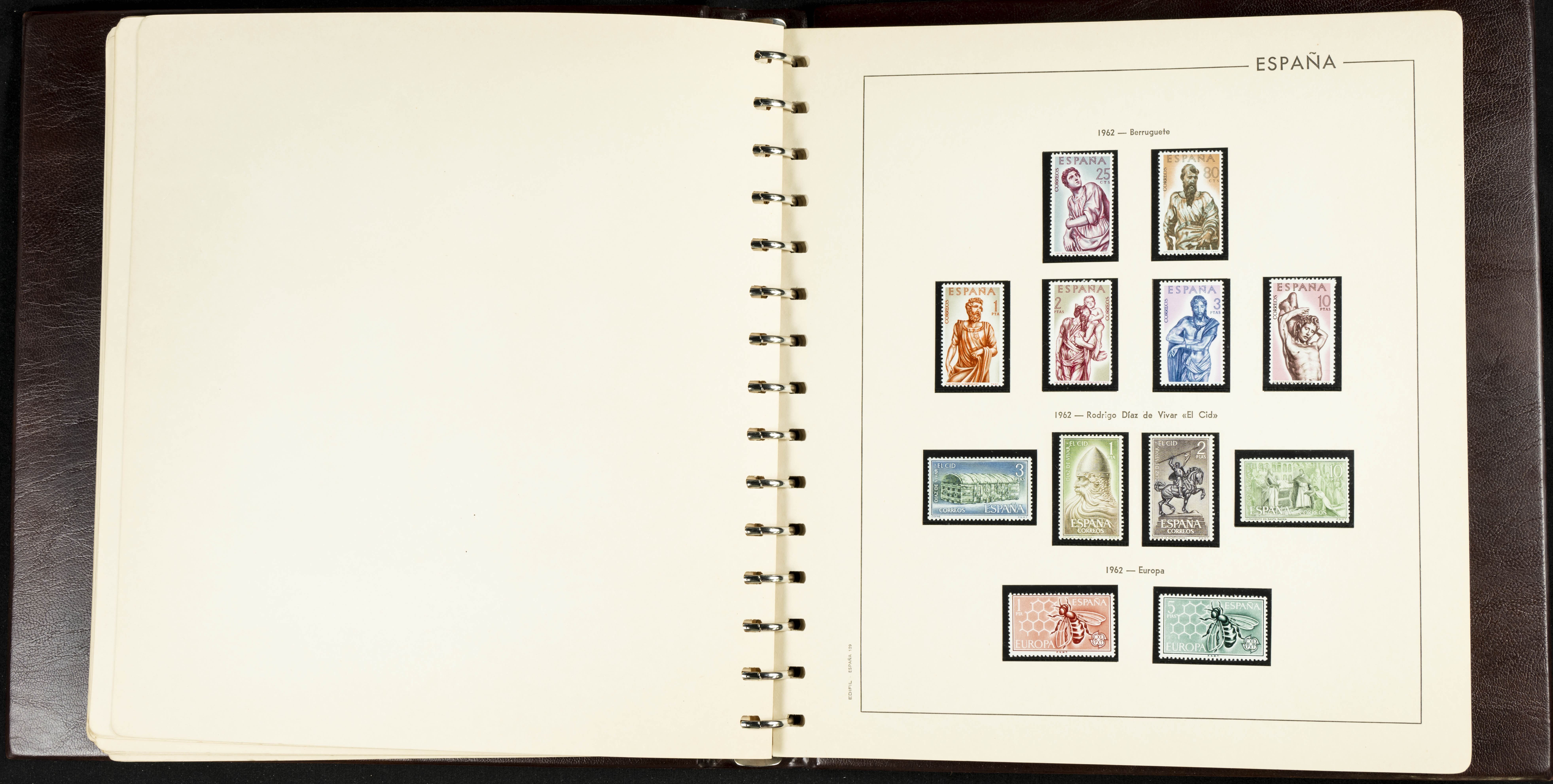 ★★(1950ca). Colección completa entre 1950 y 1975, en nuevo y sin fijasellos a falta de los Caudillos a Canarias con y sin número e incluyendo la 1ª y 2ª Tirada terrestres, Centenario, "Legazpi y Sorolla" (duplicado en usado) y juegos completos de Trajes y Escudos en bloques de cuatro. ALTO VALOR DE CATALOGO. A EXAMINAR.