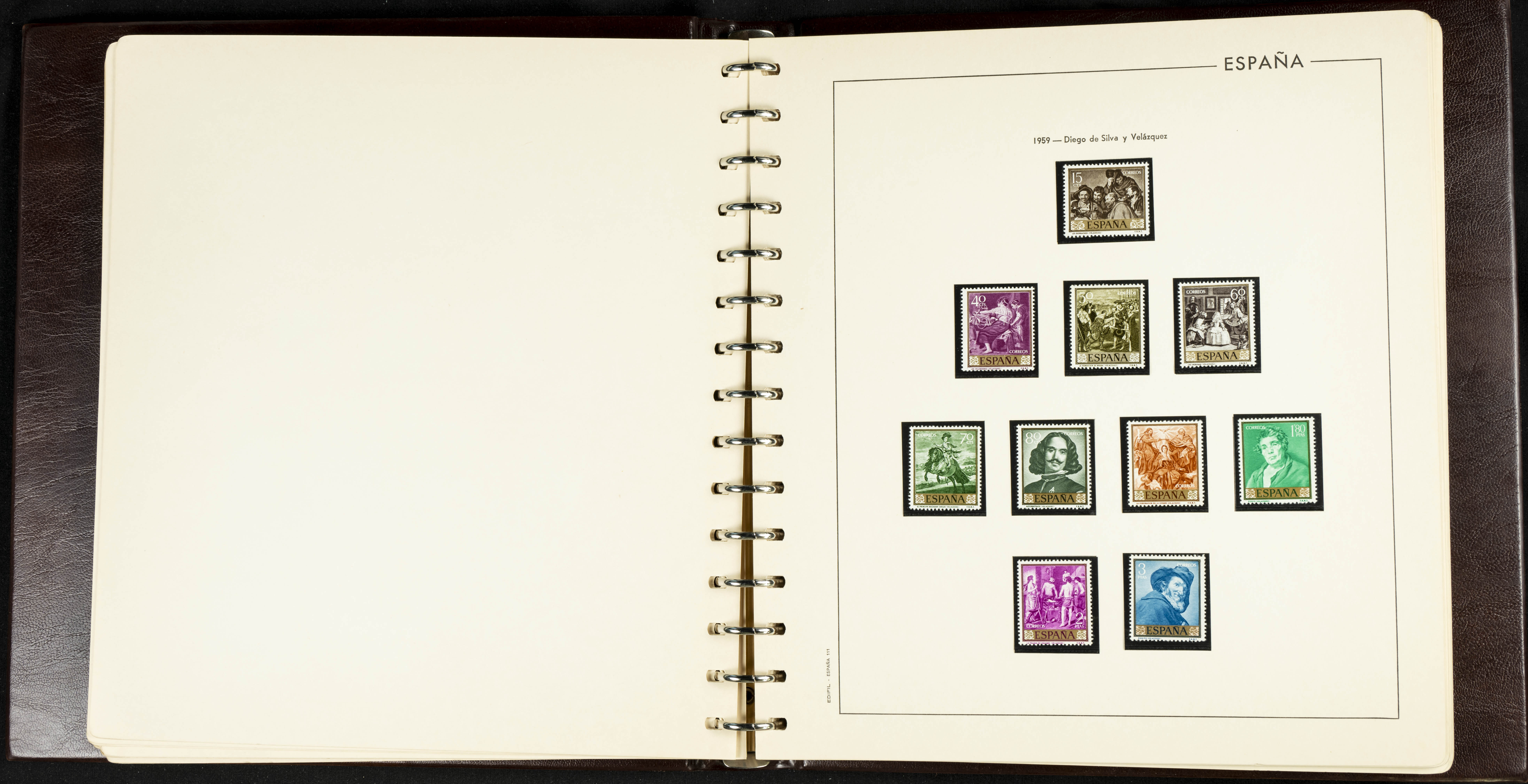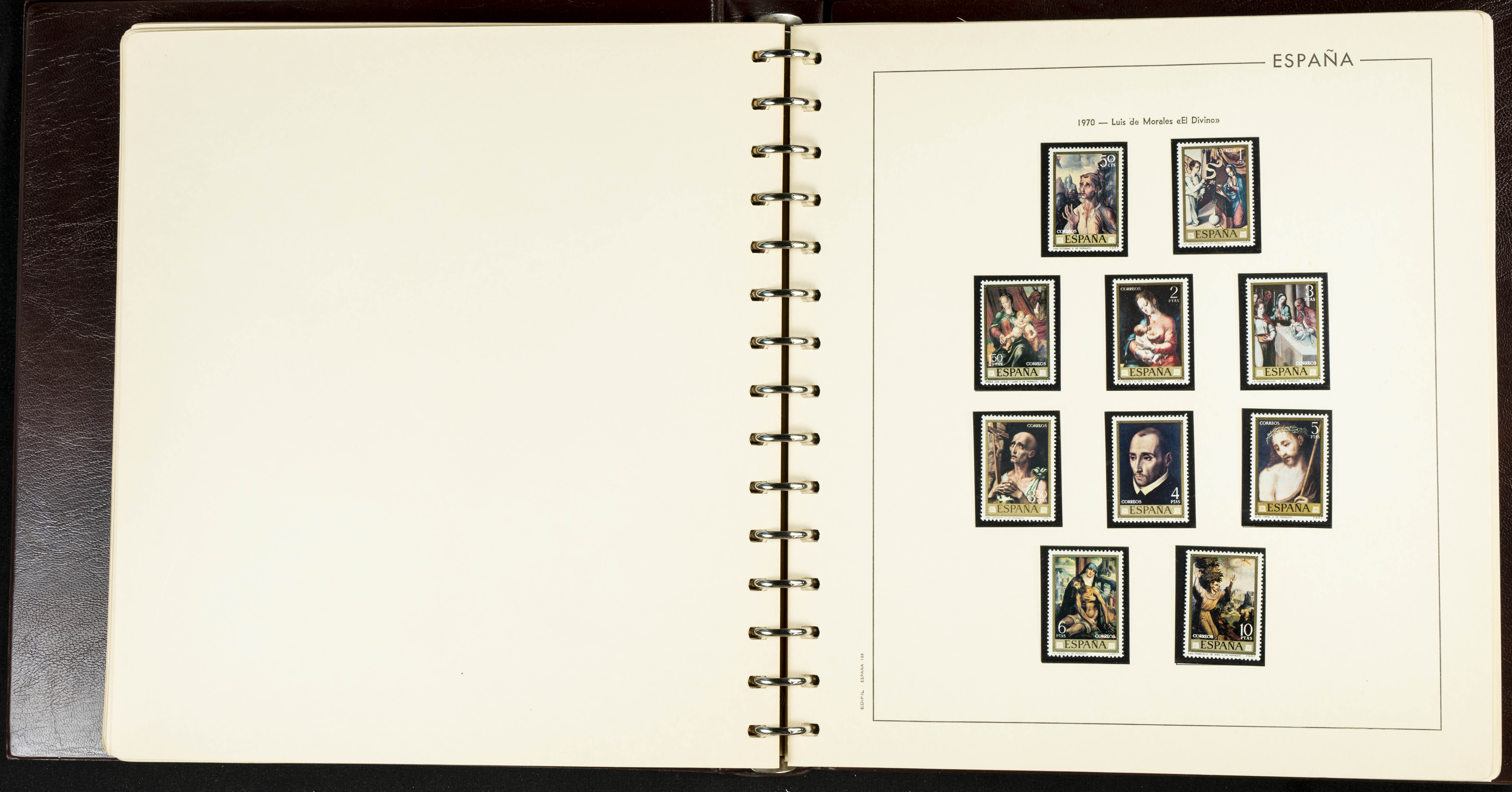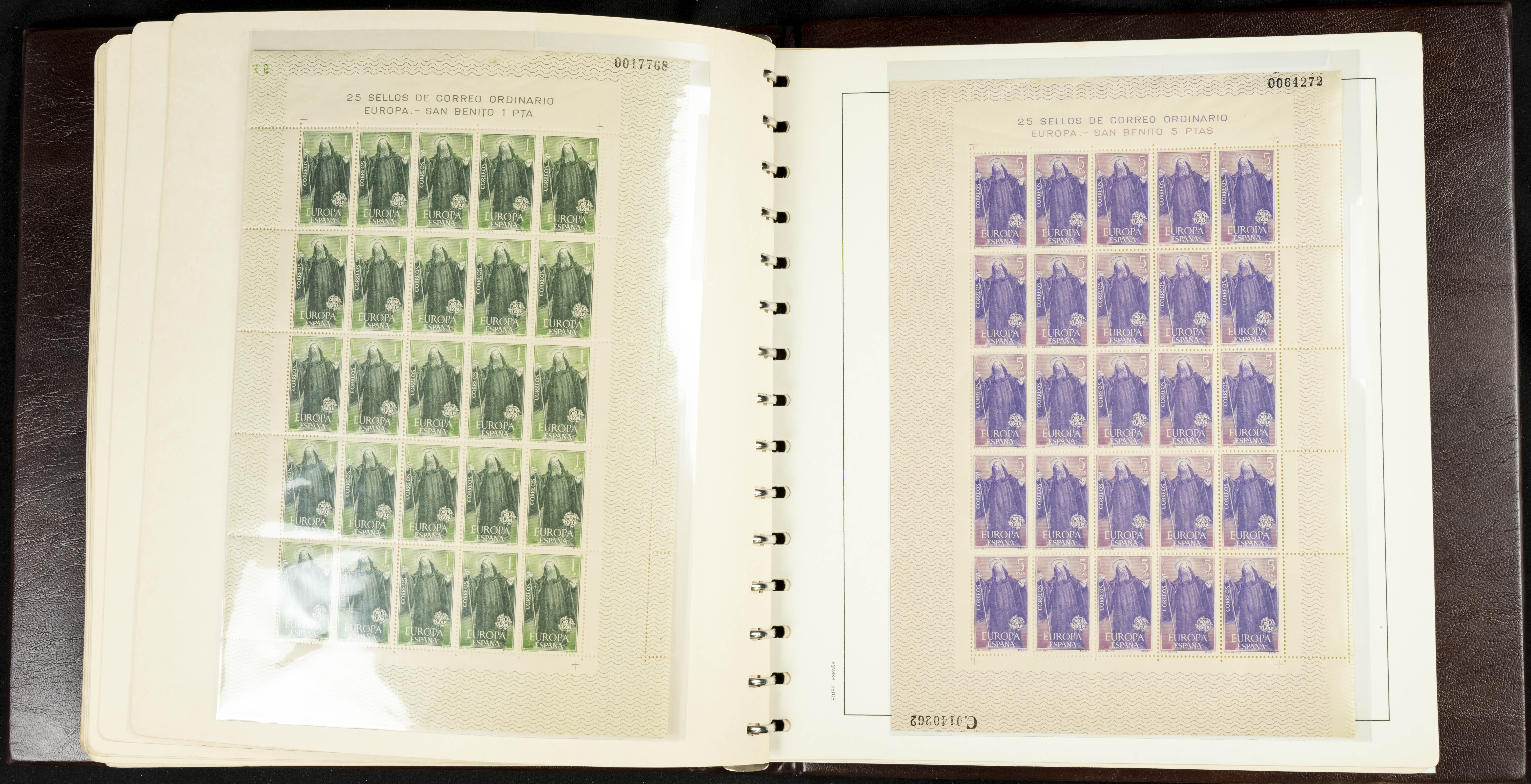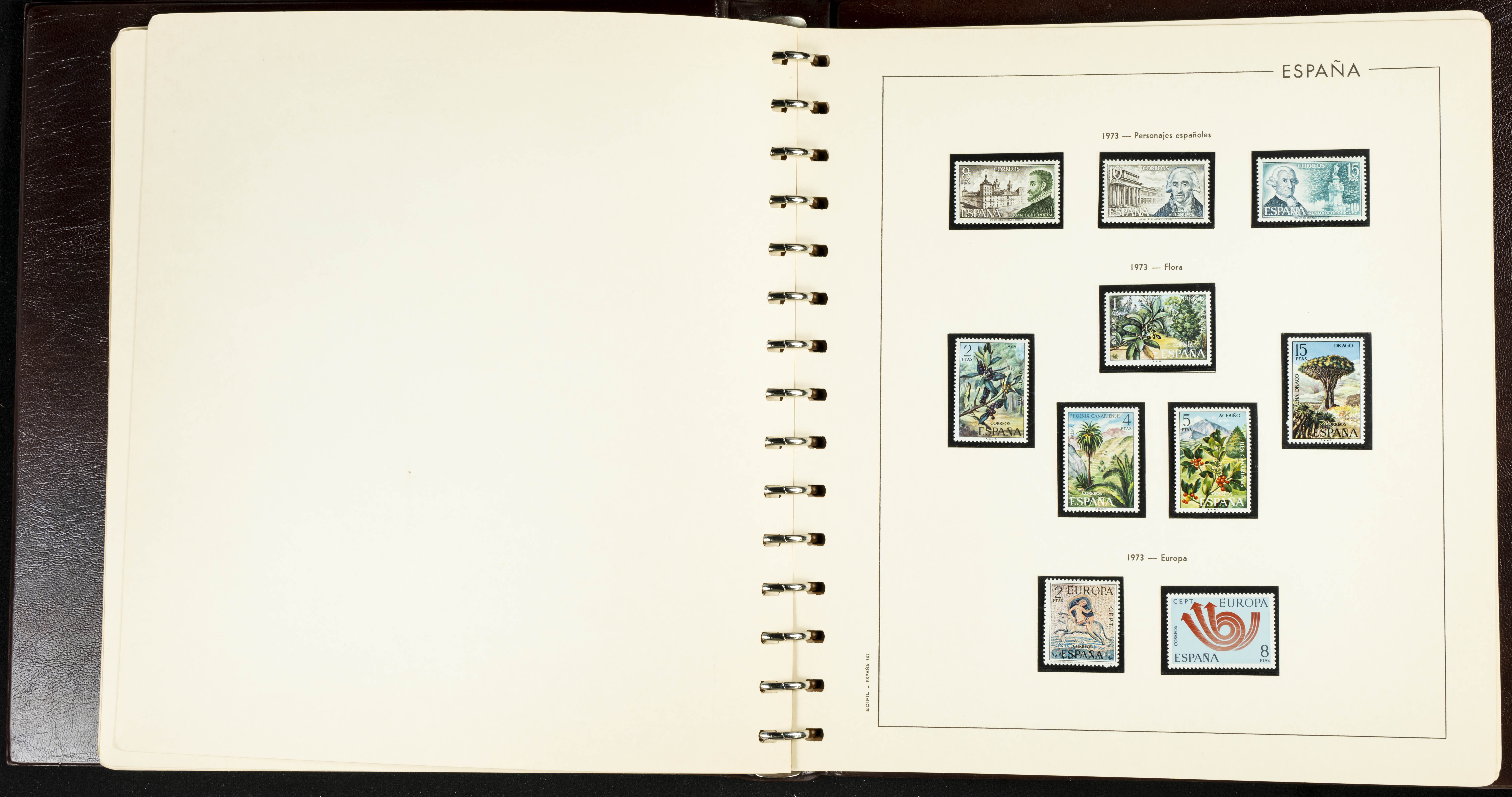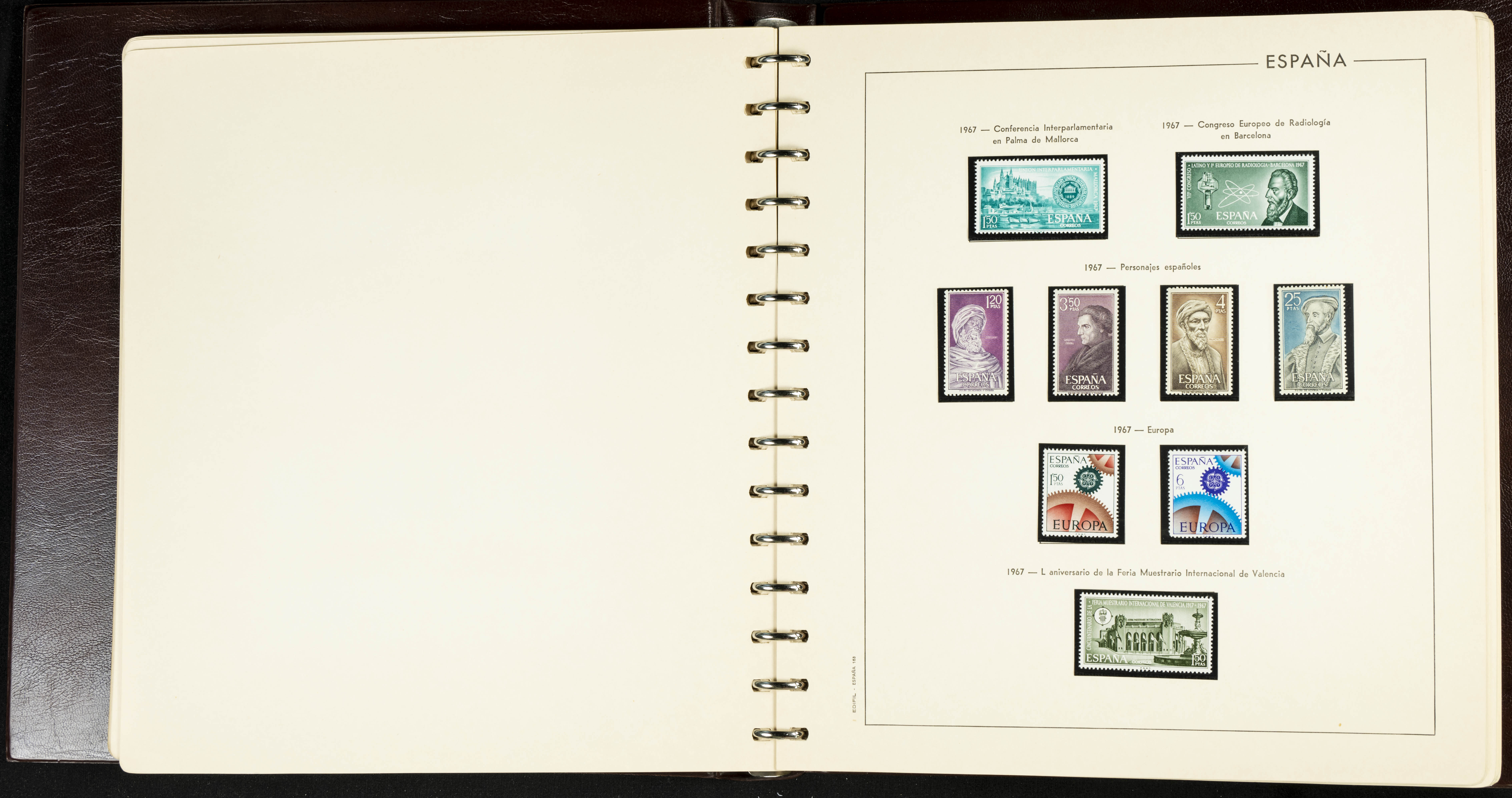 ★★(1950ca). Colección completa entre 1950 y 1975, en nuevo y sin fijasellos a falta de los Caudillos a Canarias con y sin número e incluyendo la 1ª y 2ª Tirada terrestres, Centenario, "Legazpi y Sorolla" (duplicado en usado) y juegos completos de Trajes y Escudos en bloques de cuatro. ALTO VALOR DE CATALOGO. A EXAMINAR.
