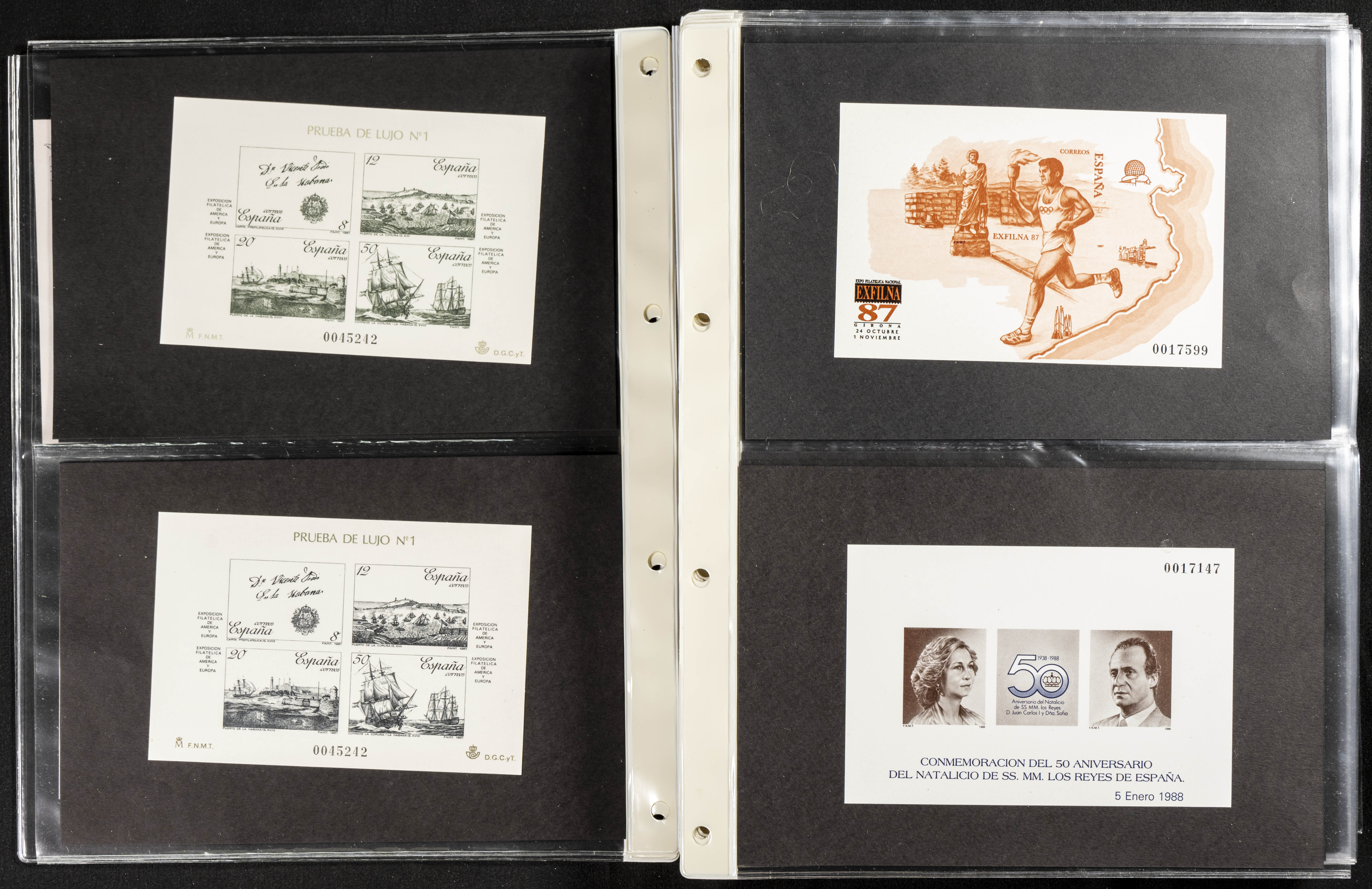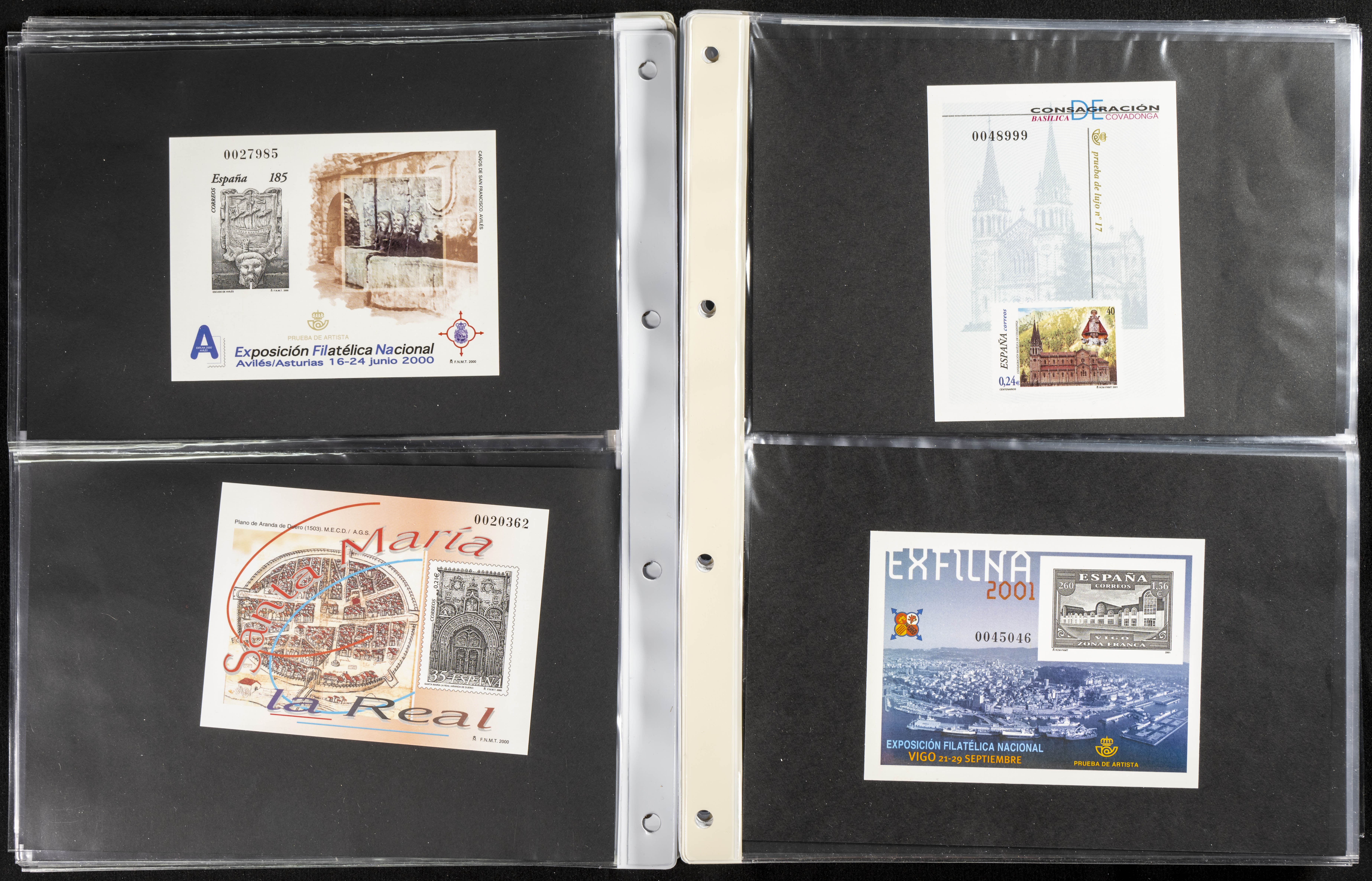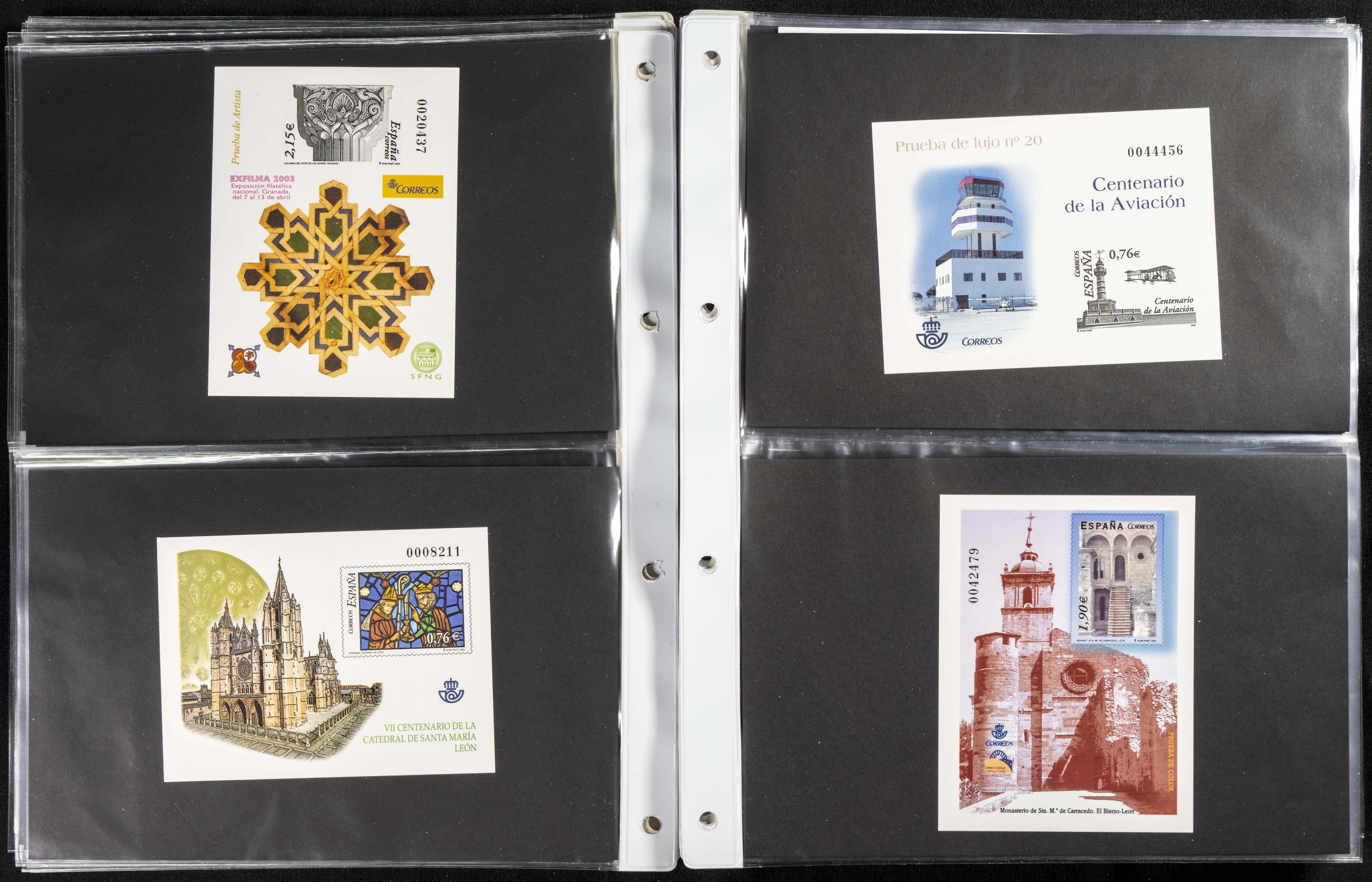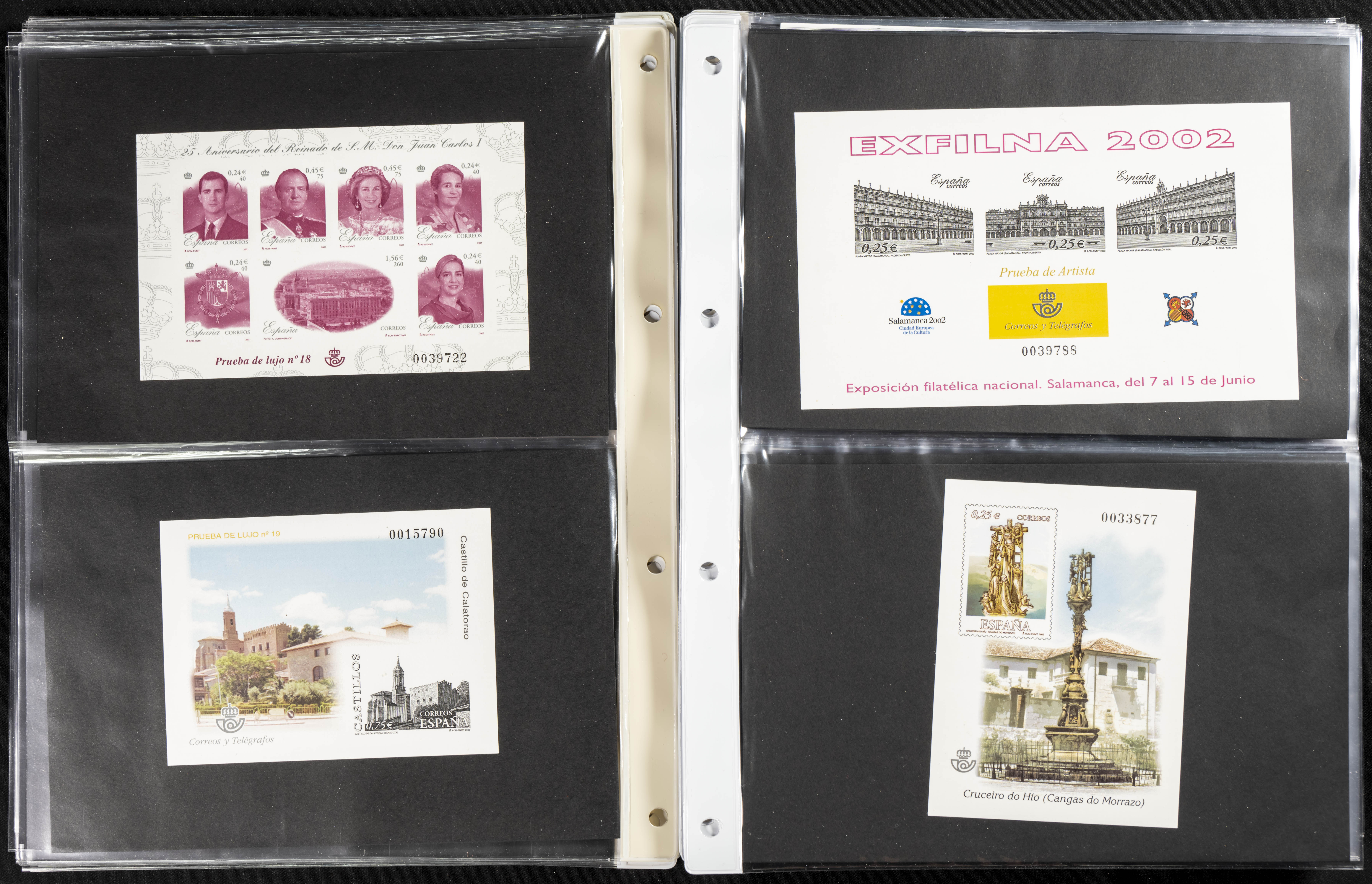 ★★ 1/165P. (1975ca). Colección completa de Pruebas de Lujo entre 1975 y 2018, obviamente incluyendo Calella, Autonomías, Carnet del Rey, Carpeta del 150º Aniversario del Sello Español, Barcos y España 2004. A EXAMINAR. Edifil 2026: +4.800 Euros