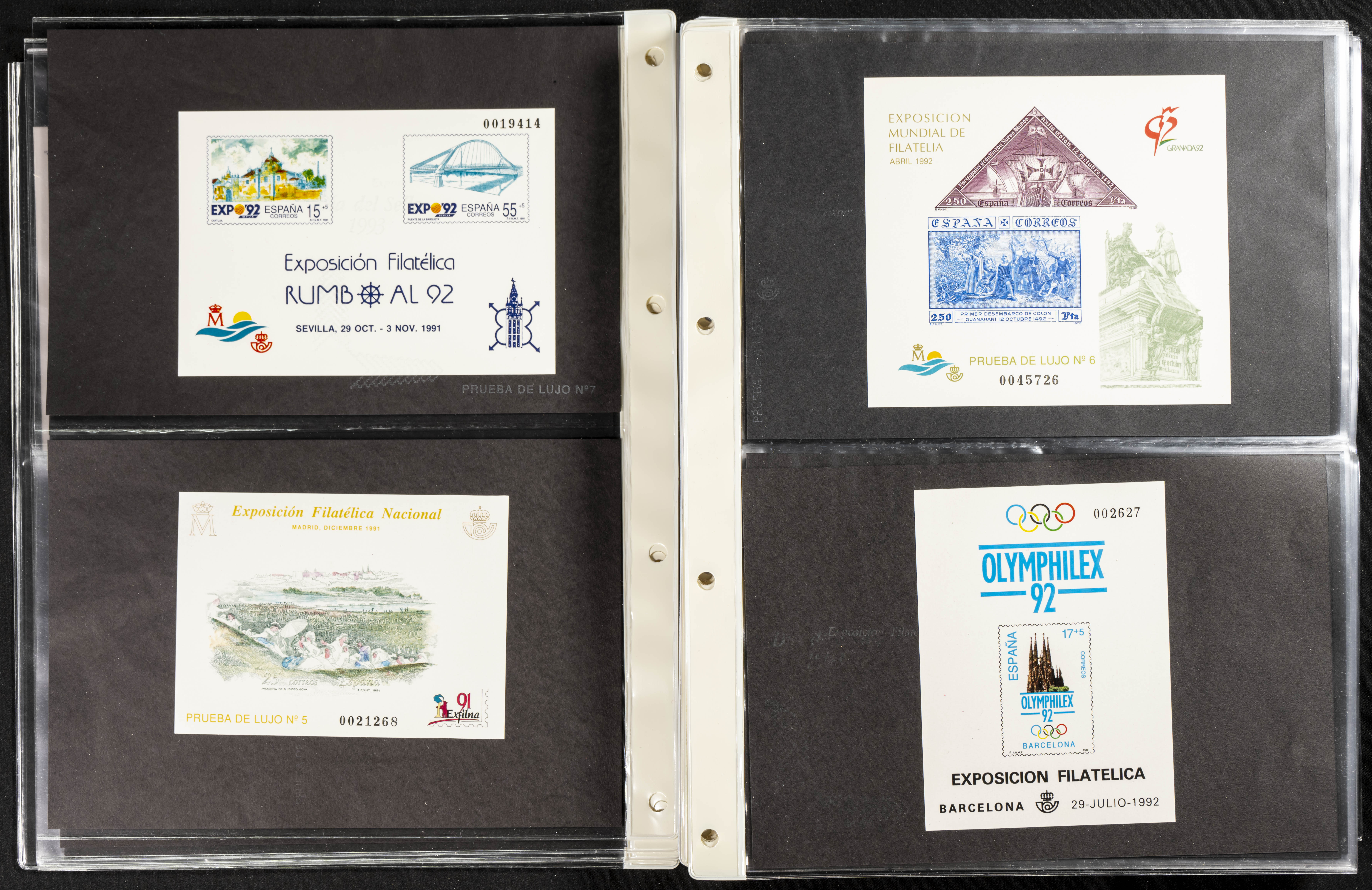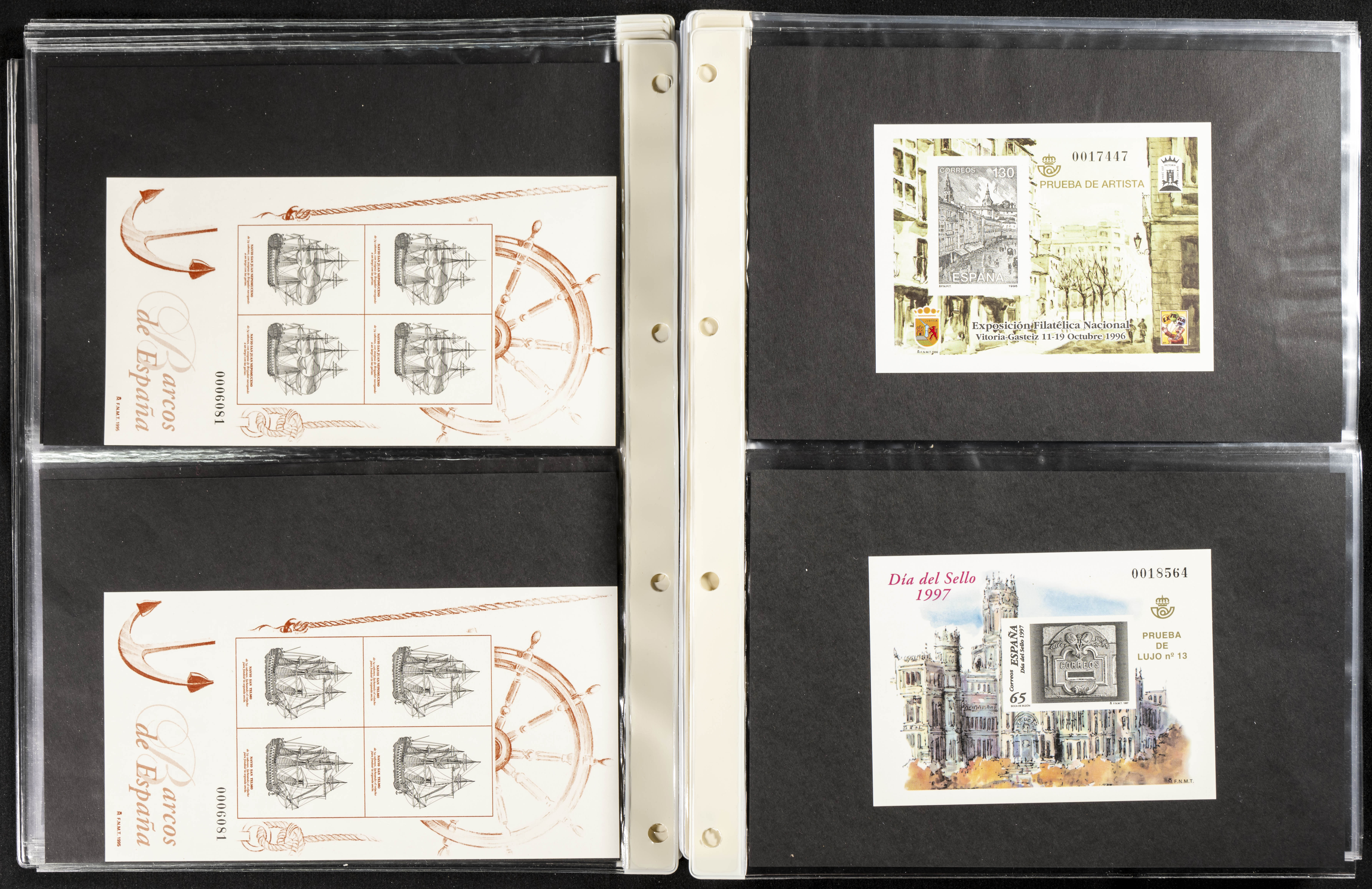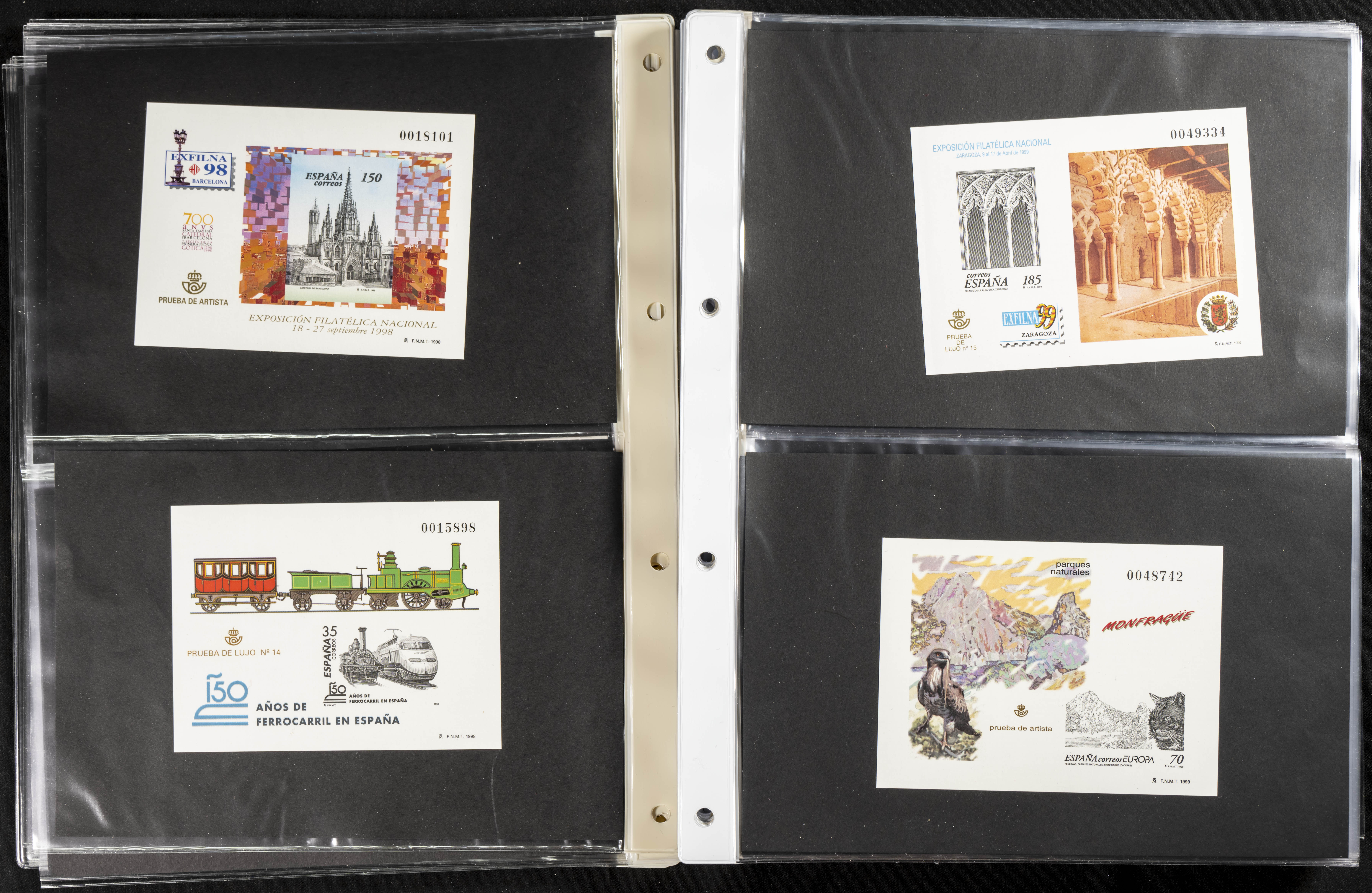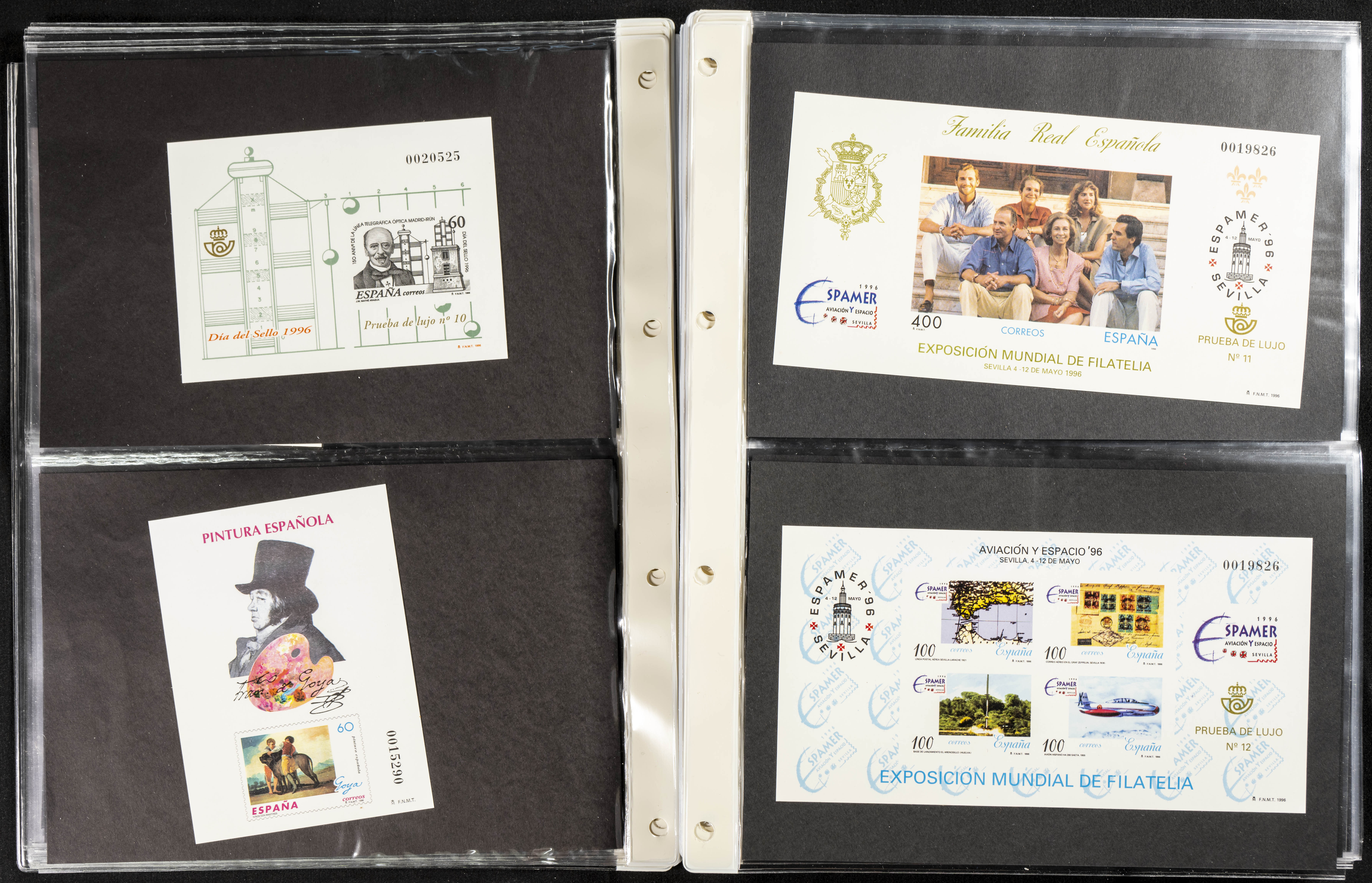 ★★ 1/165P. (1975ca). Colección completa de Pruebas de Lujo entre 1975 y 2018, obviamente incluyendo Calella, Autonomías, Carnet del Rey, Carpeta del 150º Aniversario del Sello Español, Barcos y España 2004. A EXAMINAR. Edifil 2026: +4.800 Euros