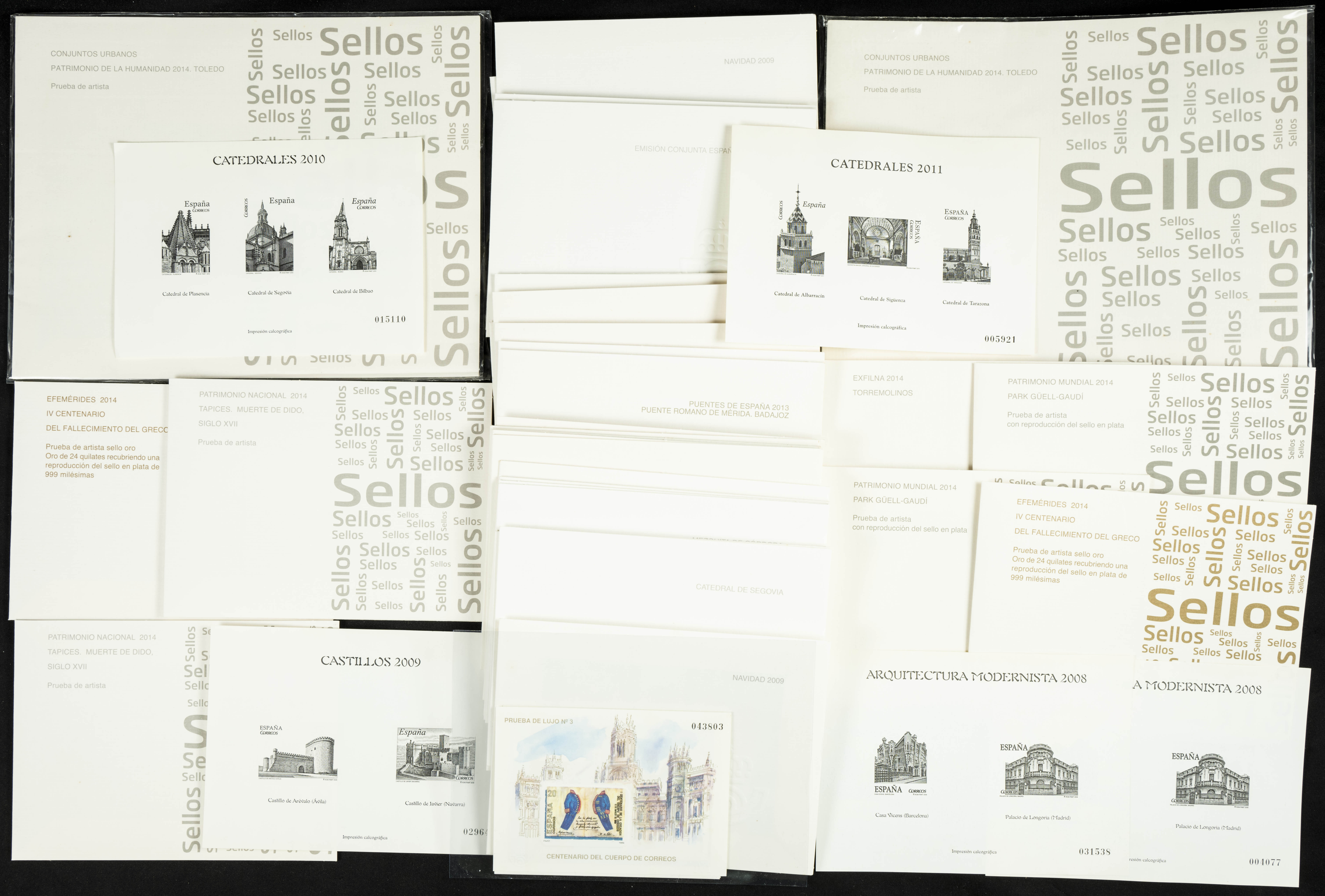 ★★(2004ca). Conjunto de Pruebas de Lujo entre 2004 y 2014, una gran parte repetidas (se incluye relación), incluye Prueba de 1989 del Cuerpo de Correos. A EXAMINAR. Edifil 2026: +740 Euros