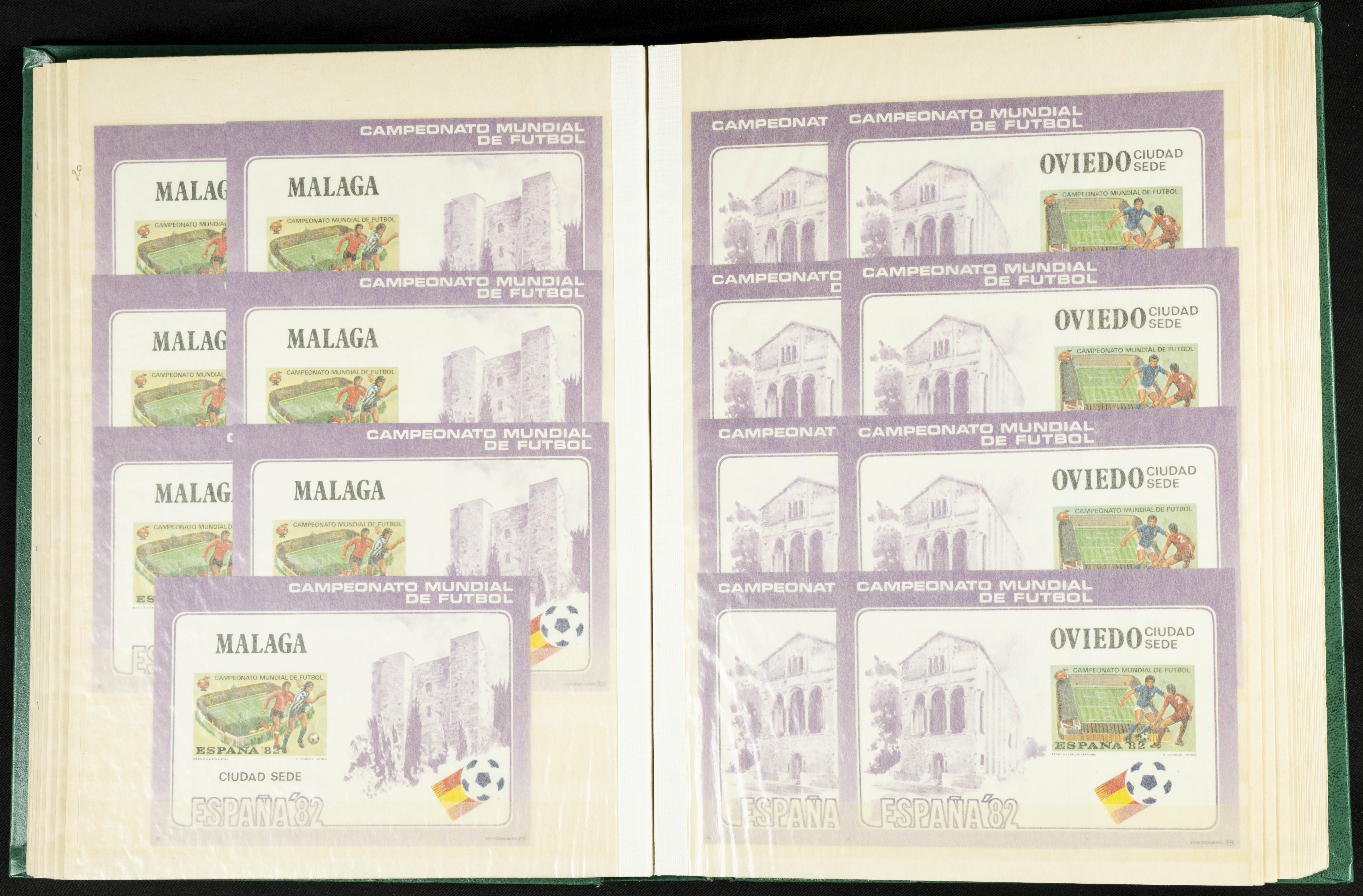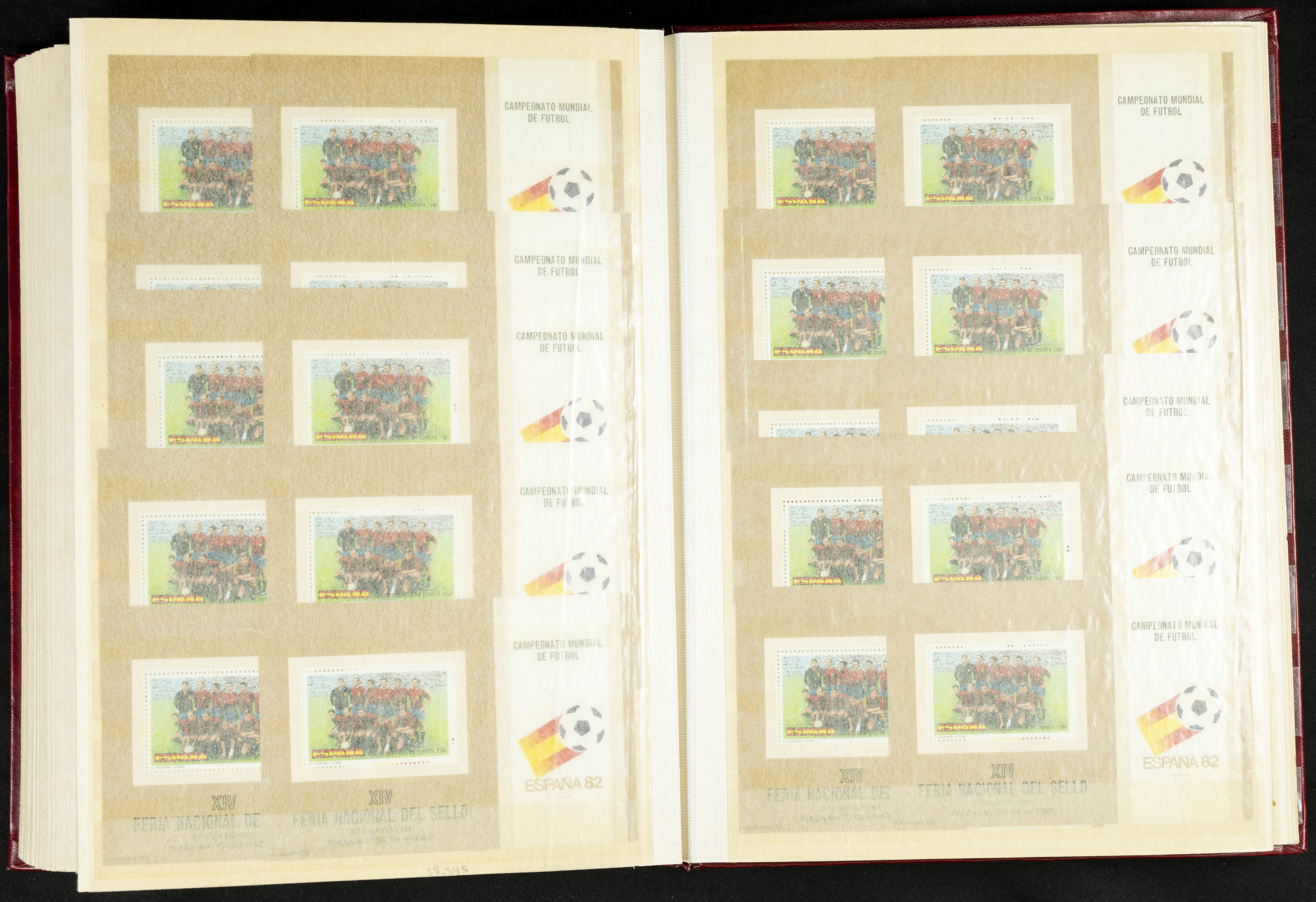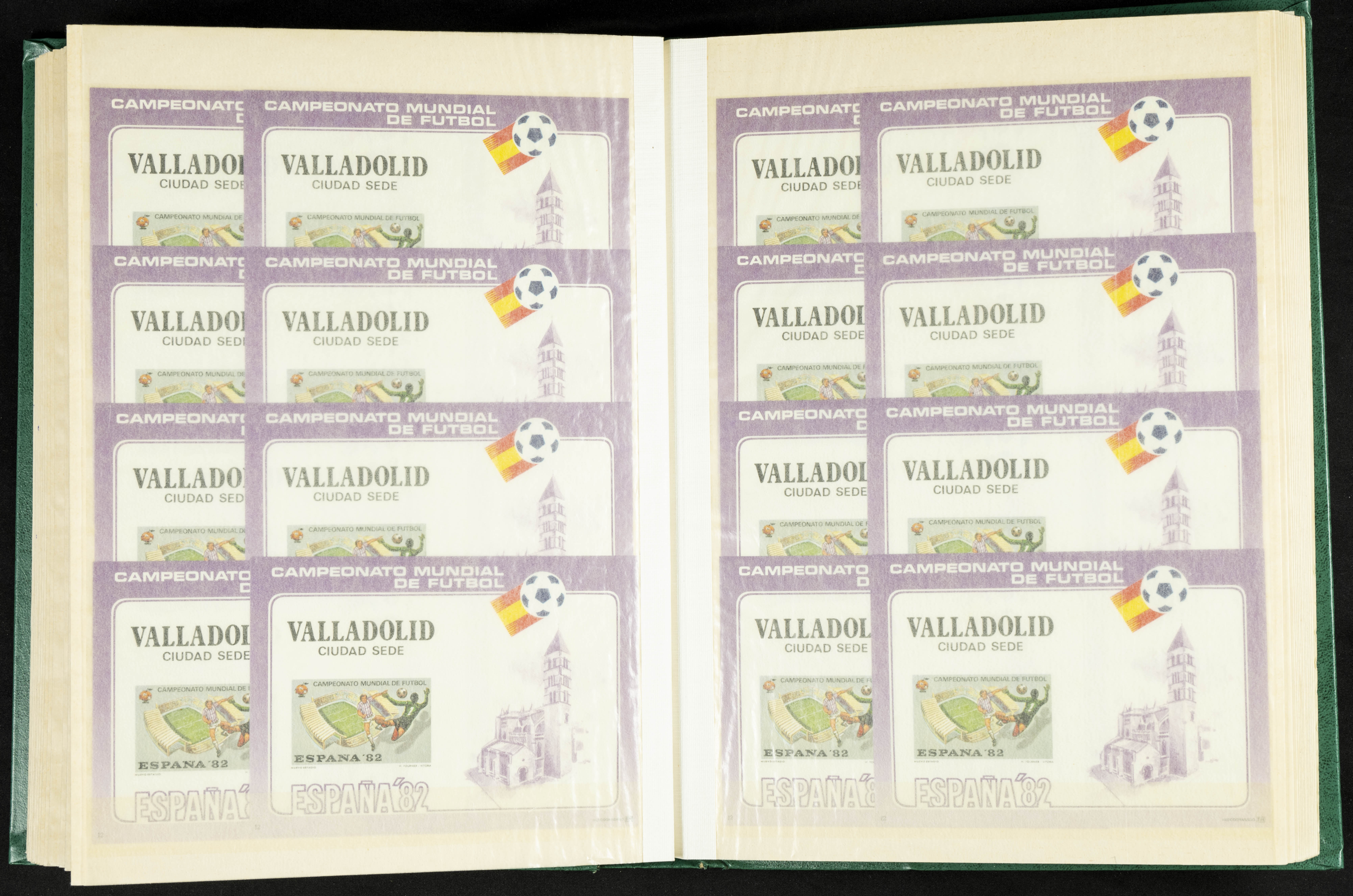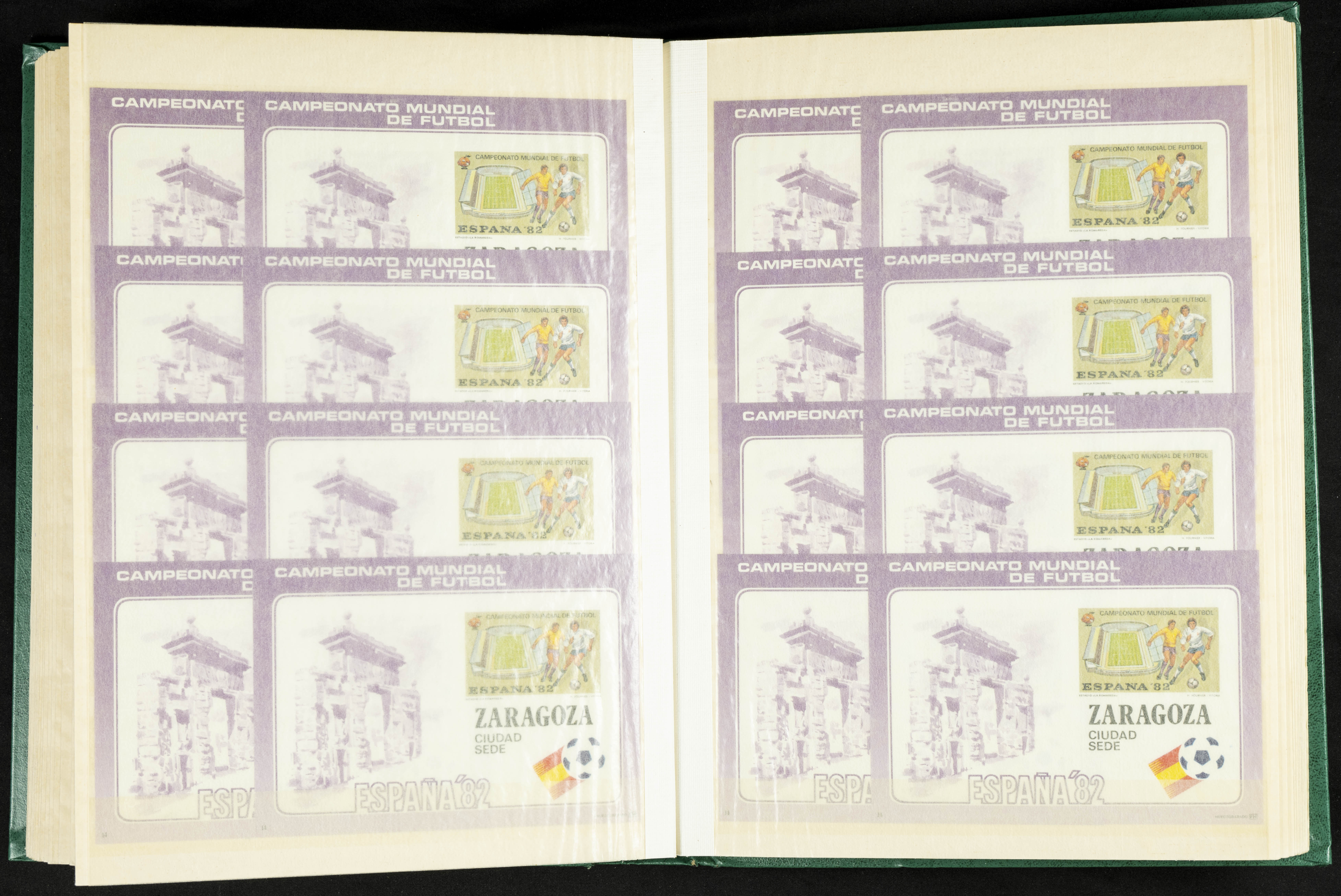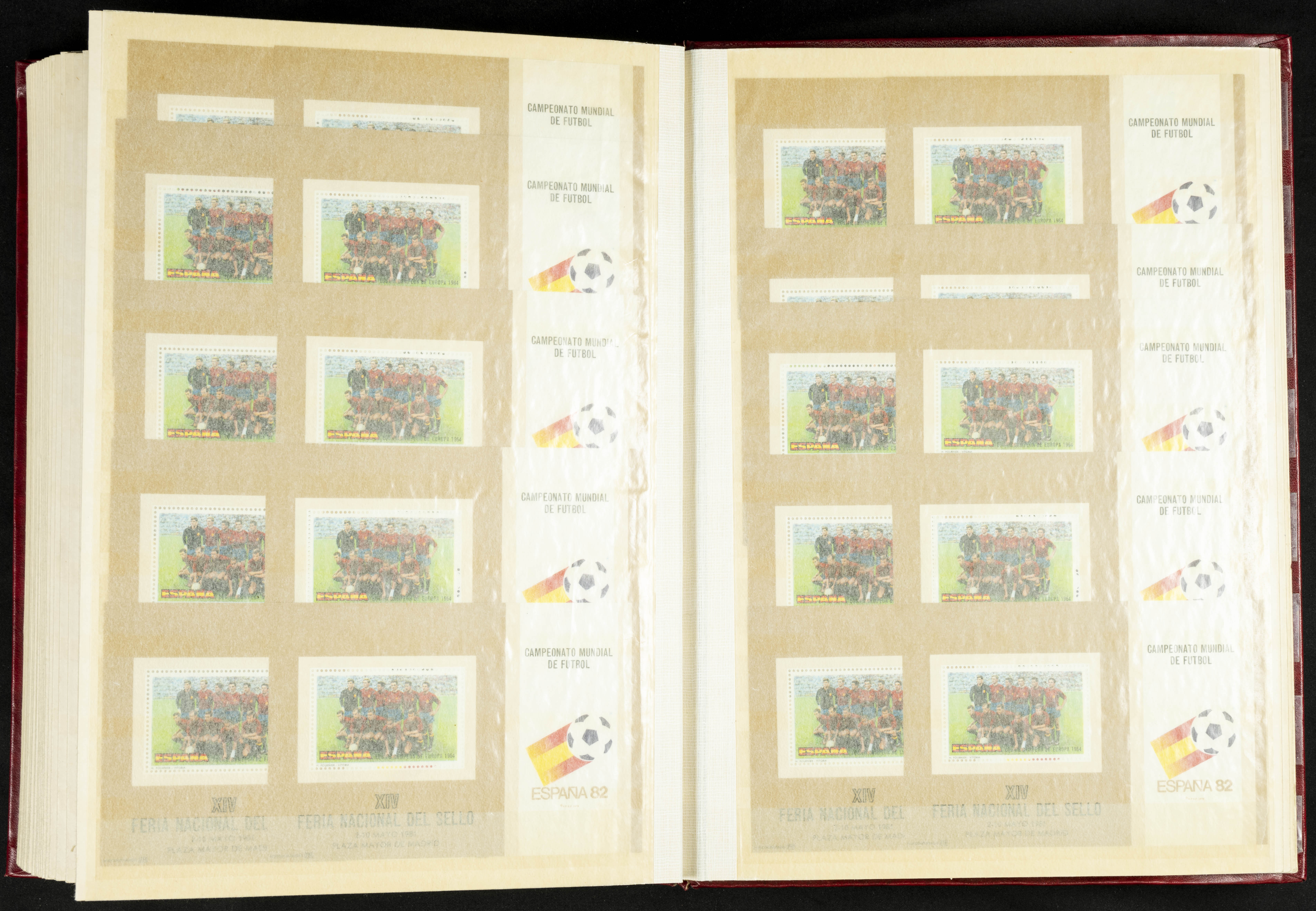 ★★/(1972ca). Conjunto de Hojas Recuerdo entre 1972 y 1982, nuevas (alguna usada) y con algunas repeticiones, incluye al menos cuarenta y cinco juegos de hojitas del Mundial 82 (Sedes) dentadas, veinticuatro juegos sin dentar, azules (dentadas), así como veinticuatro juegos sin dentar de las hojitas de las fases preliminares, entre otras. ALTISIMO VALOR DE CATALOGO. A EXAMINAR.