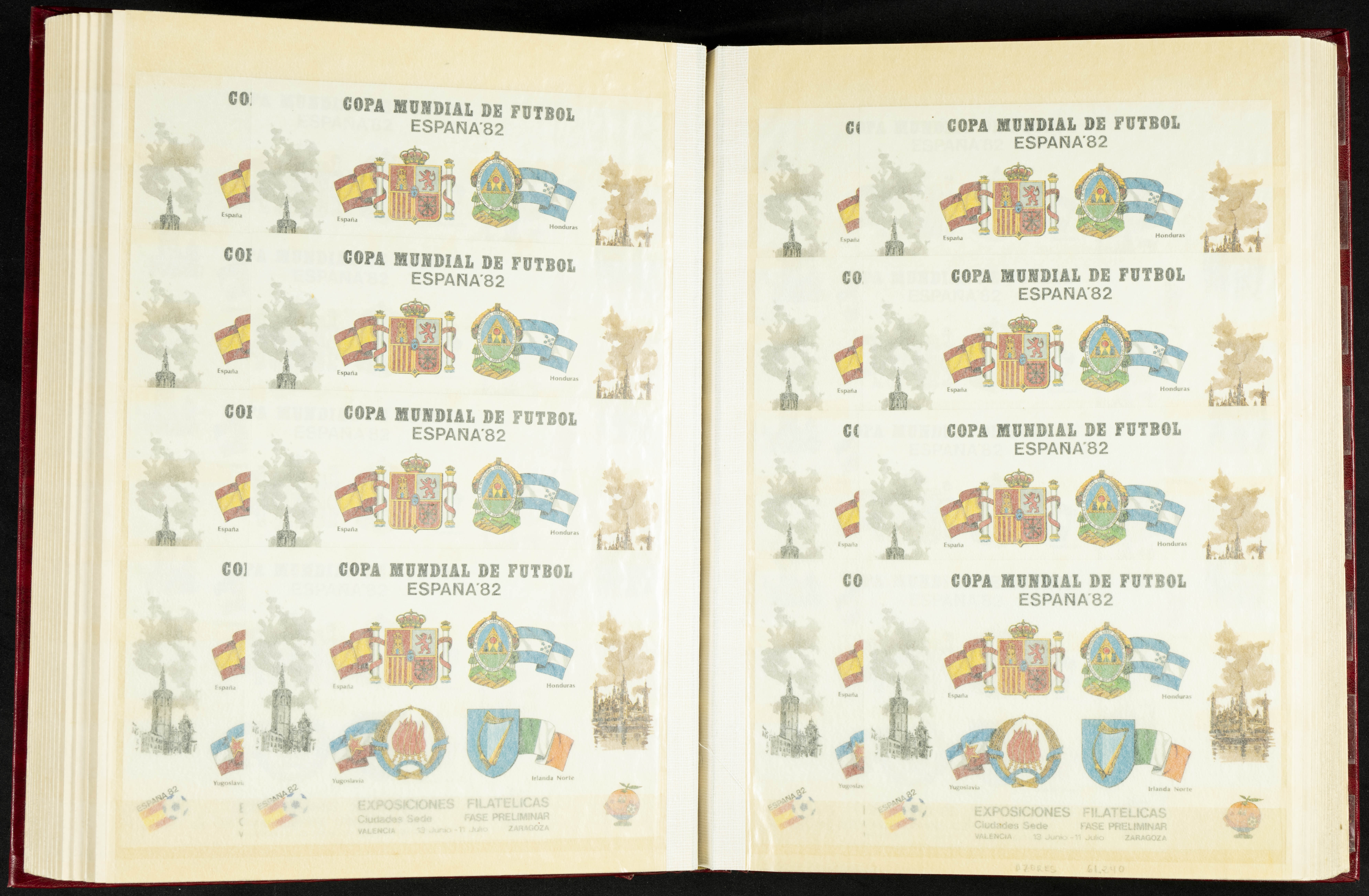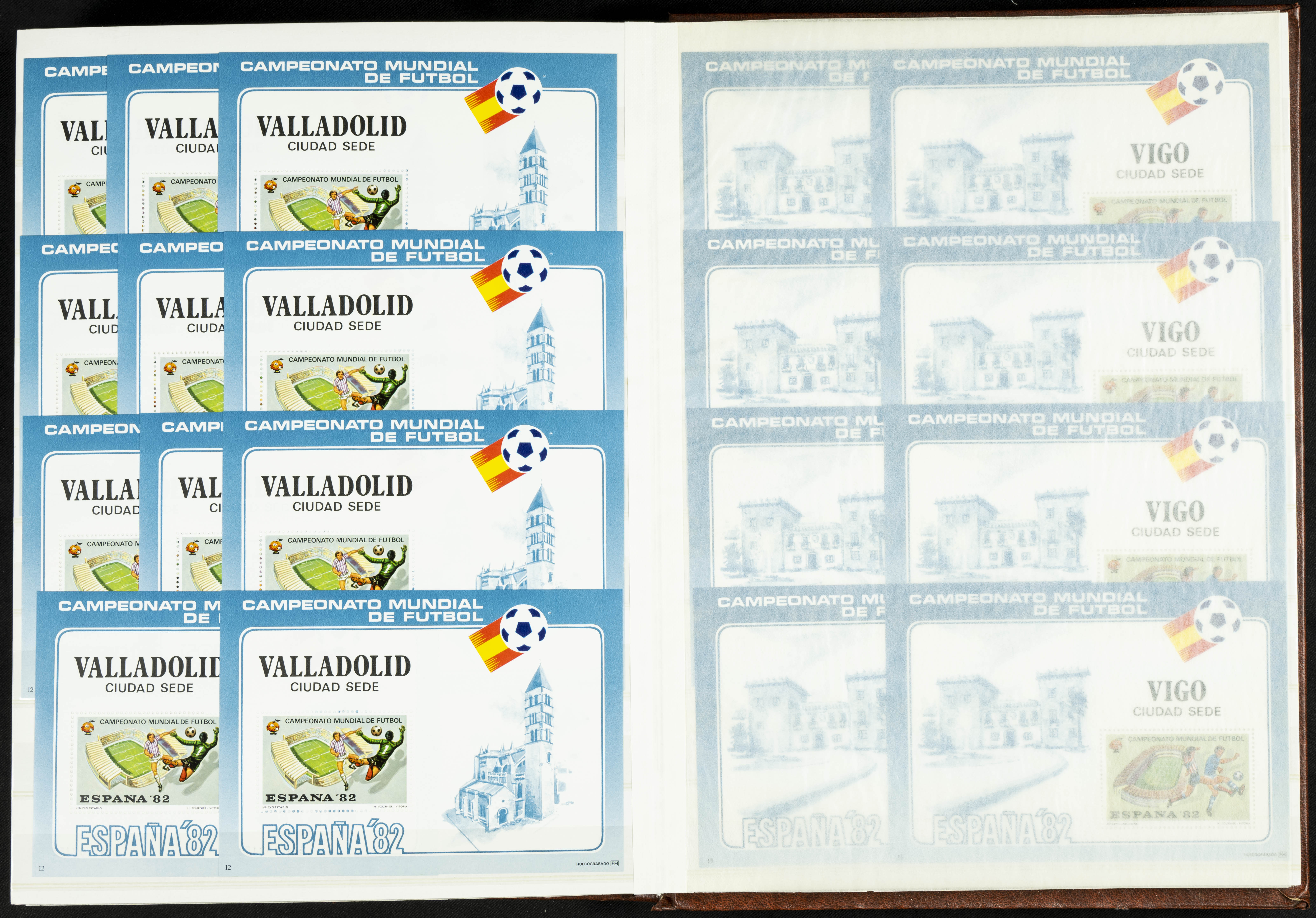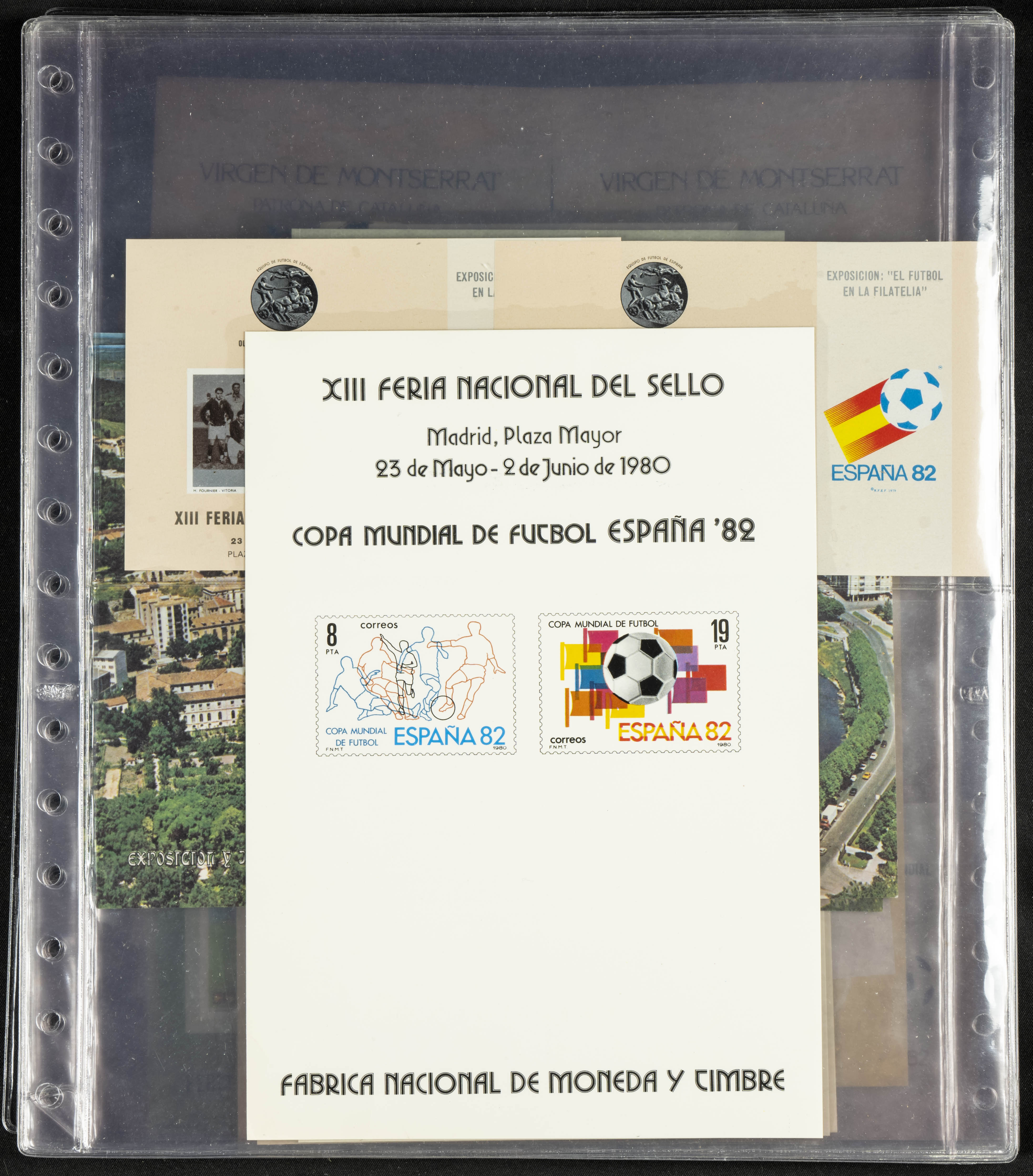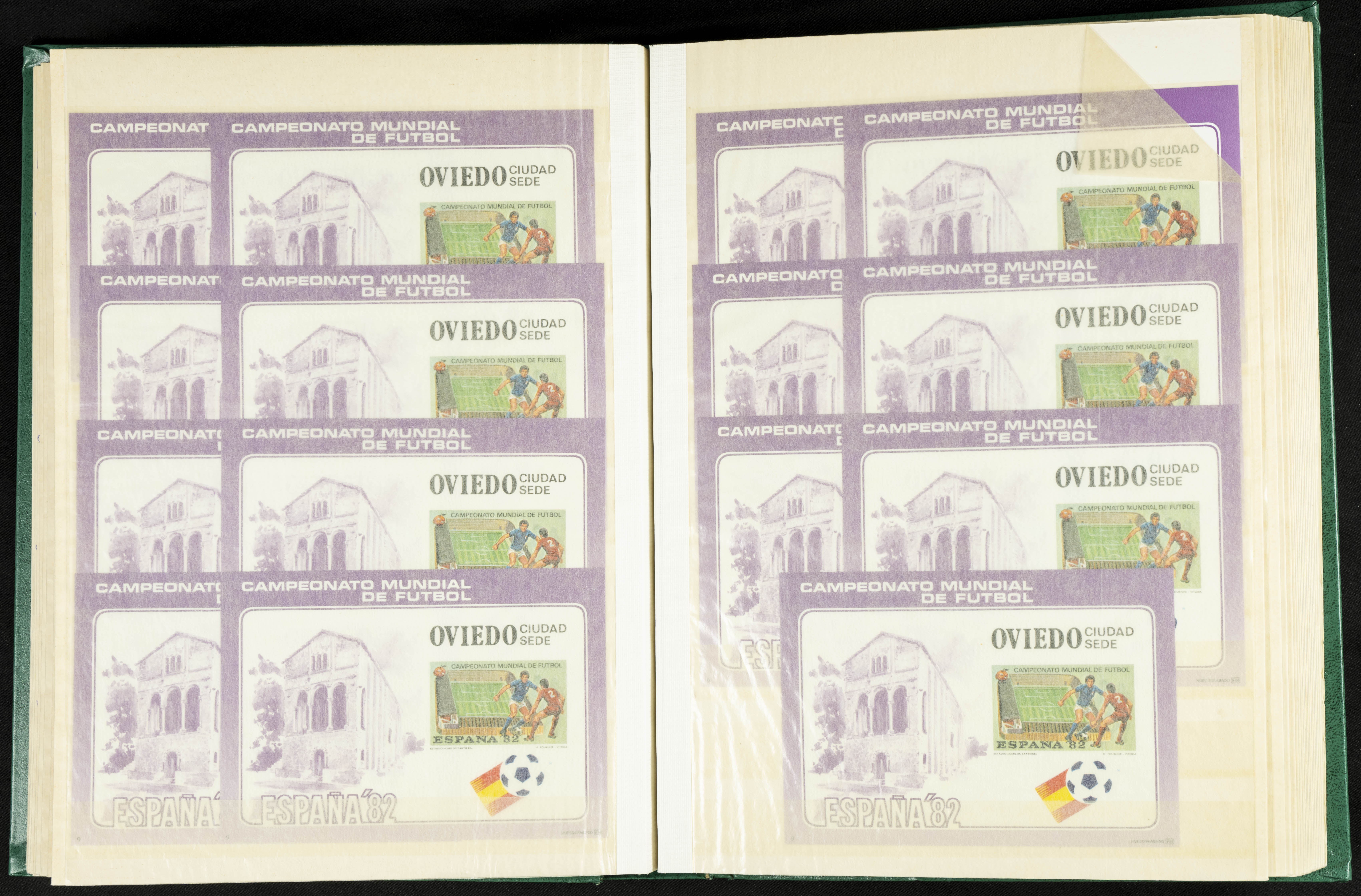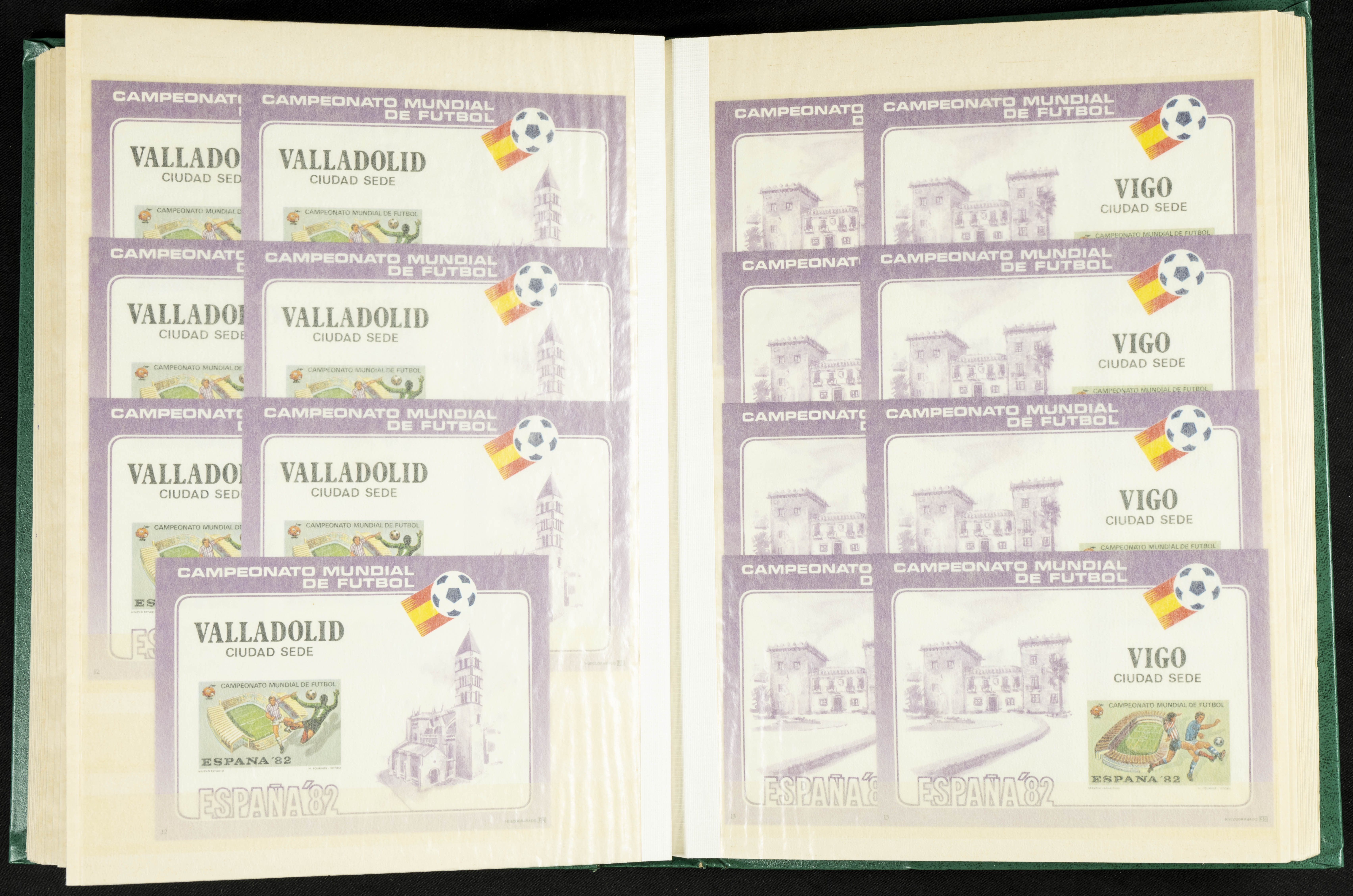 ★★/(1972ca). Conjunto de Hojas Recuerdo entre 1972 y 1982, nuevas (alguna usada) y con algunas repeticiones, incluye al menos cuarenta y cinco juegos de hojitas del Mundial 82 (Sedes) dentadas, veinticuatro juegos sin dentar, azules (dentadas), así como veinticuatro juegos sin dentar de las hojitas de las fases preliminares, entre otras. ALTISIMO VALOR DE CATALOGO. A EXAMINAR.