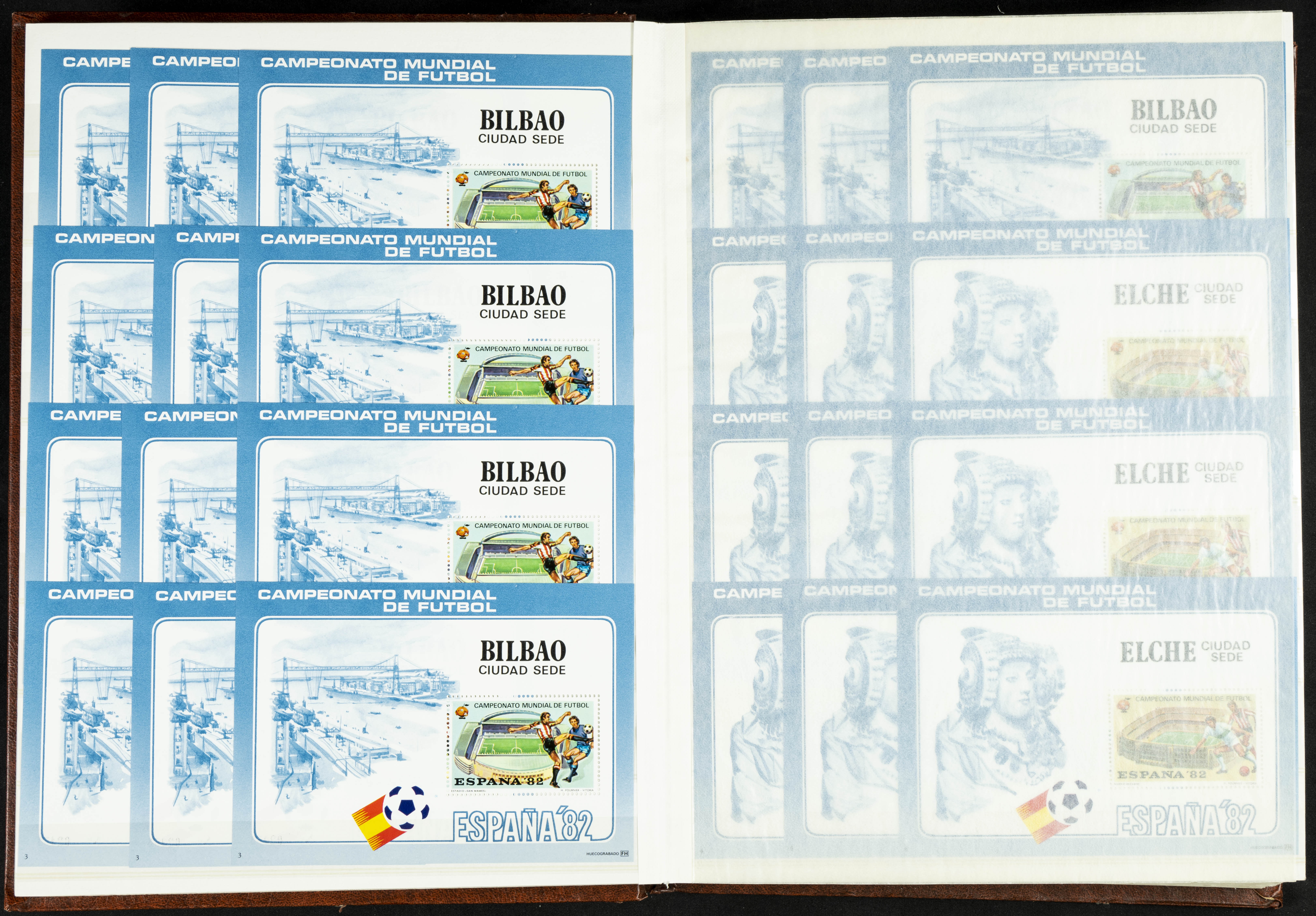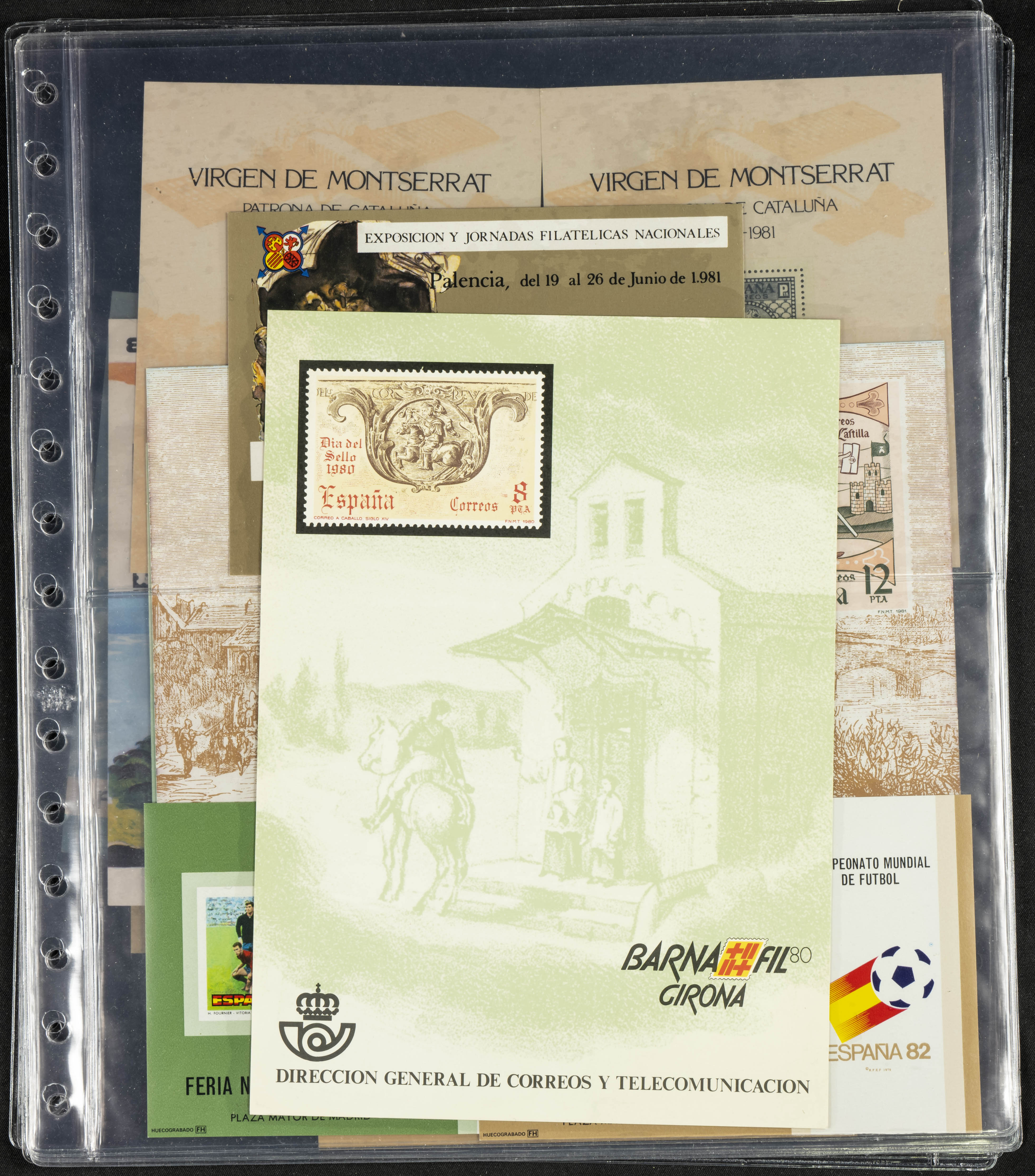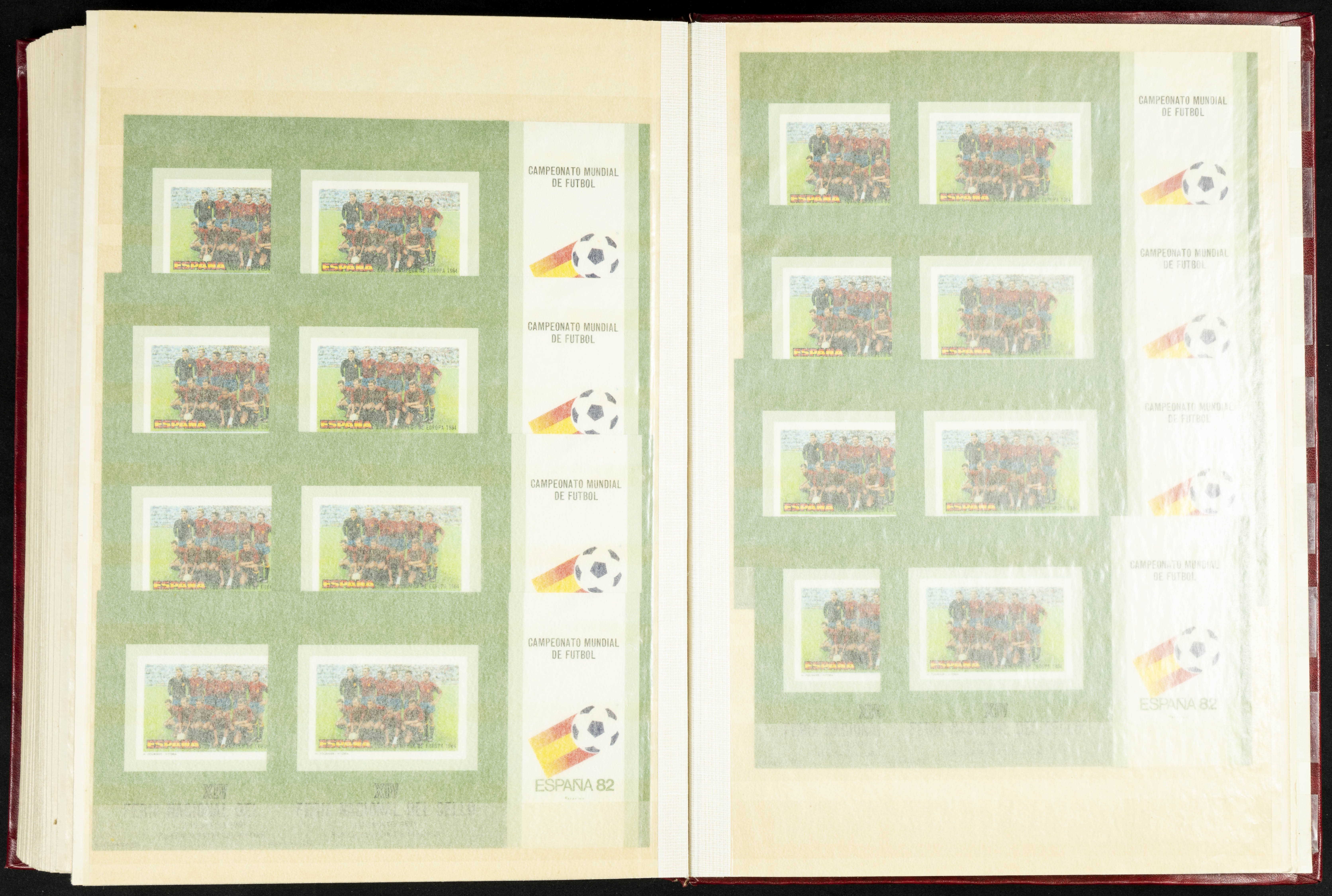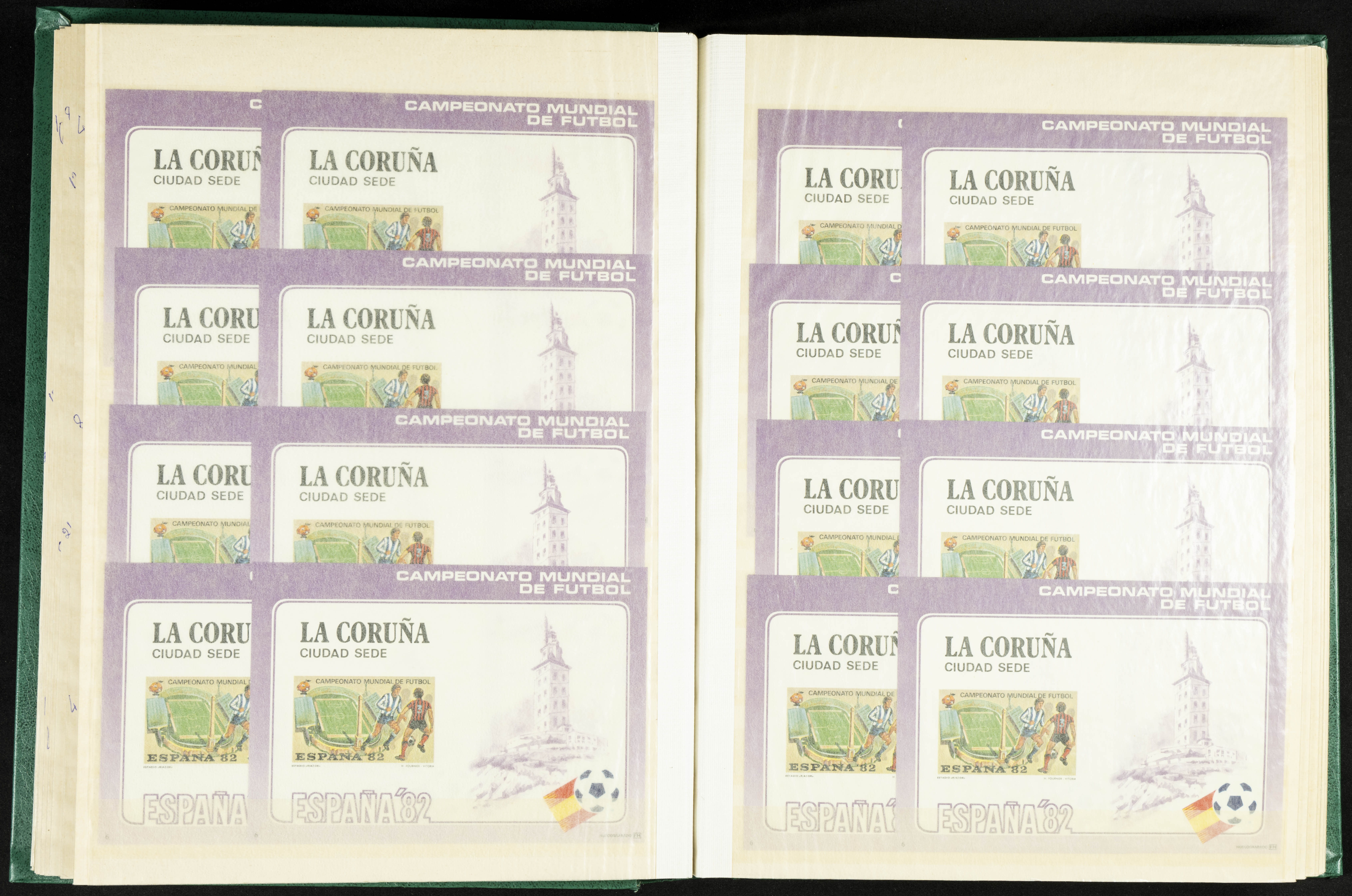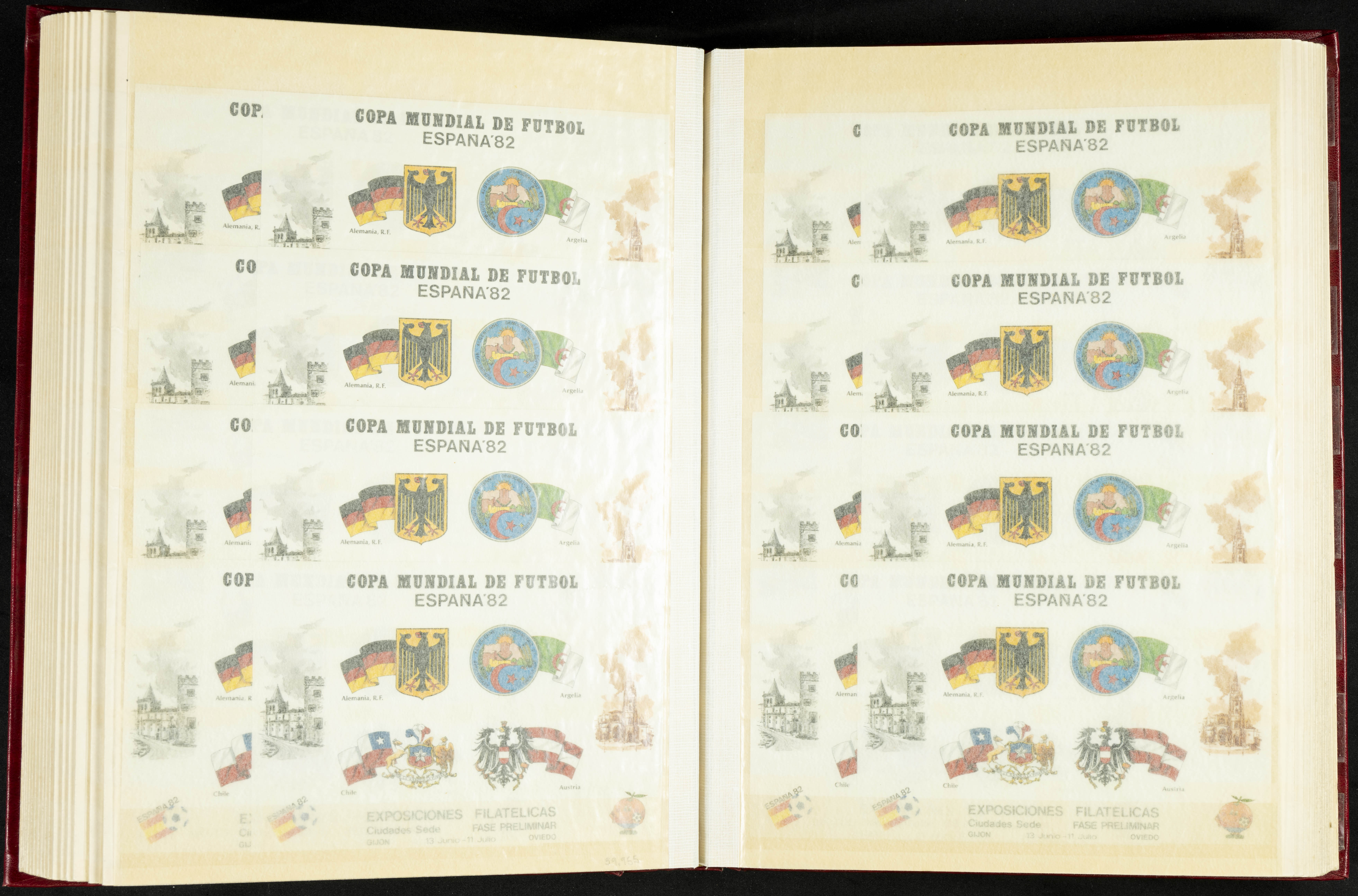 ★★/(1972ca). Conjunto de Hojas Recuerdo entre 1972 y 1982, nuevas (alguna usada) y con algunas repeticiones, incluye al menos cuarenta y cinco juegos de hojitas del Mundial 82 (Sedes) dentadas, veinticuatro juegos sin dentar, azules (dentadas), así como veinticuatro juegos sin dentar de las hojitas de las fases preliminares, entre otras. ALTISIMO VALOR DE CATALOGO. A EXAMINAR.